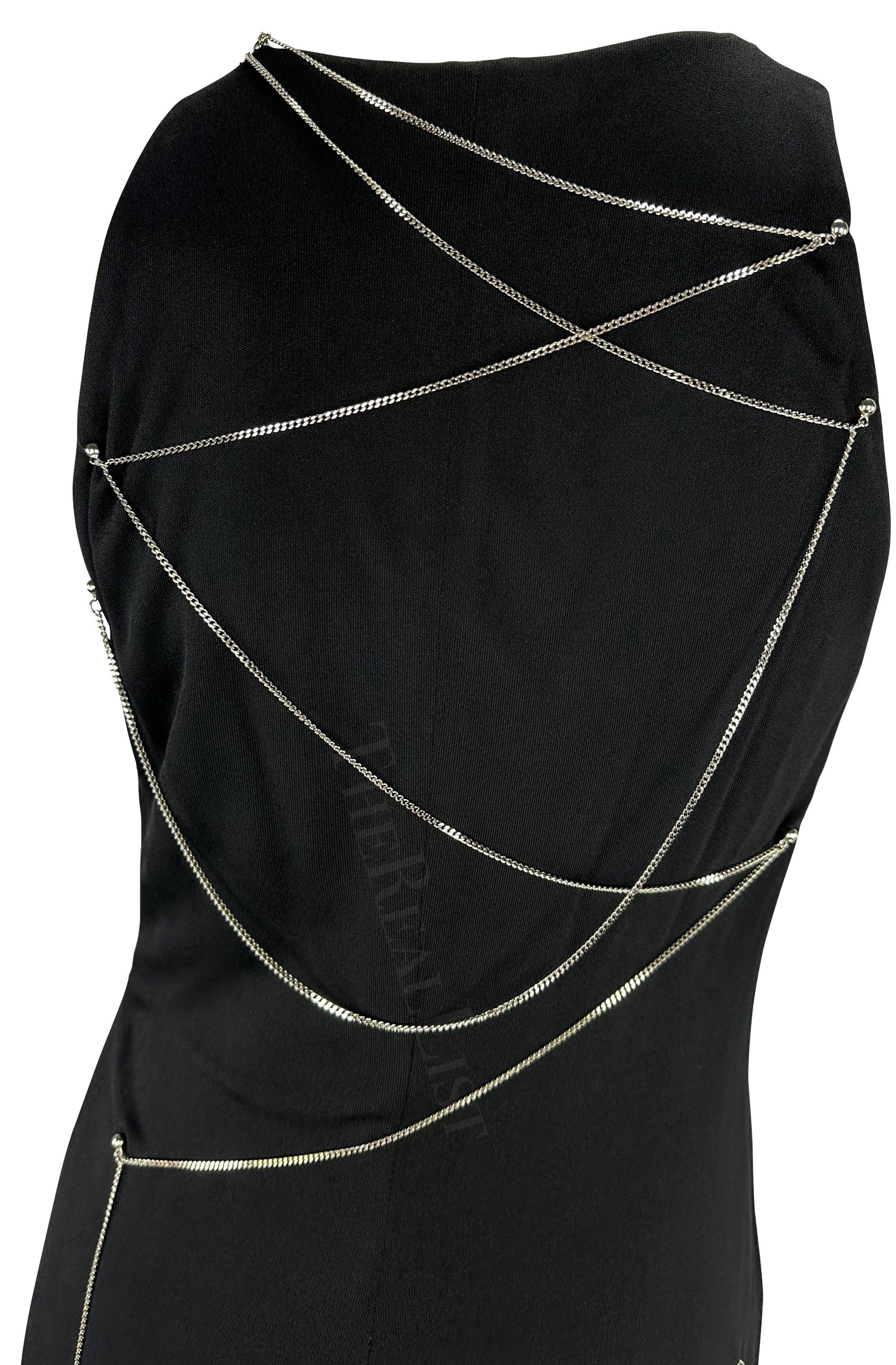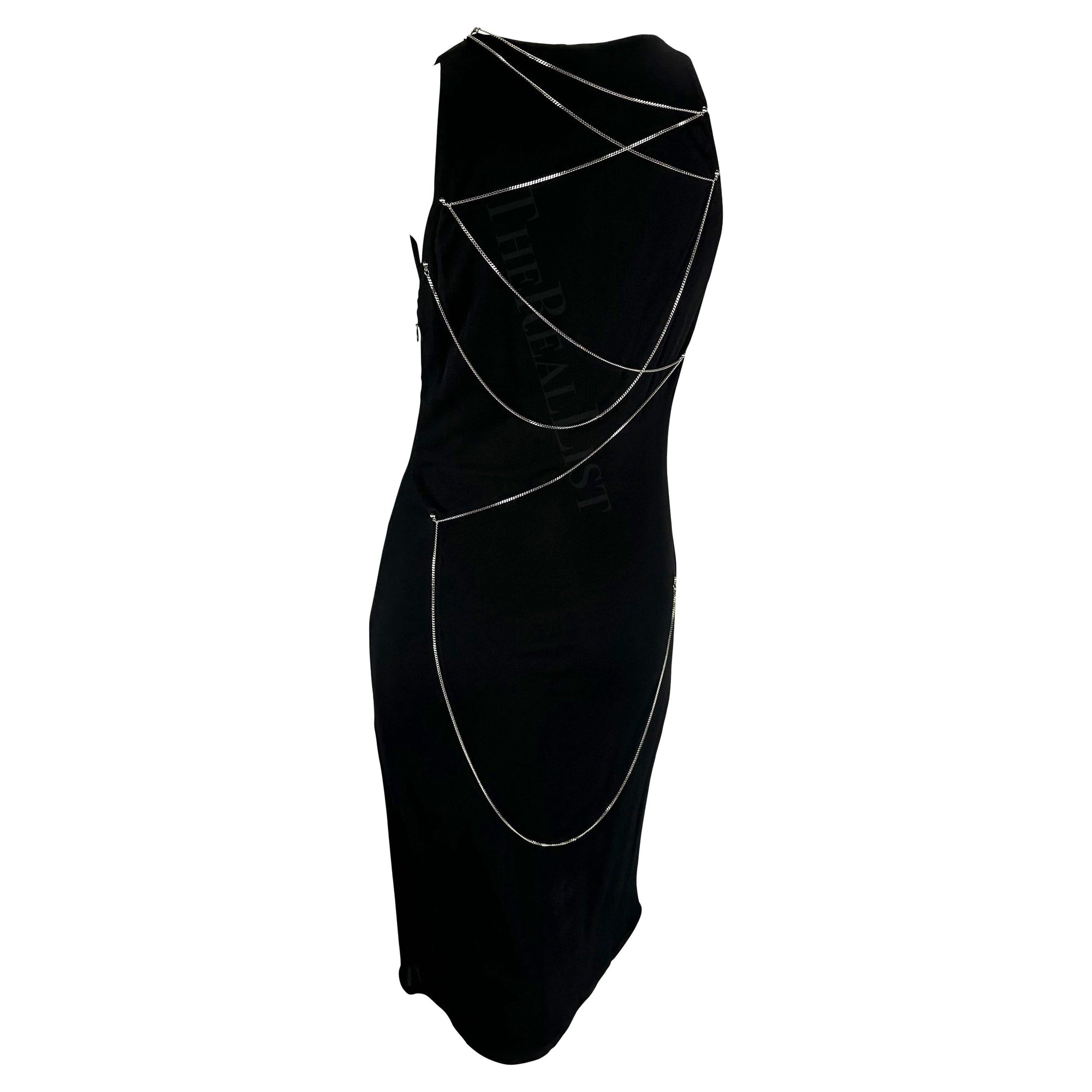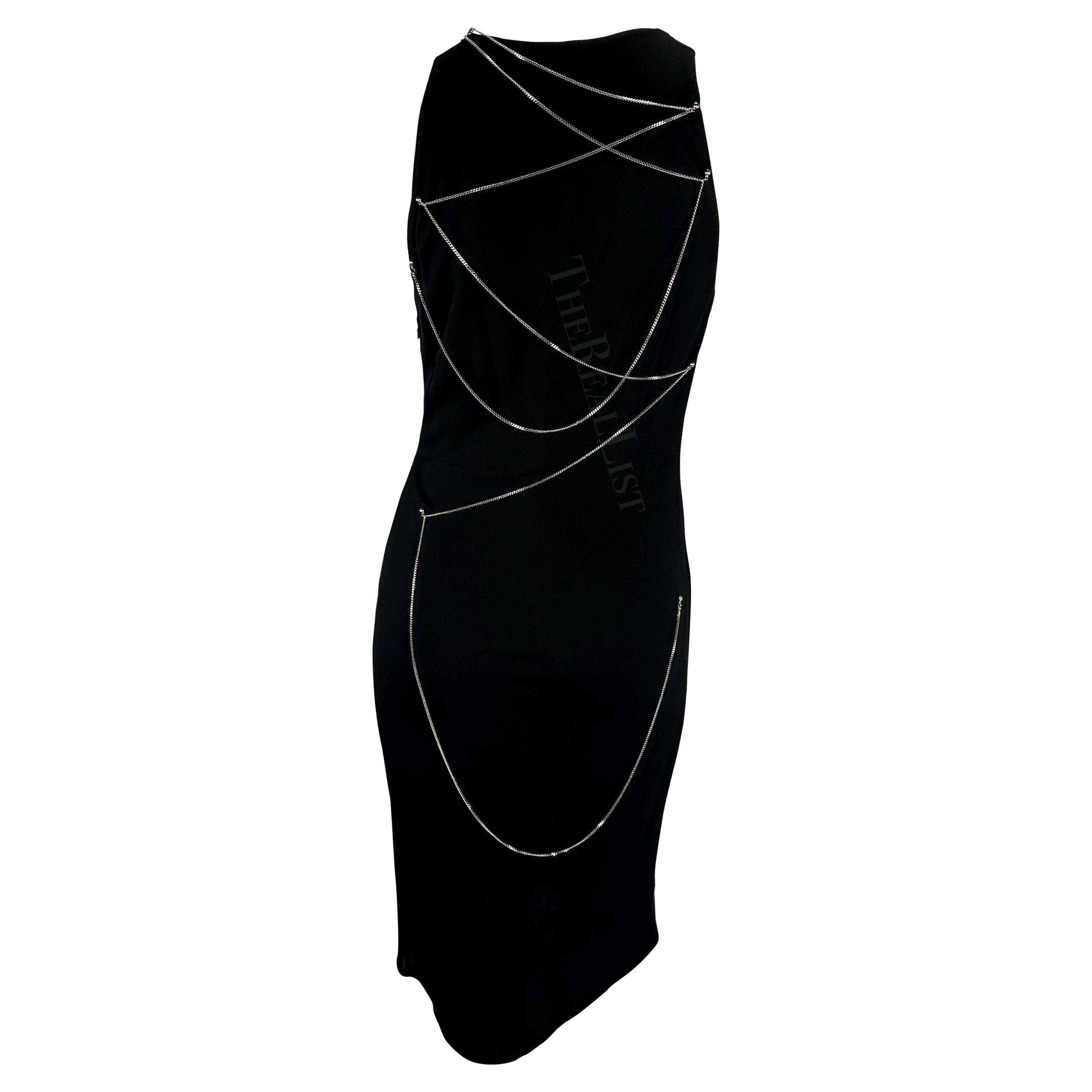 1999 Gianni Versace by Donatella Black Chain Bodycon Stretch Knit Dress