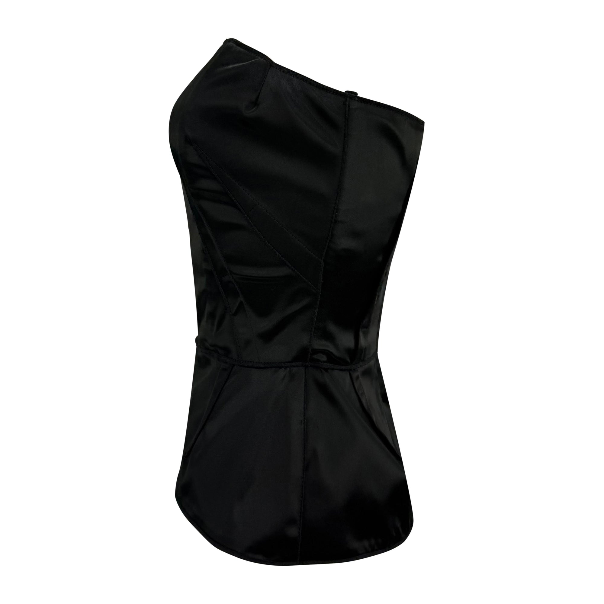 2000s Dolce & Gabbana Black Satin Strapless Corset Boned Bustier Top