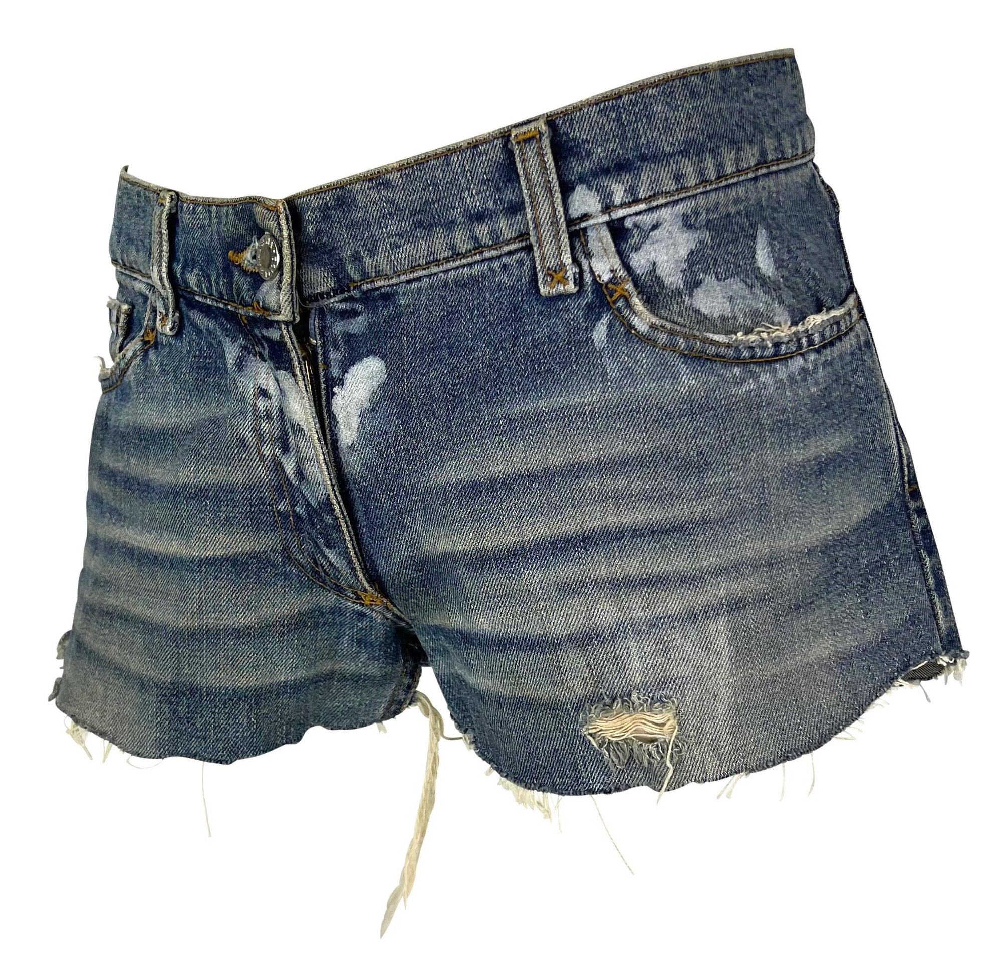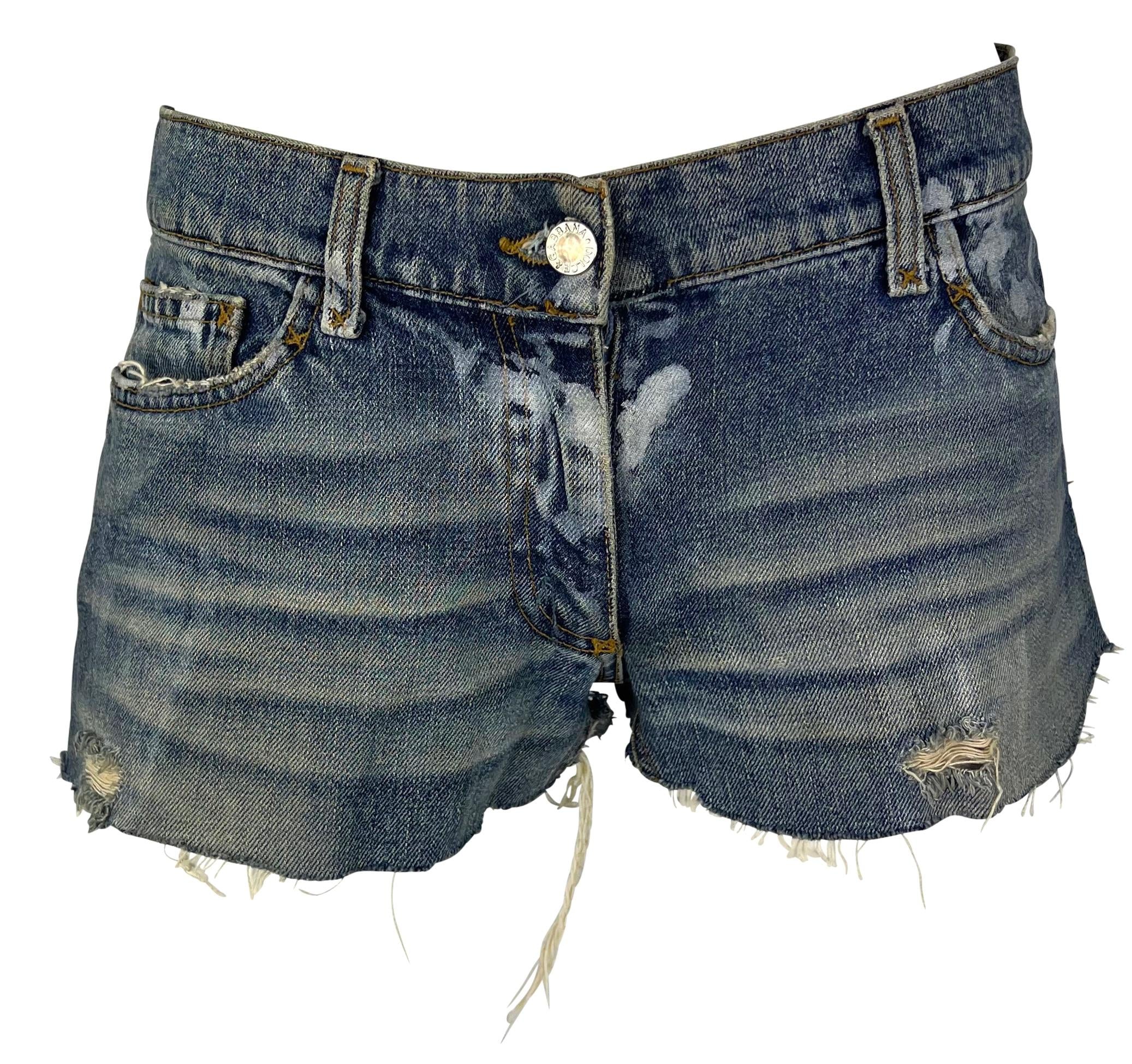 2000s Dolce & Gabbana Distressed Painted Denim Horseshoe Cutoff Short Shorts
