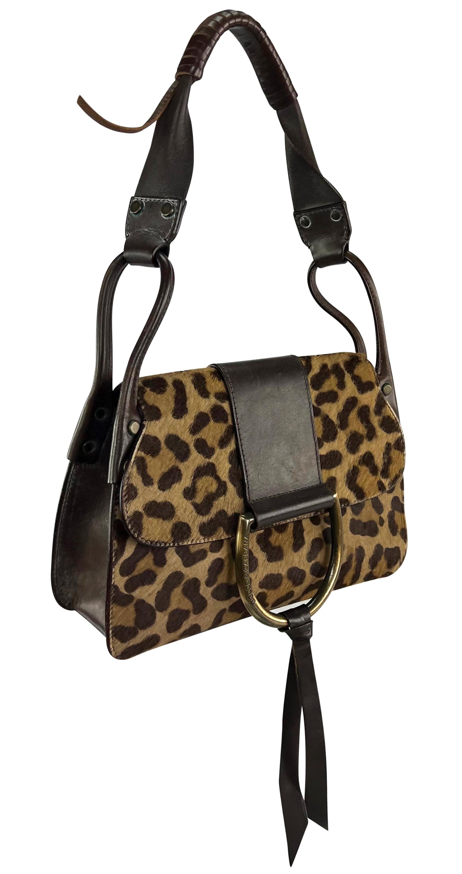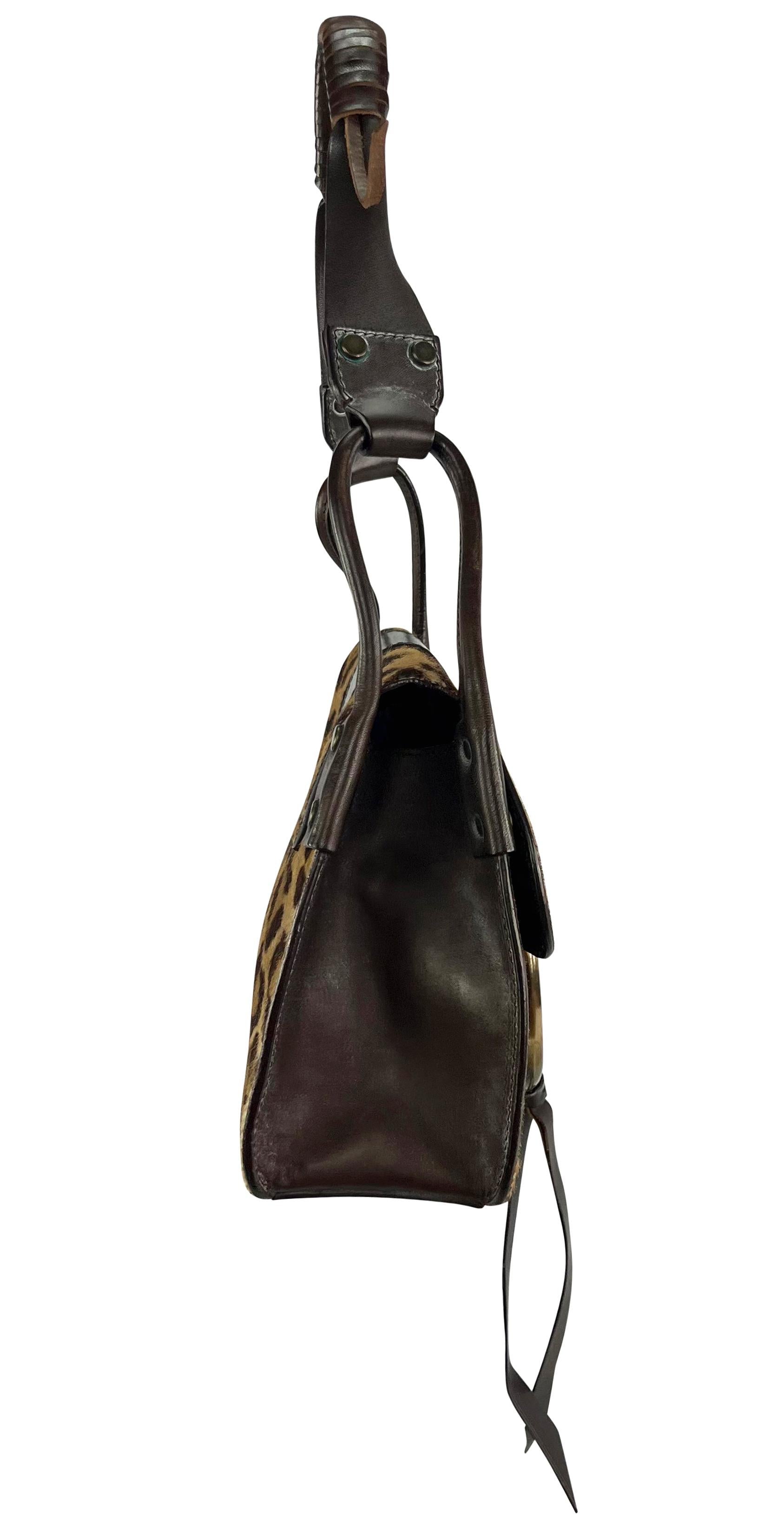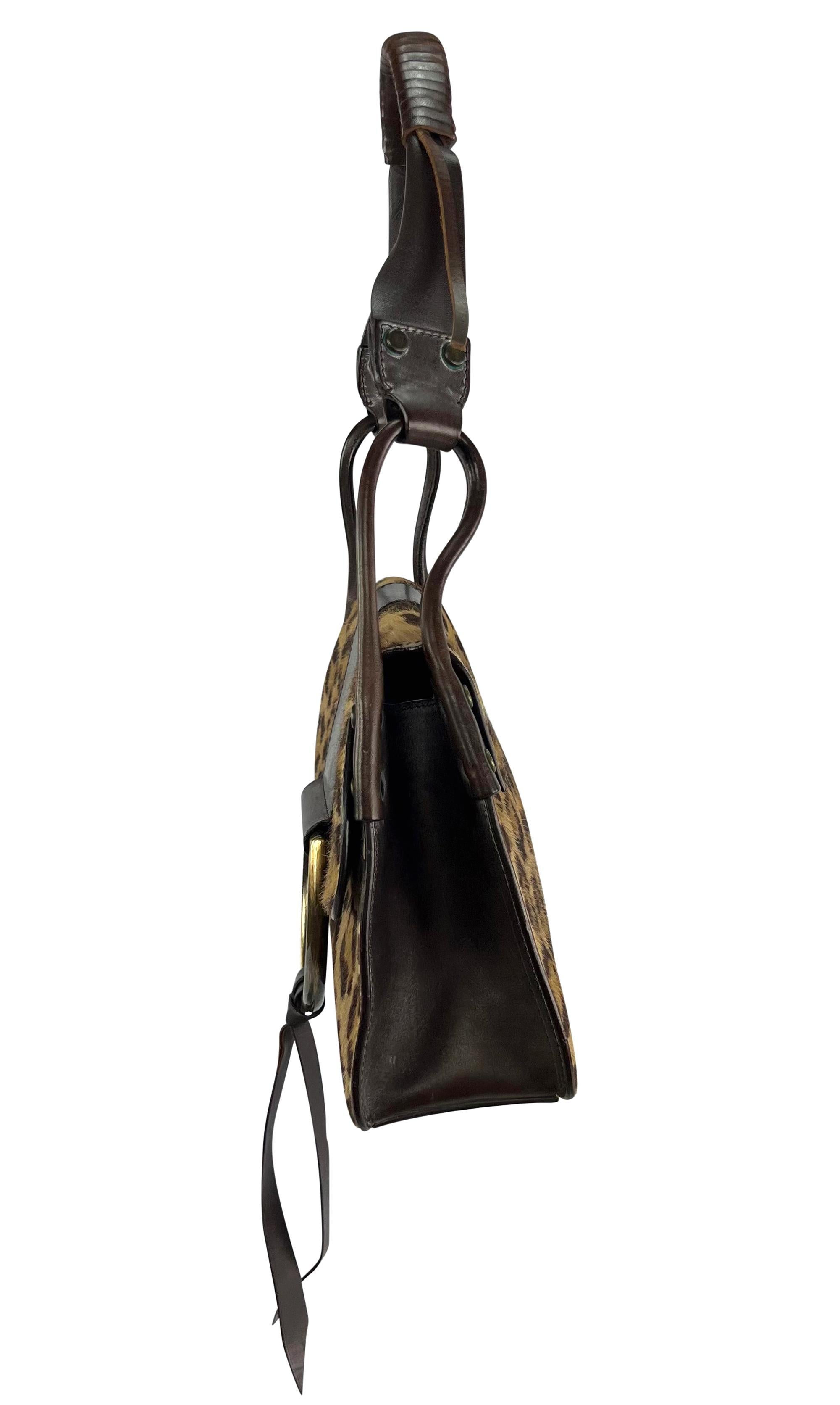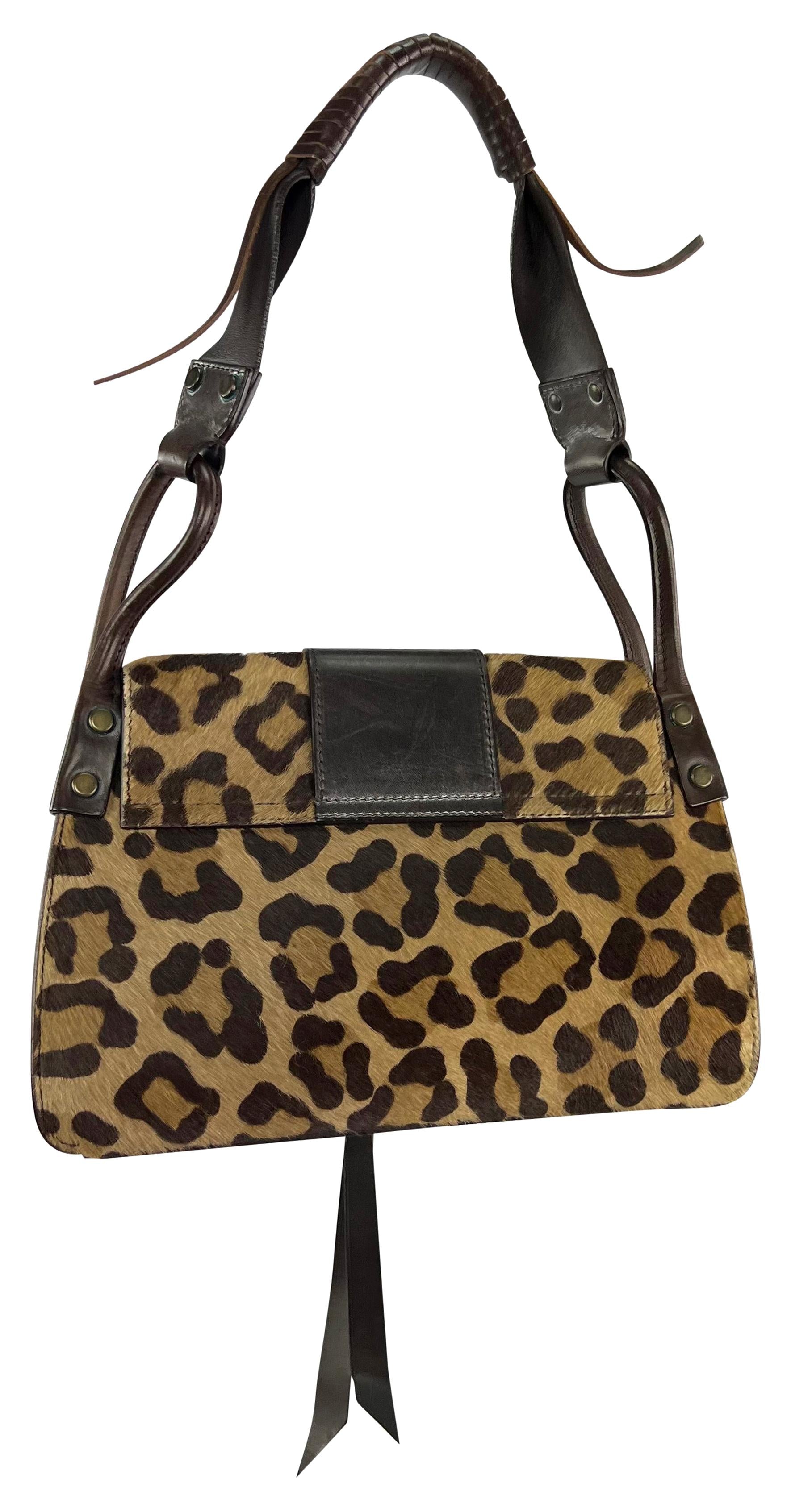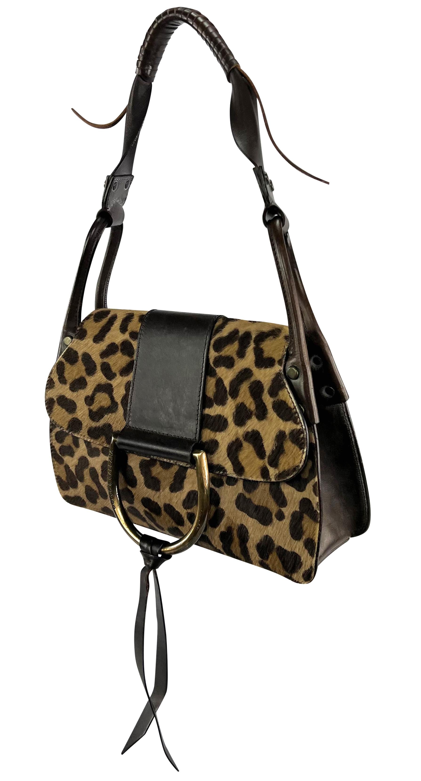 2000s Dolce & Gabbana Leopard Print Ponyhair Distressed Brown Ring Shoulder Bag