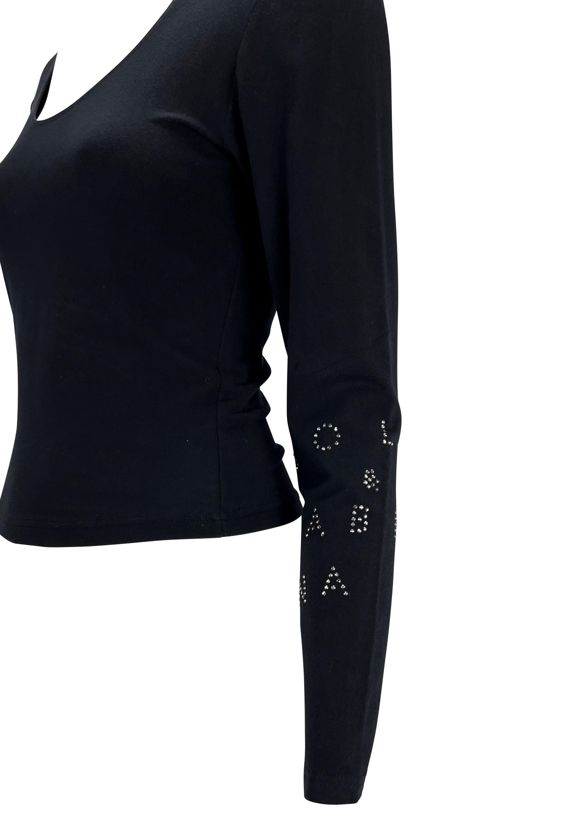 2000s Dolce & Gabbana Rhinestone Logo Black Long Sleeve Shirt Y2K