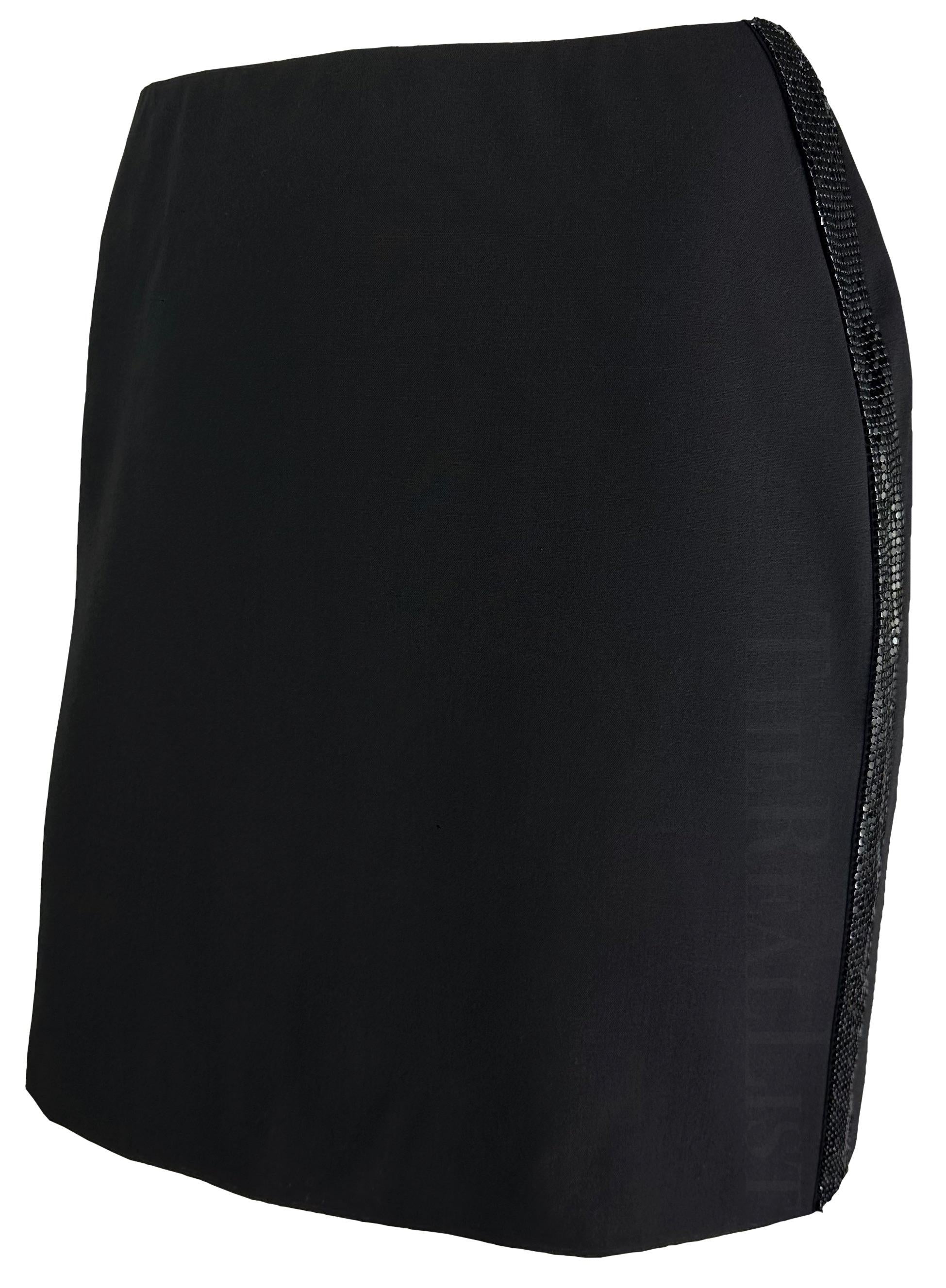 2000s Gianni Versace by Donatella Black Oroton Metal Trim Y2K Mini Skirt