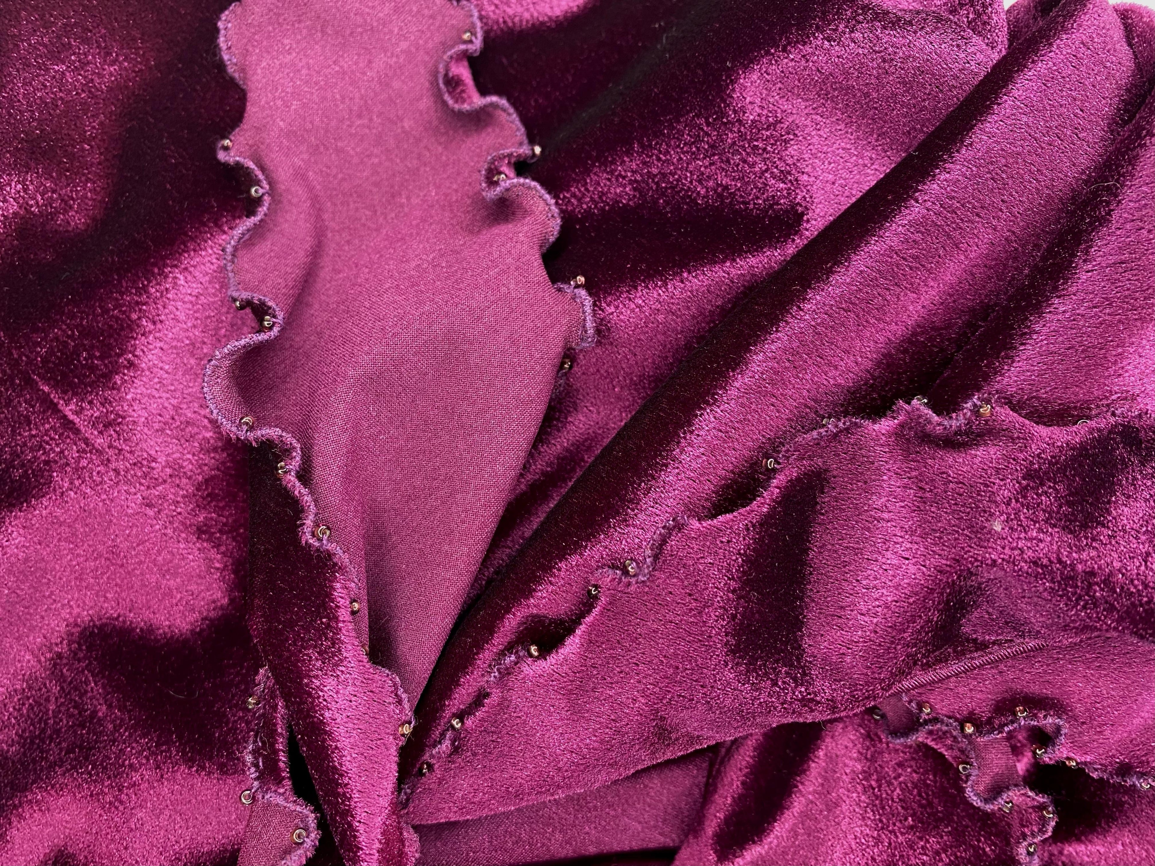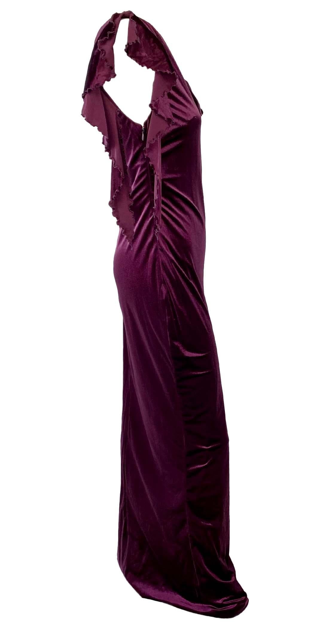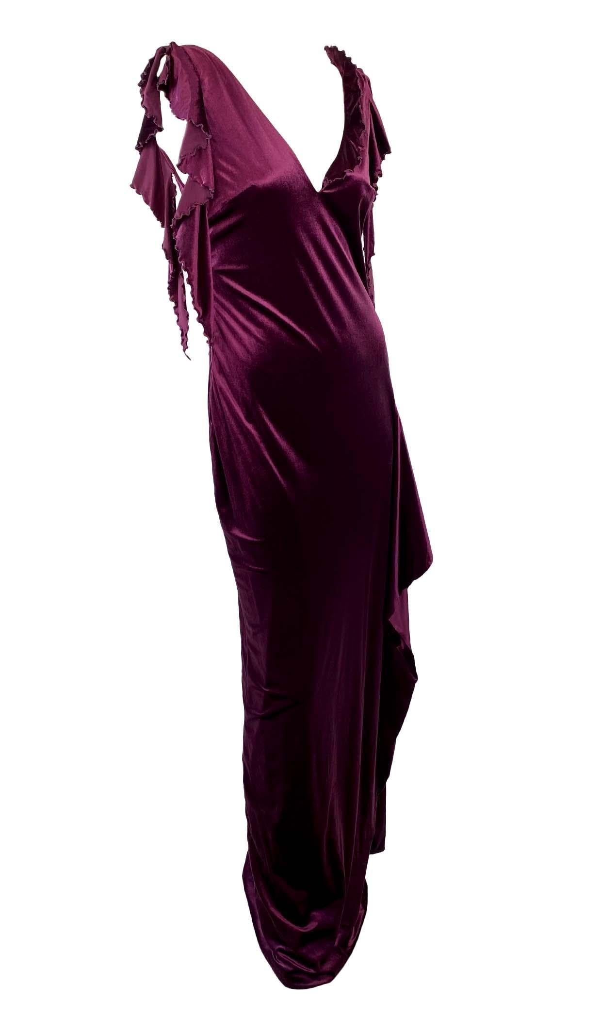 2000s Gianni Versace by Donatella Purple Velvet Beaded Ruffle Gown with Tags