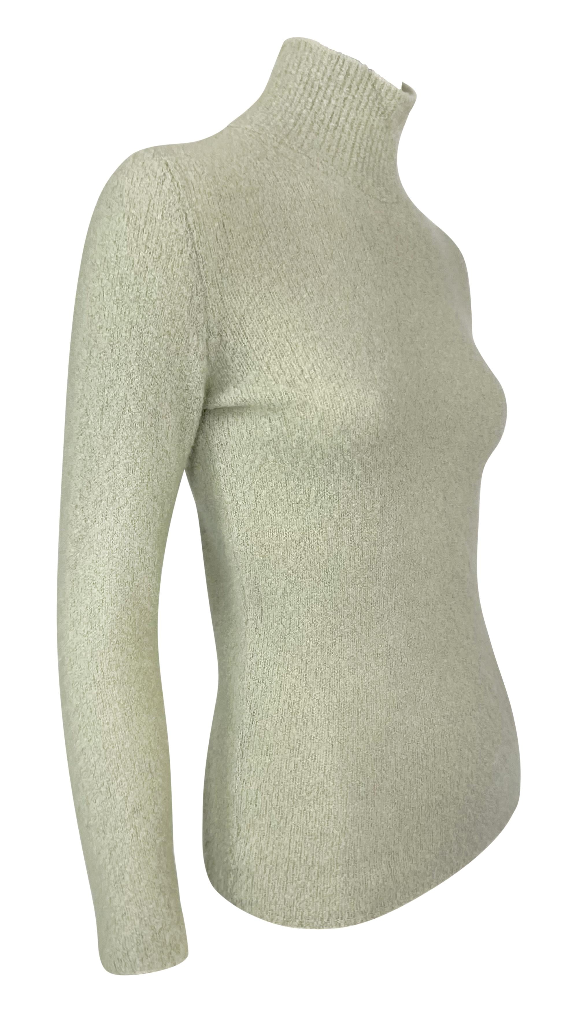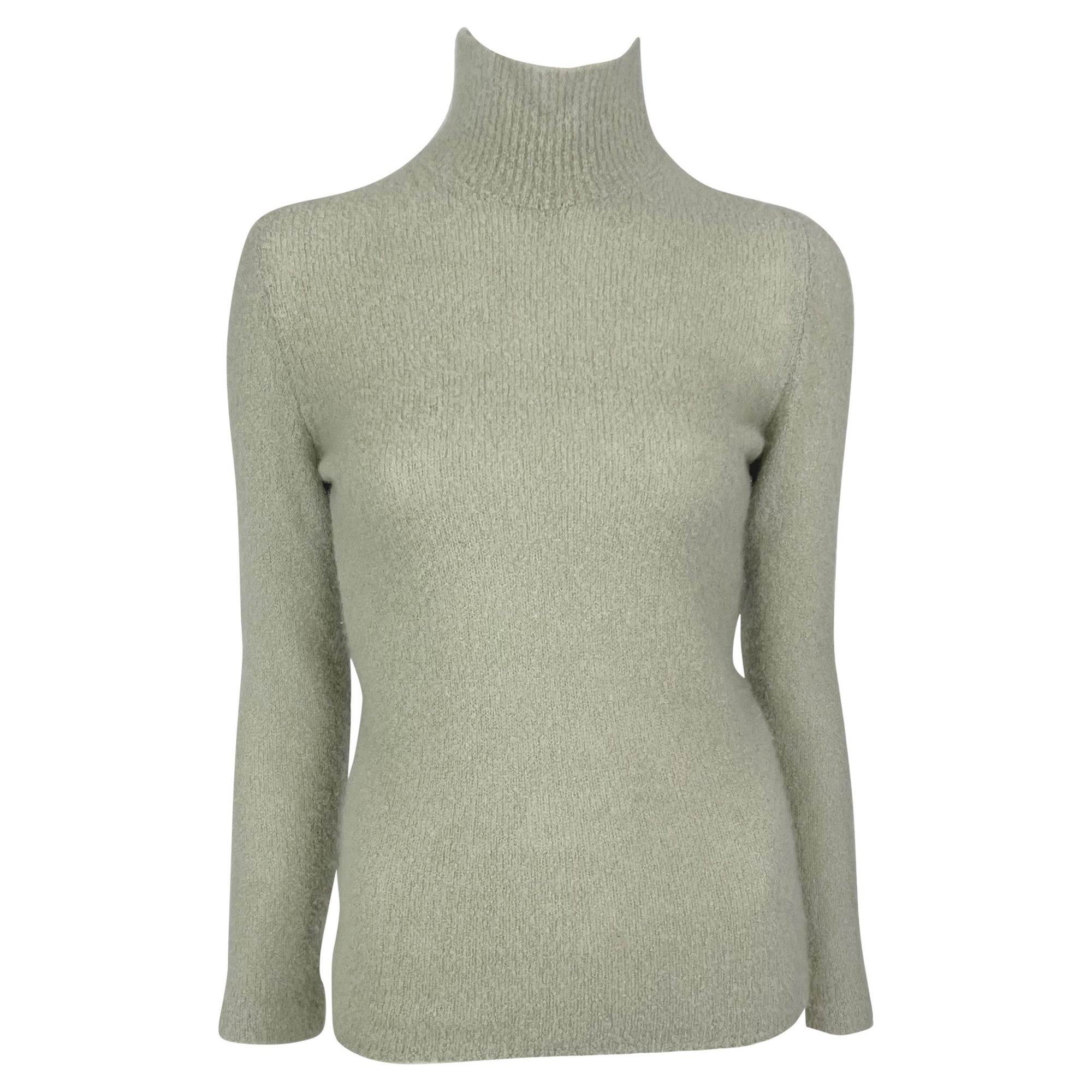 This late 1990s Tom Ford for Gucci turtleneck sweater in soft blue features a slim fit, cozy textured knit, and a mock neck.