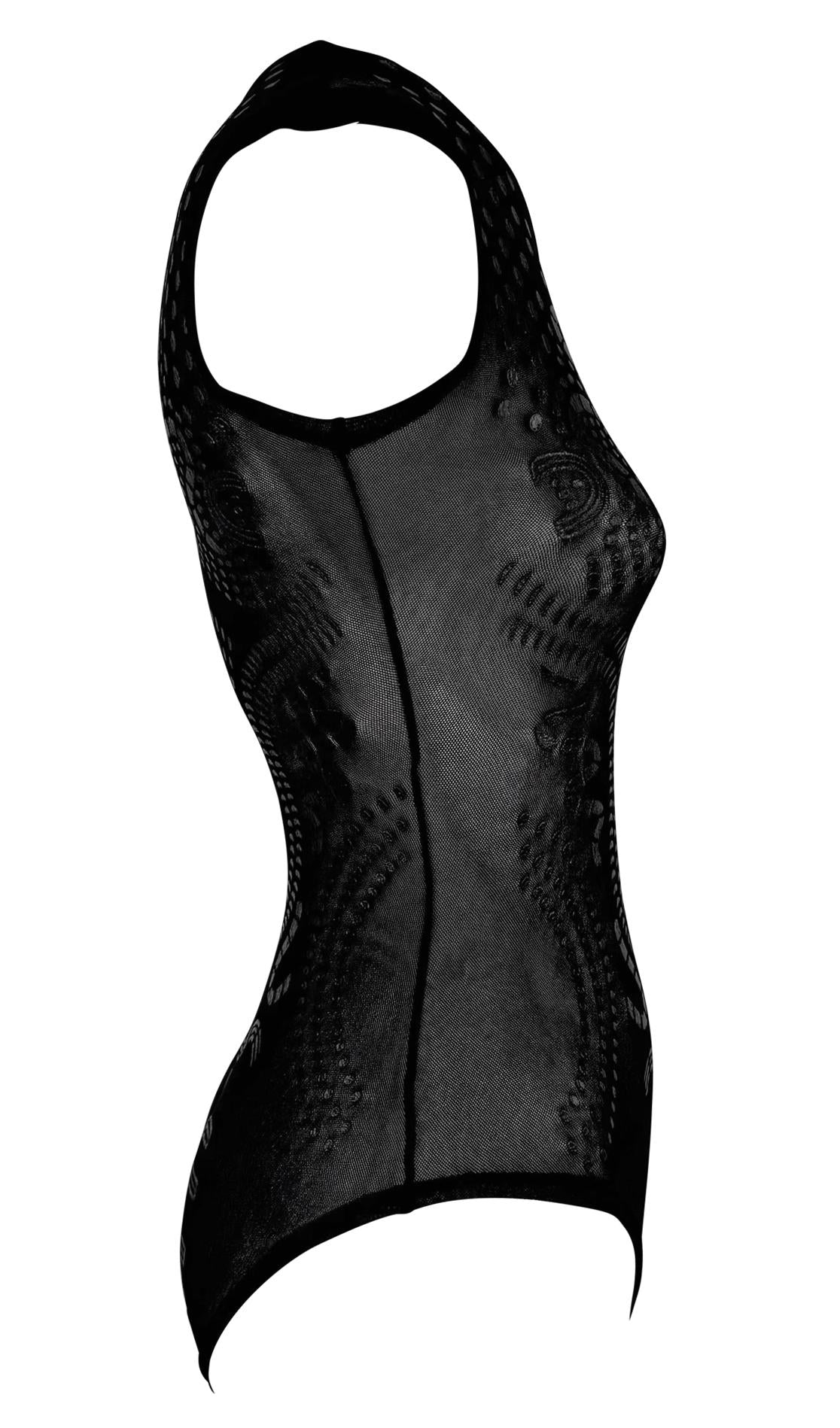 2000s Krizia Sheer Black Mesh Abstract Anatomic Sleeveless Bodysuit Top