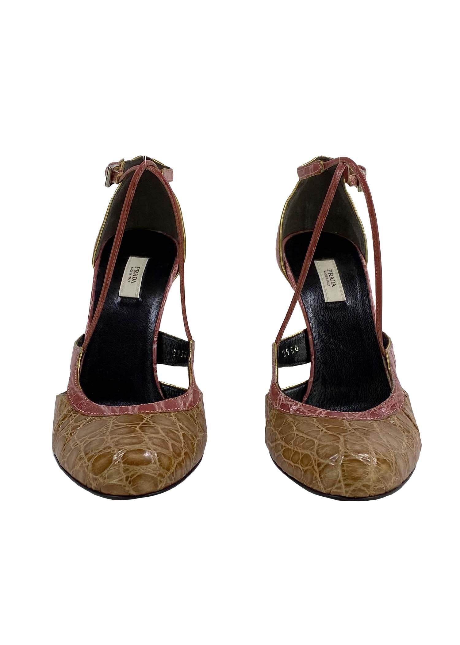 2000s Prada Pink Beige Alligator Pumps 3.5" Heel