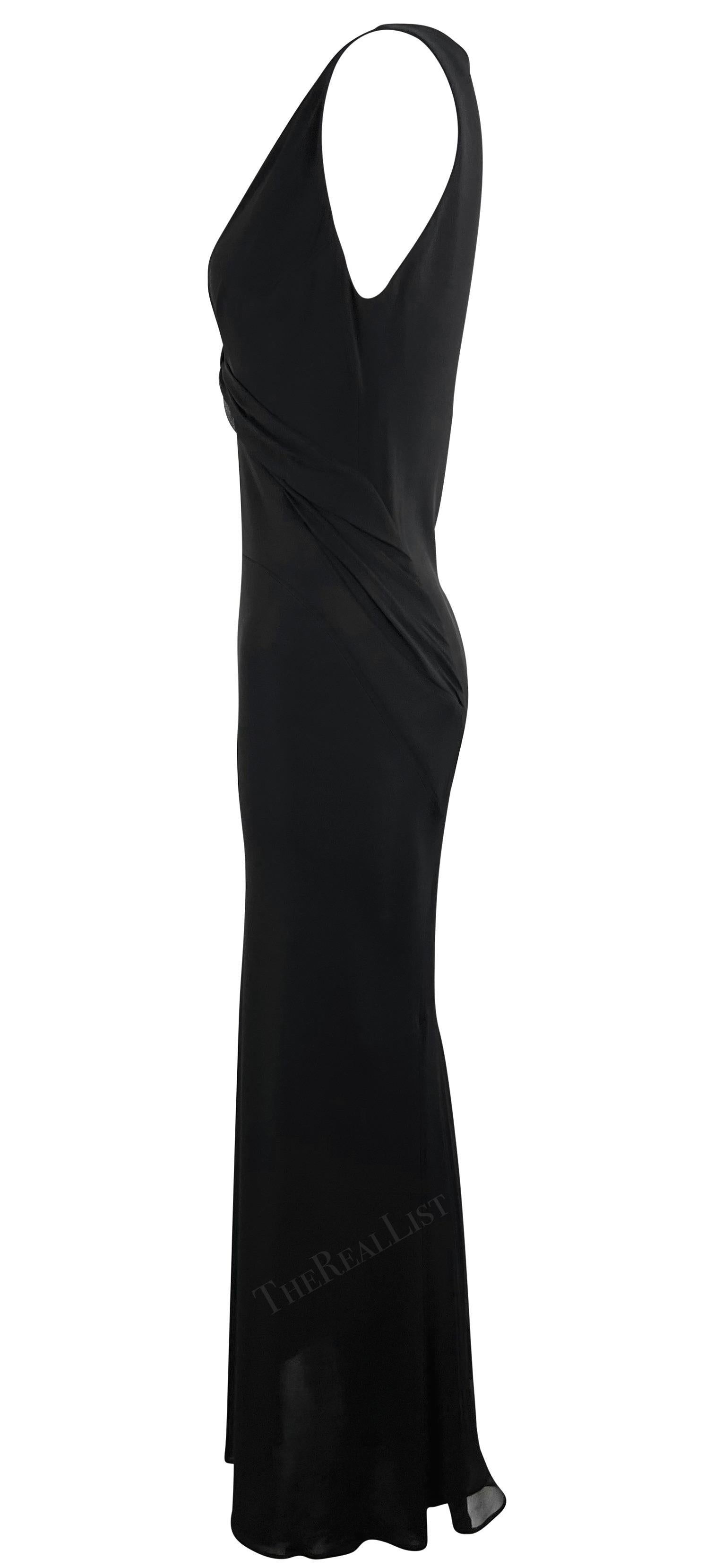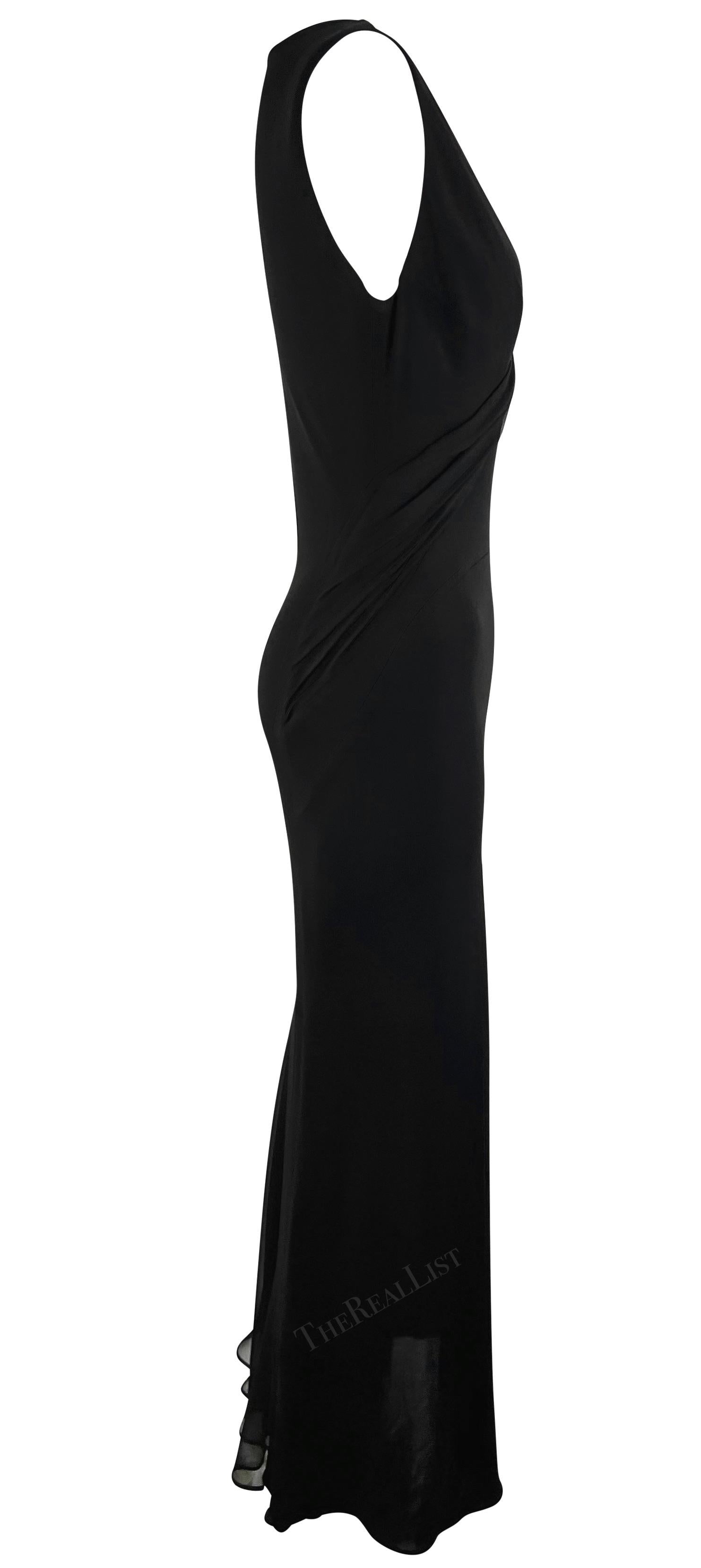 2000s Yigal Azrouël Semi-Sheer Black Bodycon Chiffon Trim Plunging Gown