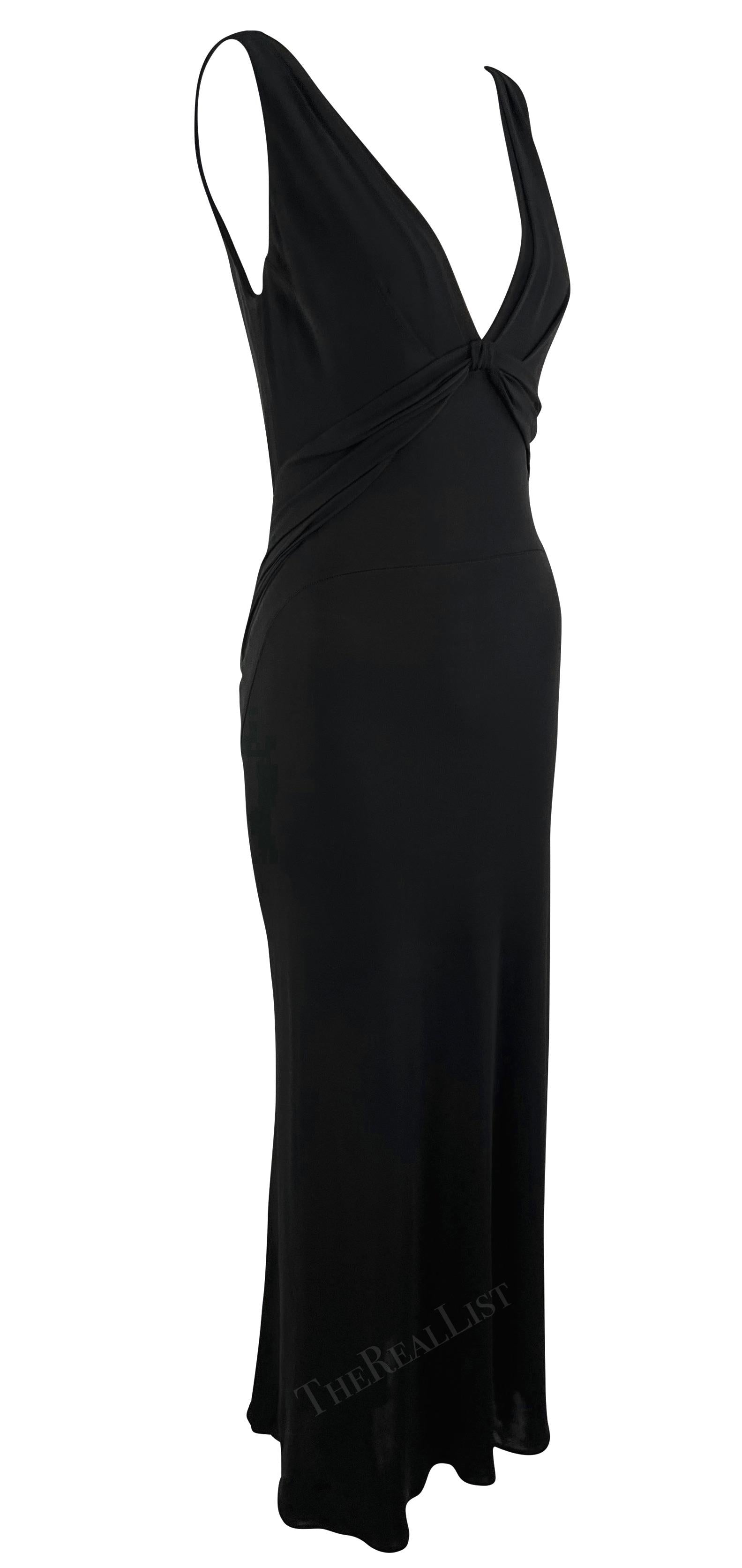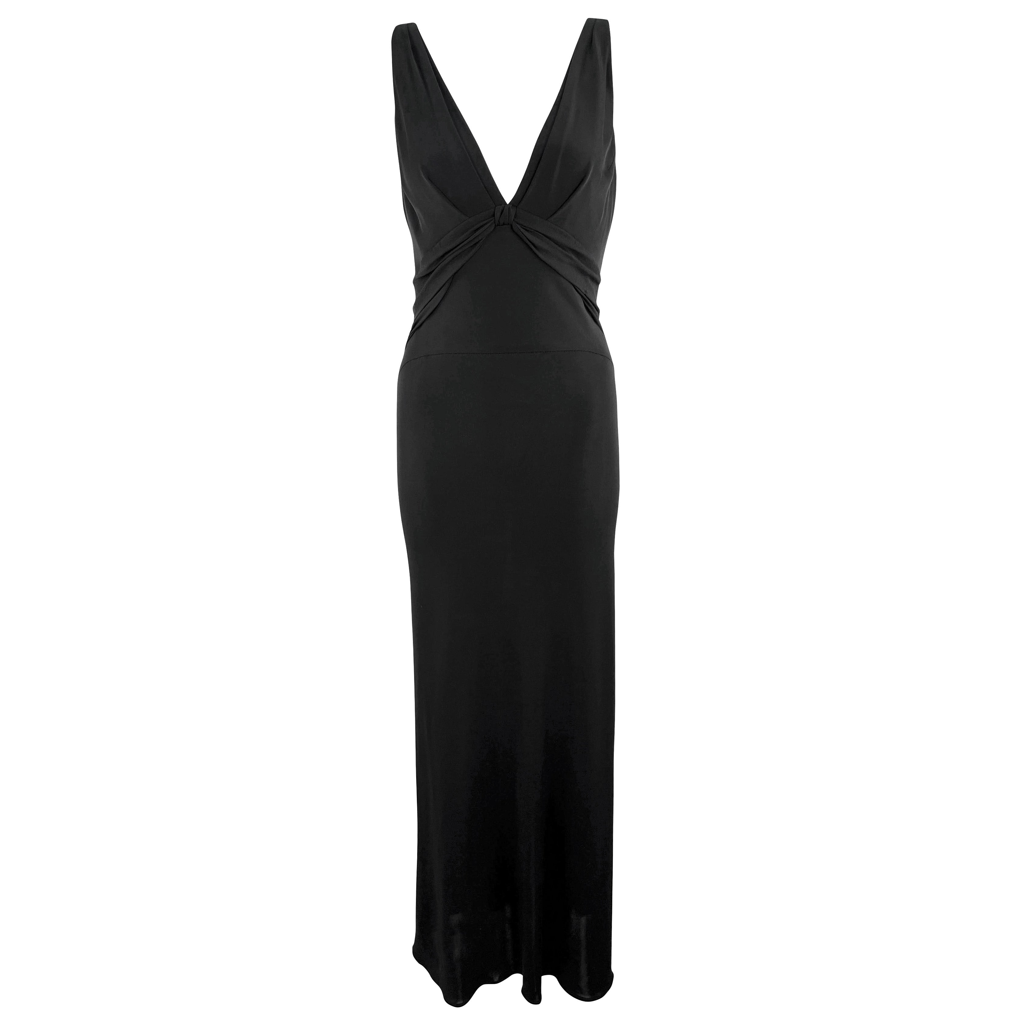 From the mid 2000s, this black bodycon Yigal Azrouël gown is the perfect elevated essential. Easily dressed up or down, this stretchy gown features a plunging v-neckline with a twisted detail under the bust.