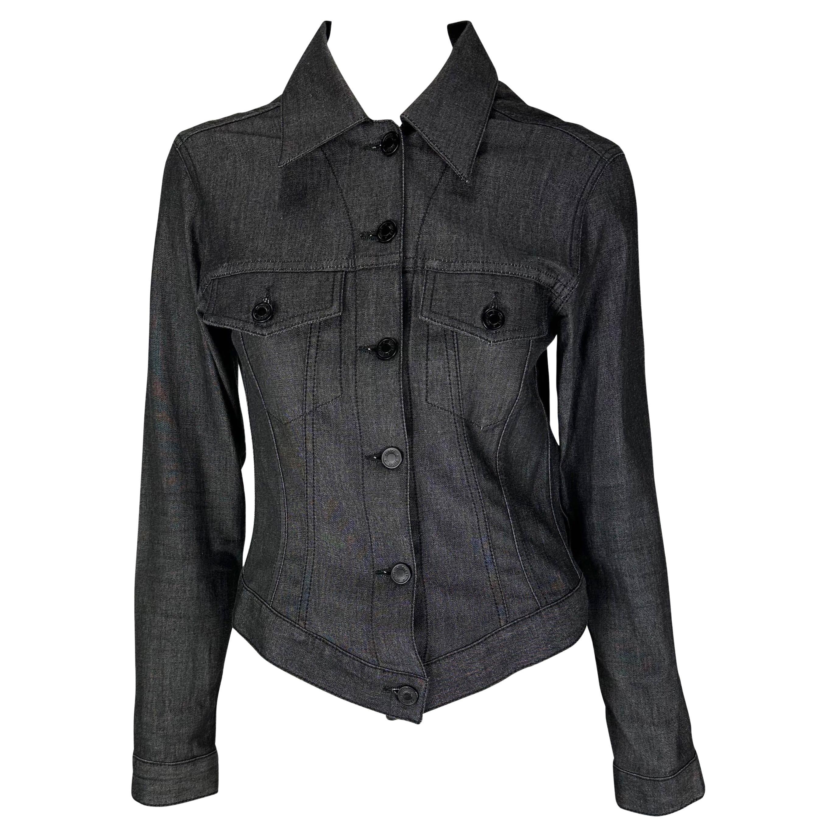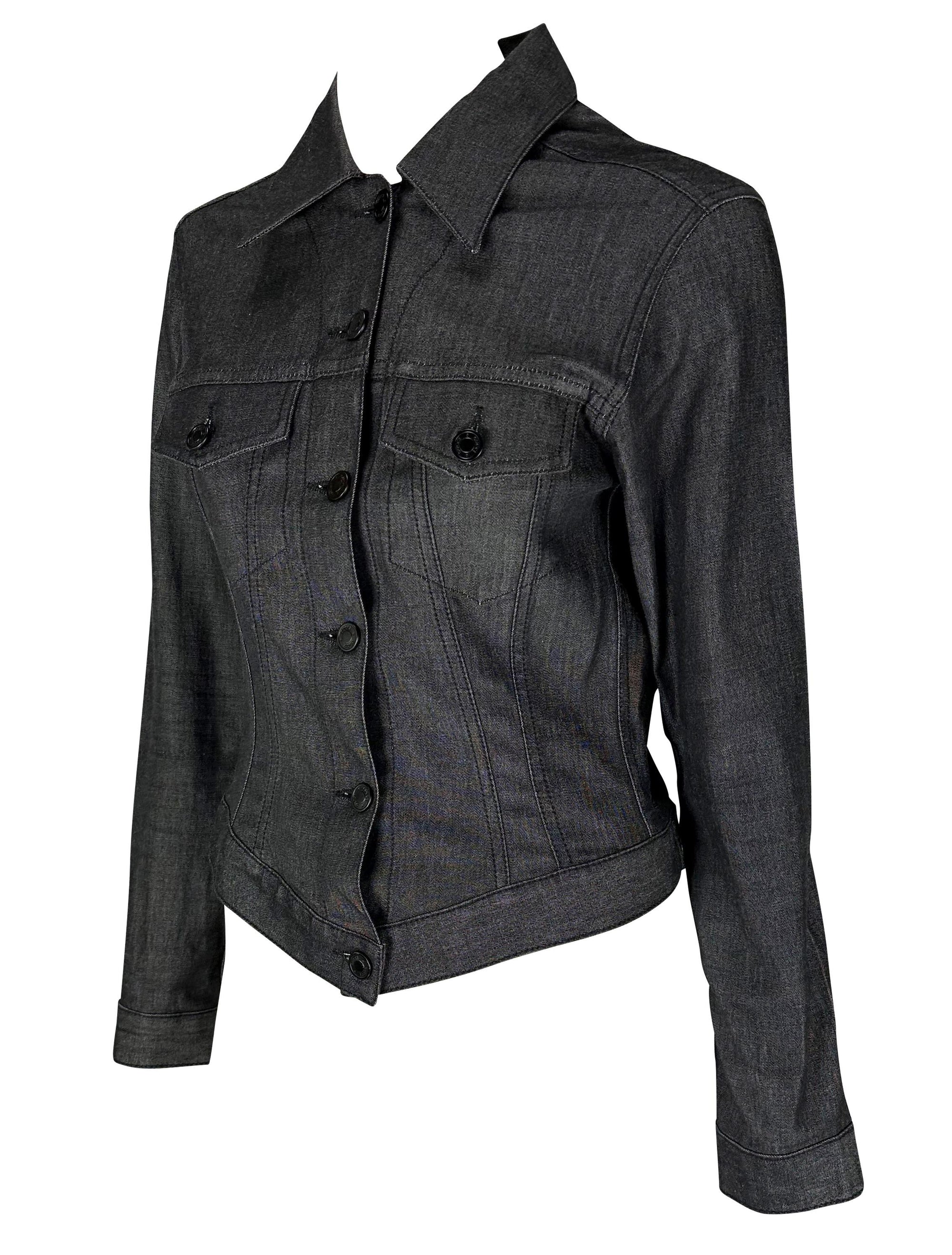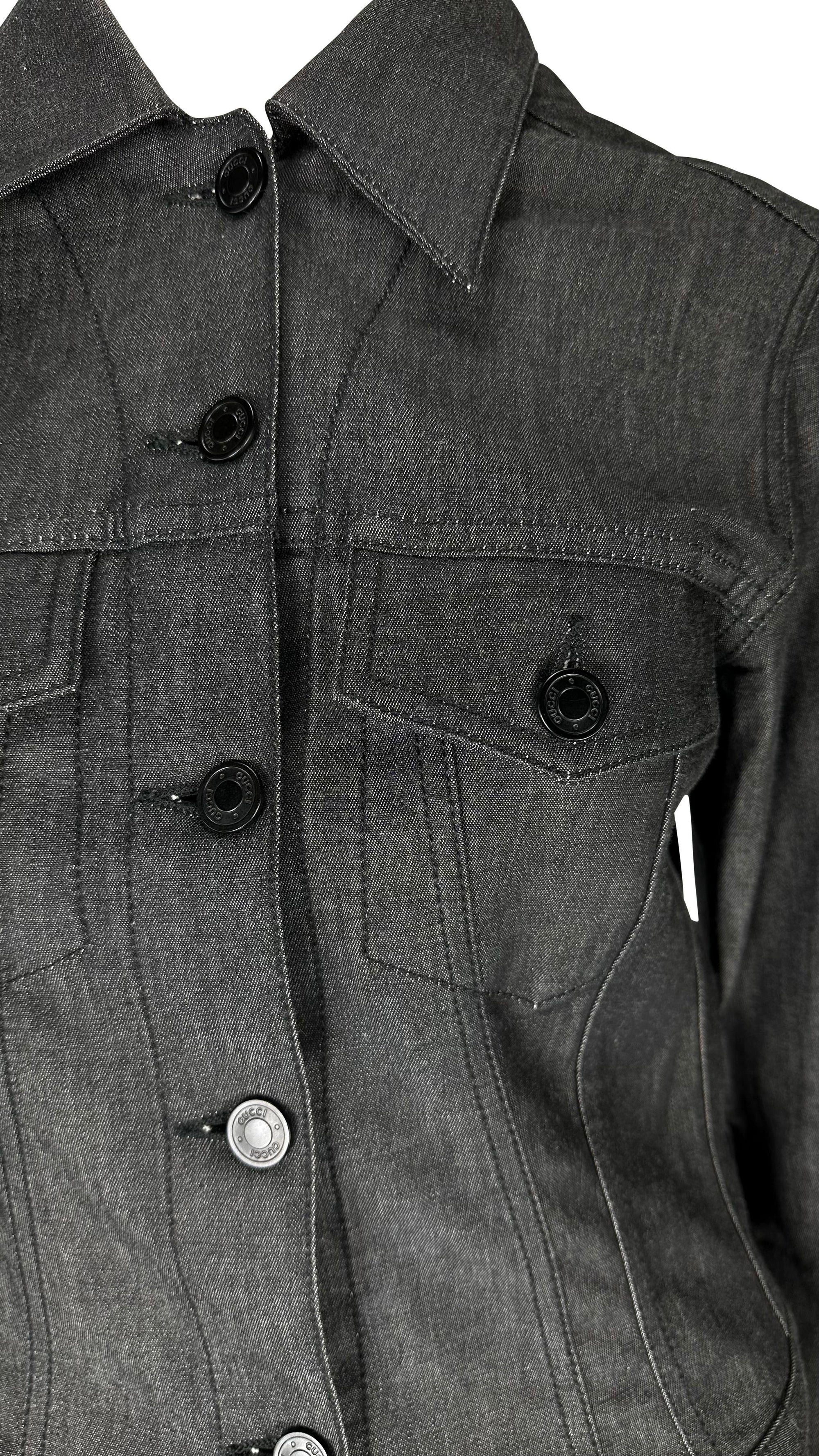 2001 Gucci by Tom Ford Black Stretch Denim Cotton Monochrome Jacket