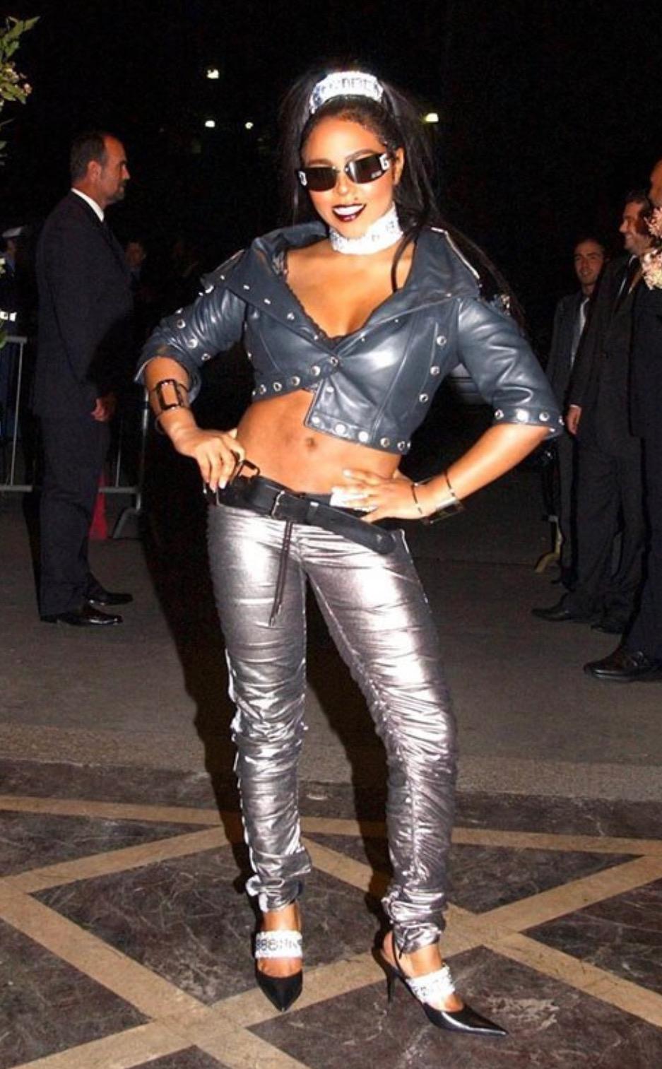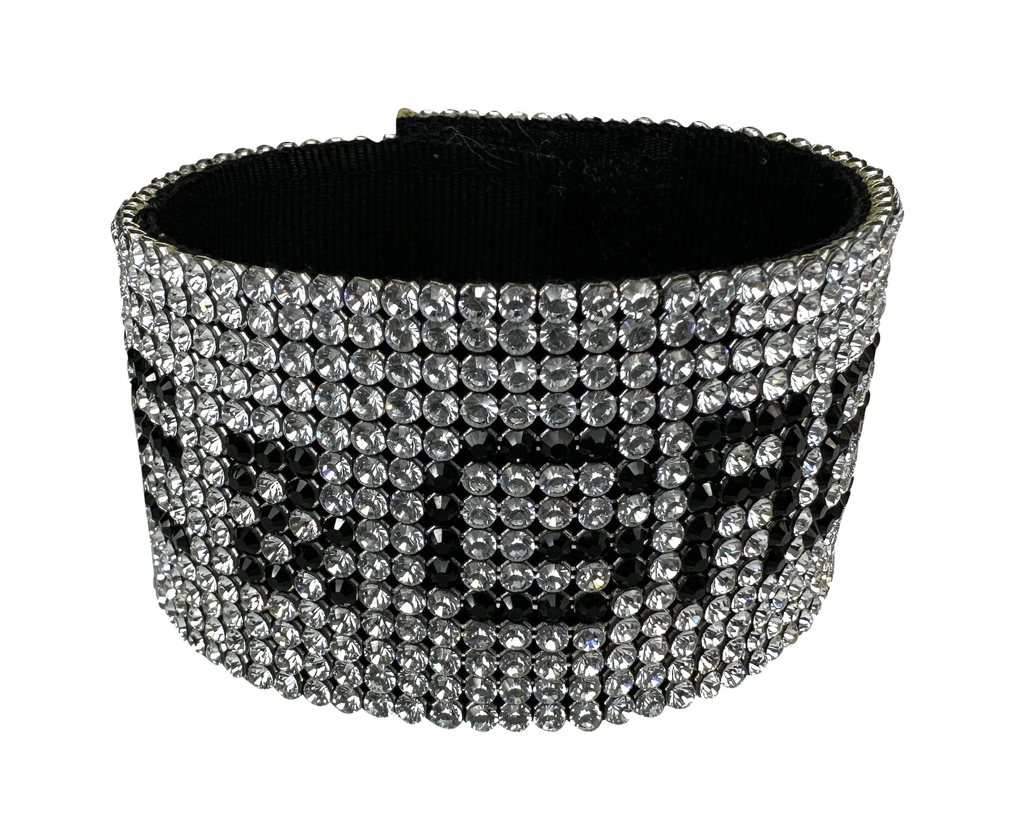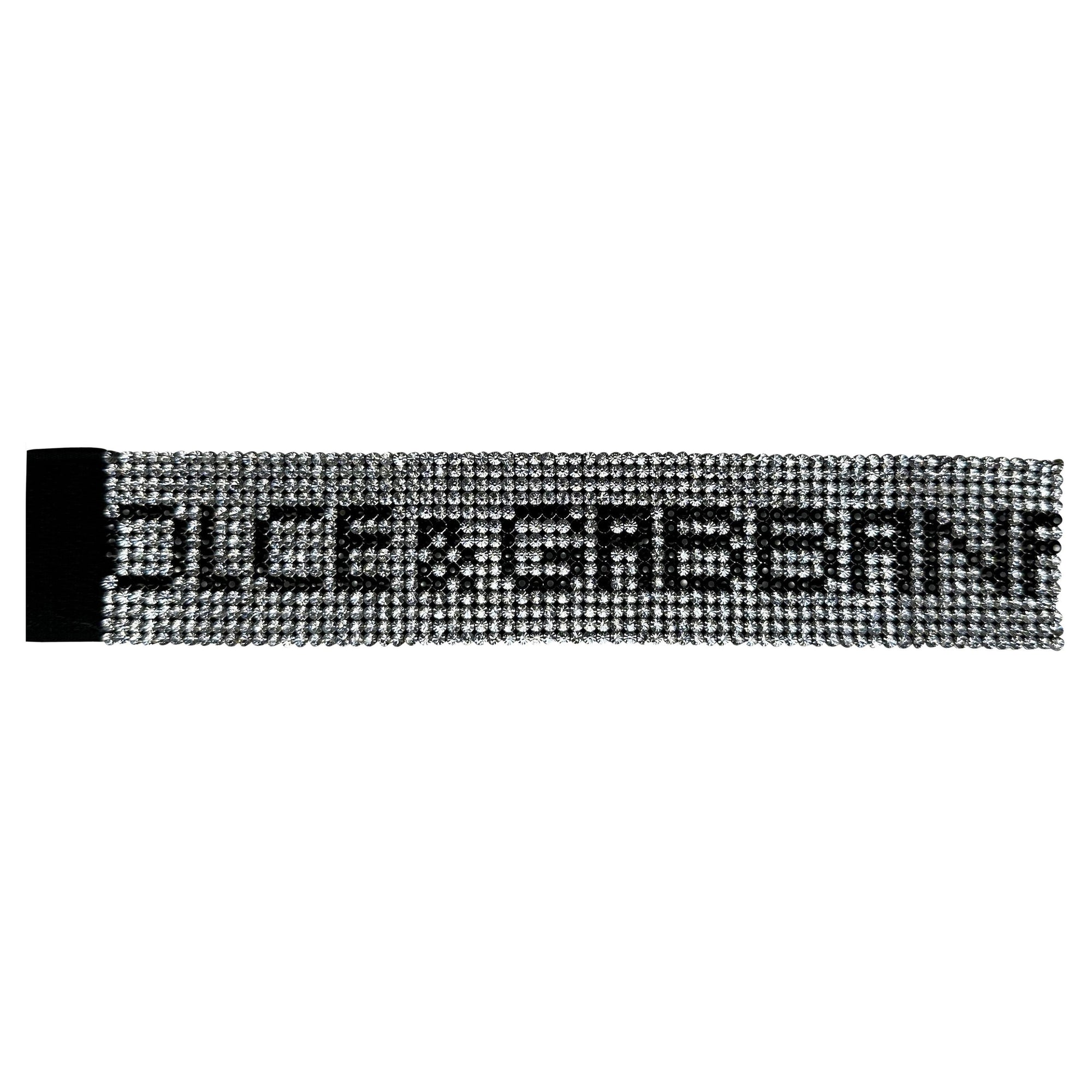 This Dolce & Gabbana cuff bracelet is set with clear and black rhinestones arranged to spell out the brand’s name. The bold crystal motif was notably worn by Lil’ Kim at a 2003 Dolce & Gabbana event, exemplifying the label’s early 2000s statement accessories.