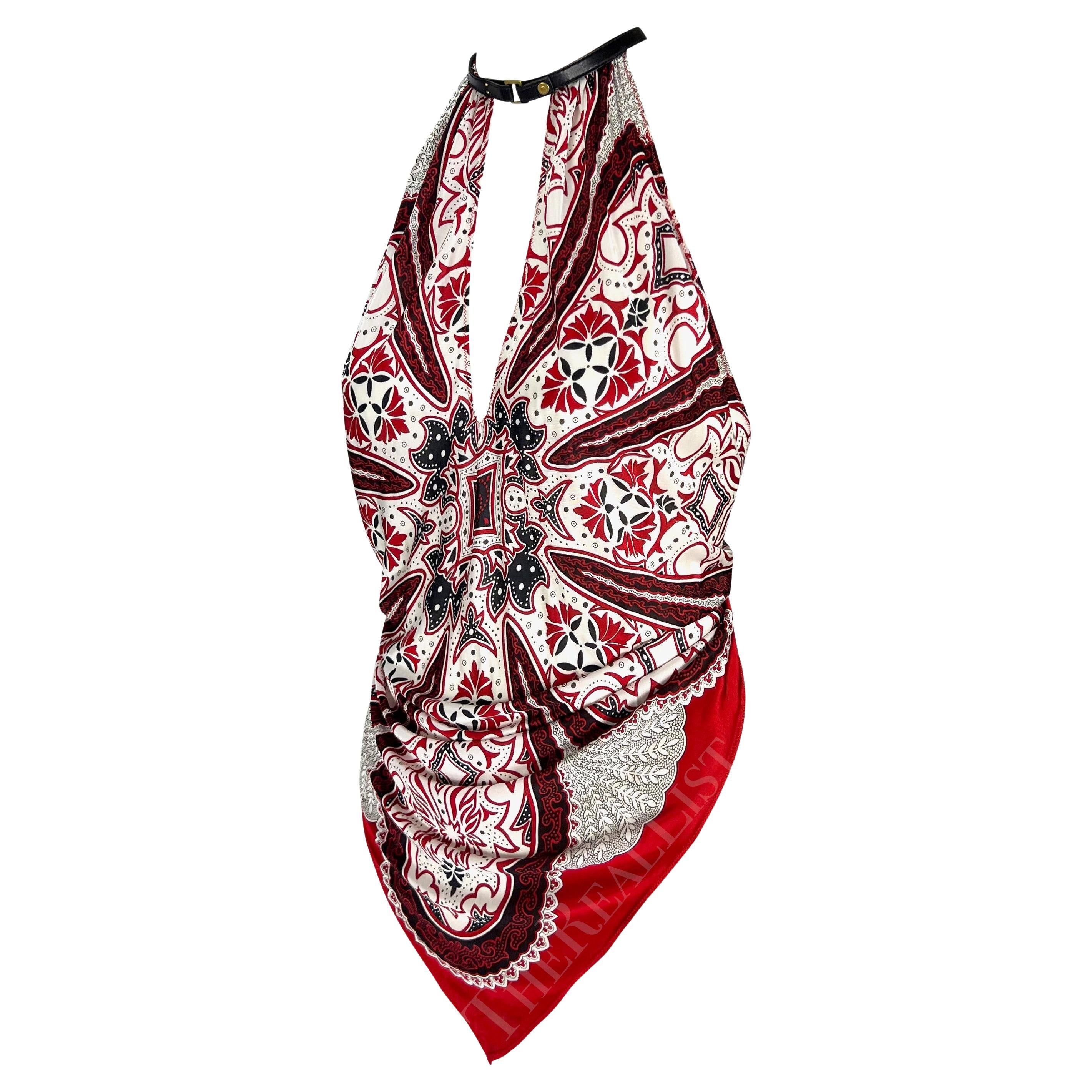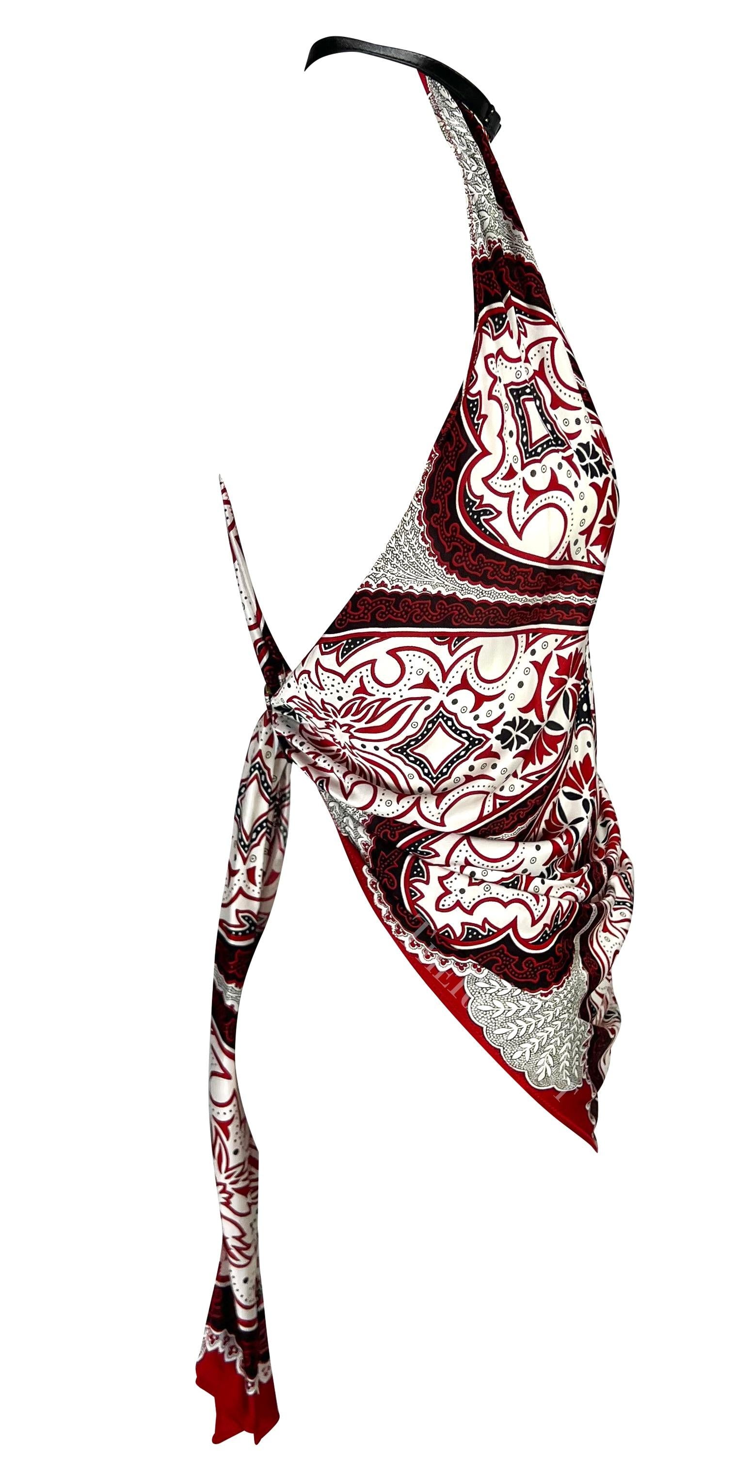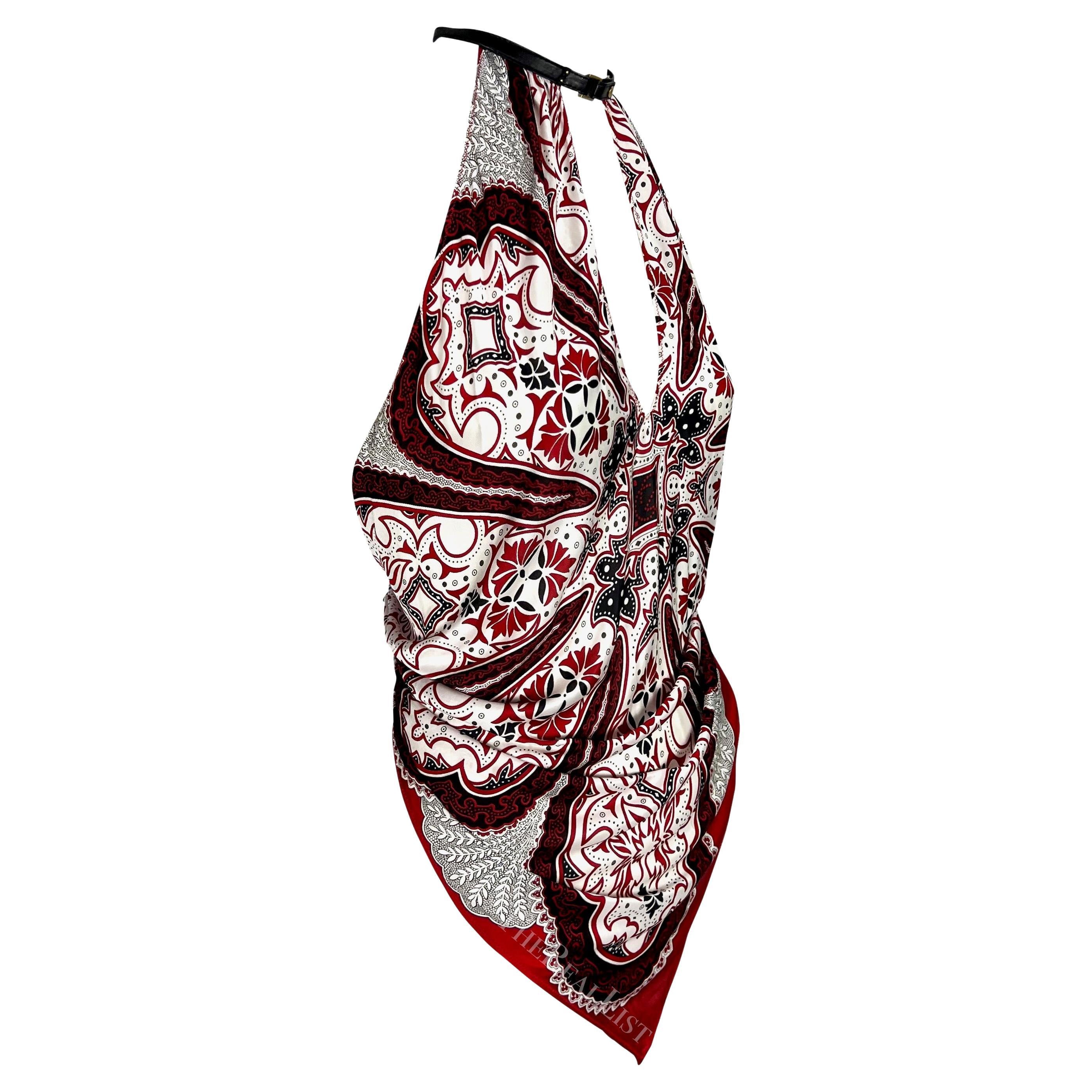 Cruise 2004 Gucci by Tom Ford Red Paisley Halterneck Backless Scarf Blouse