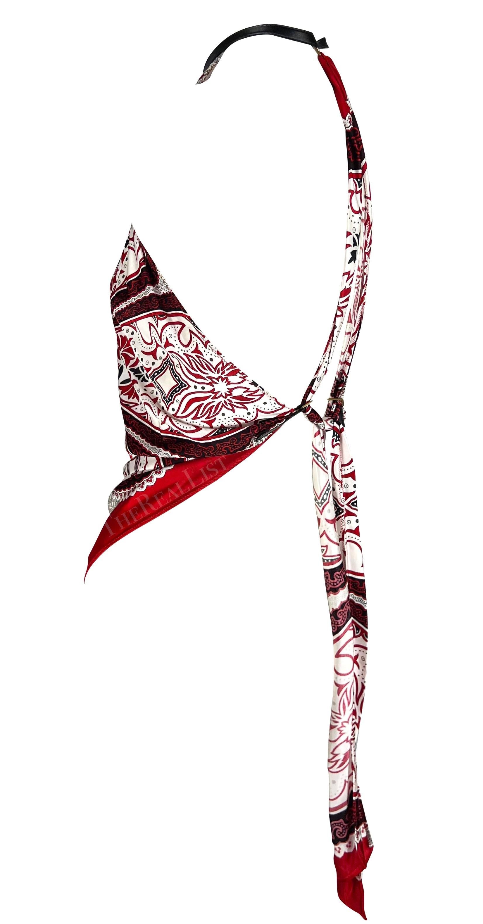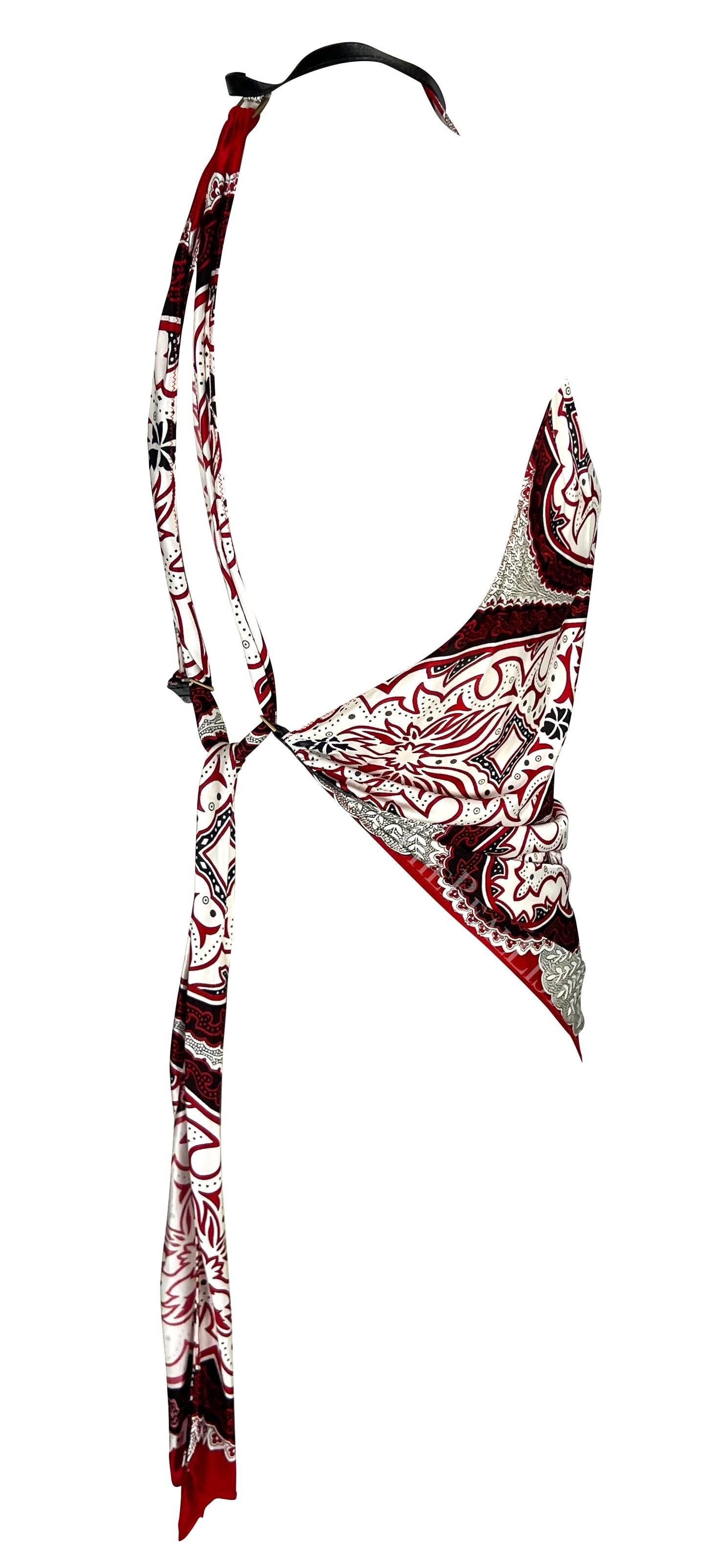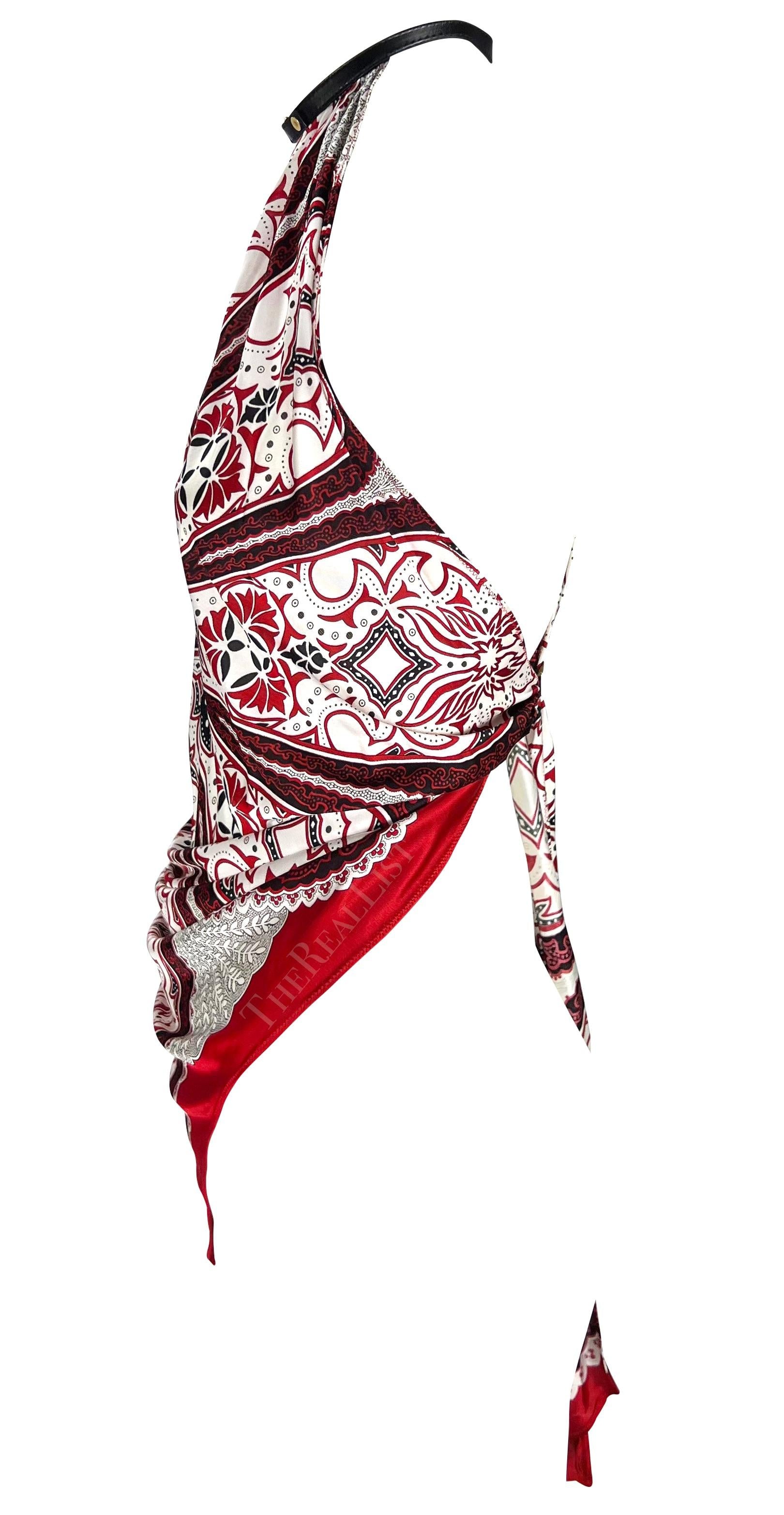 Cruise 2004 Gucci by Tom Ford Red Paisley Halterneck Backless Scarf Blouse