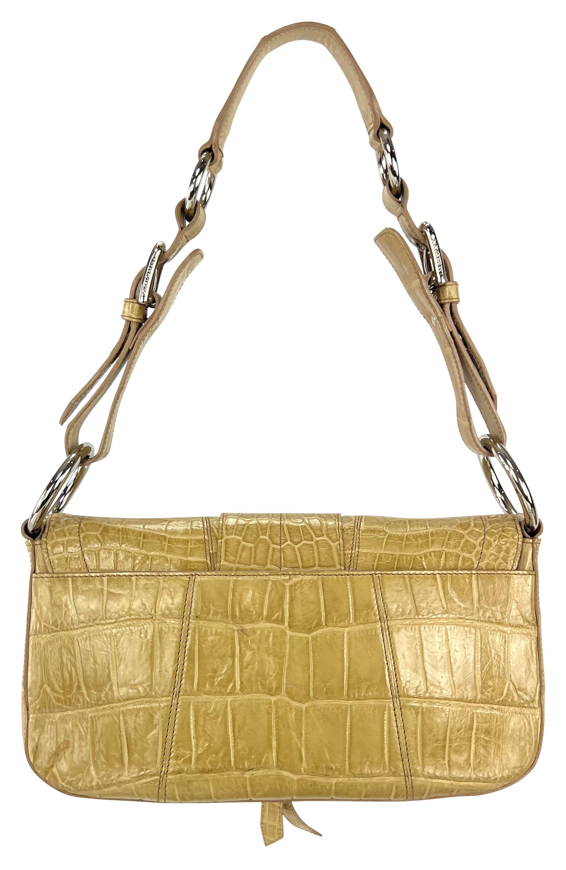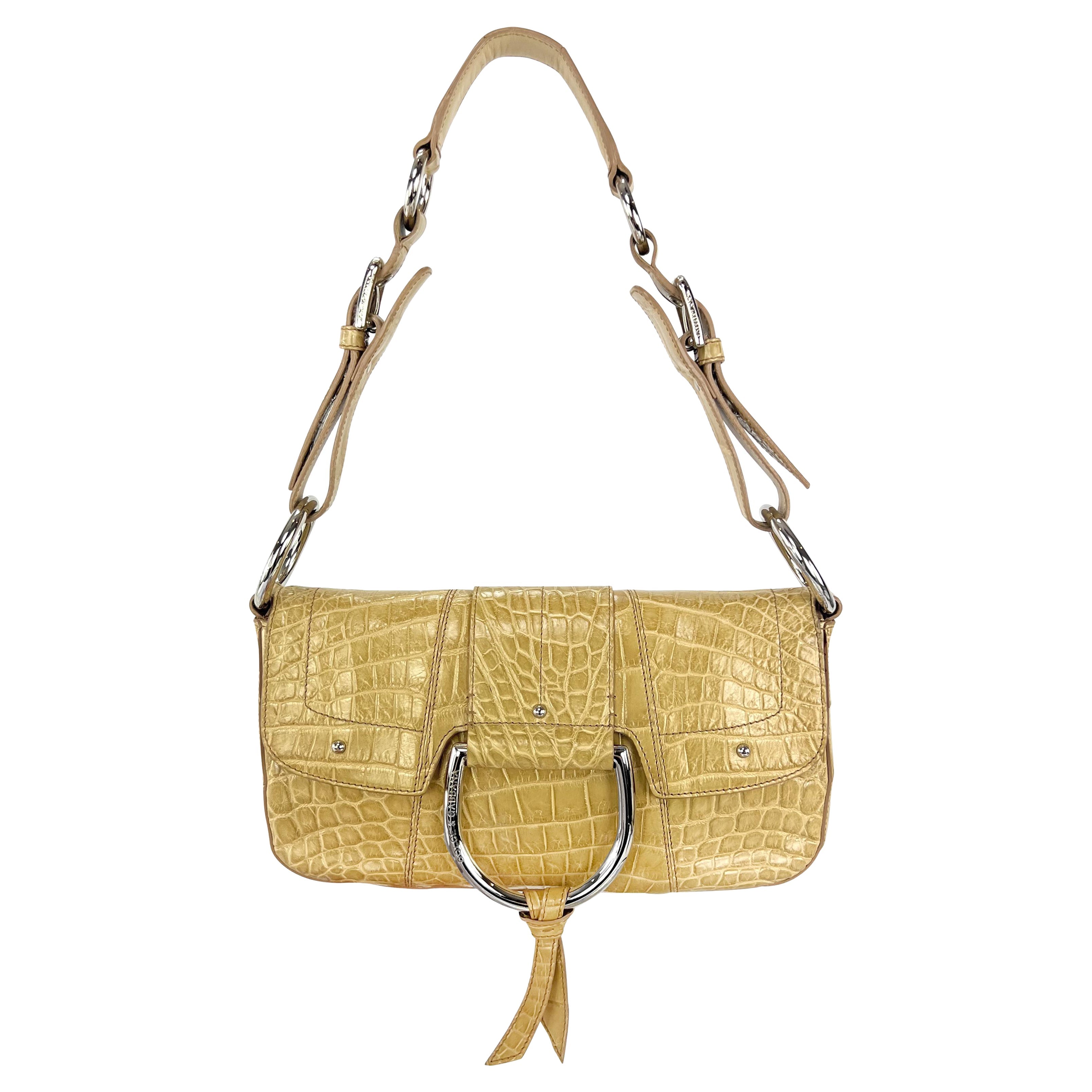 2004 Dolce & Gabbana Genuine Crocodile Tan Large Ring Flap Medium Shoulder Bag