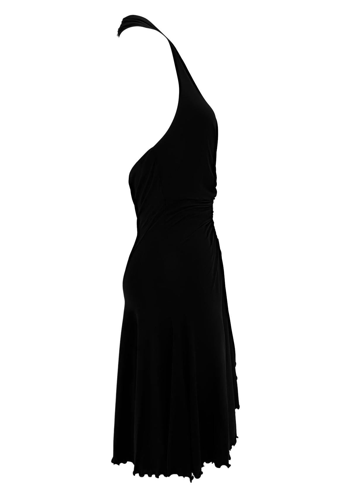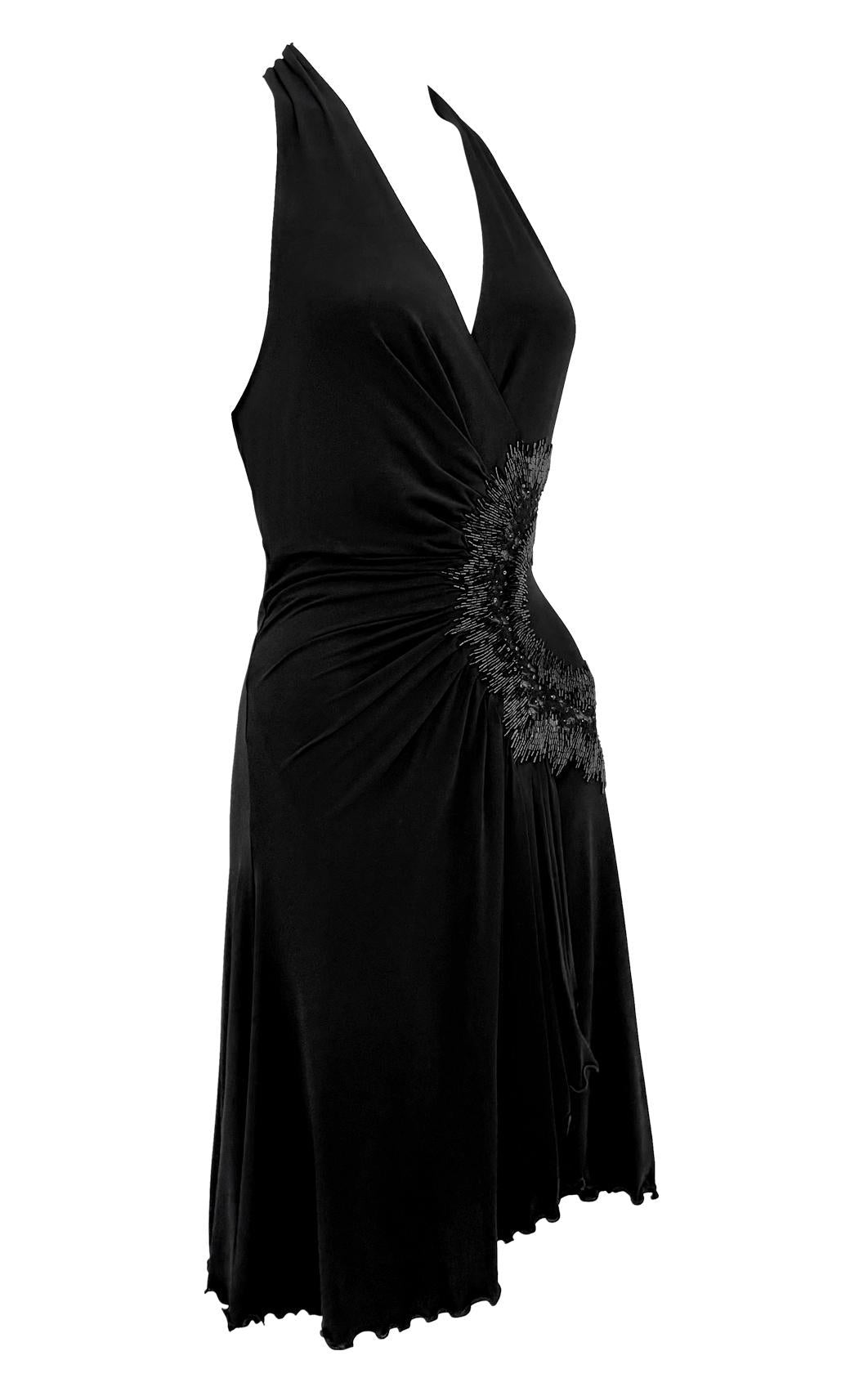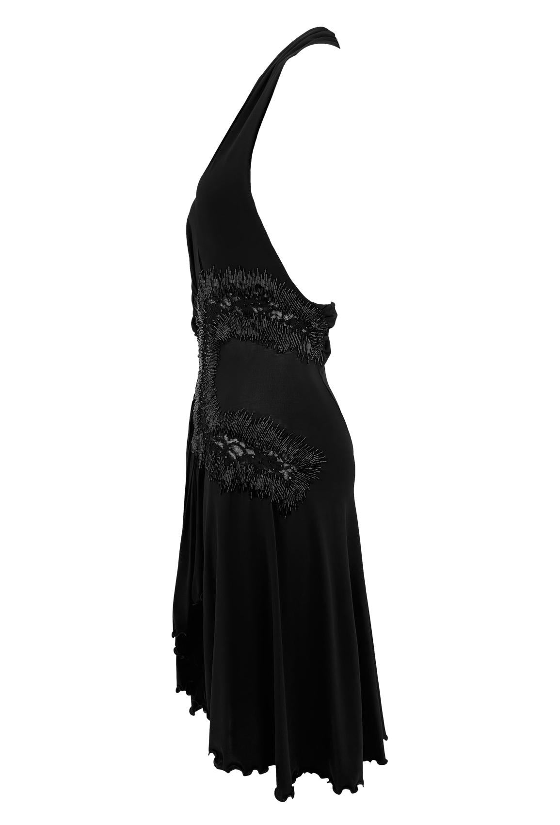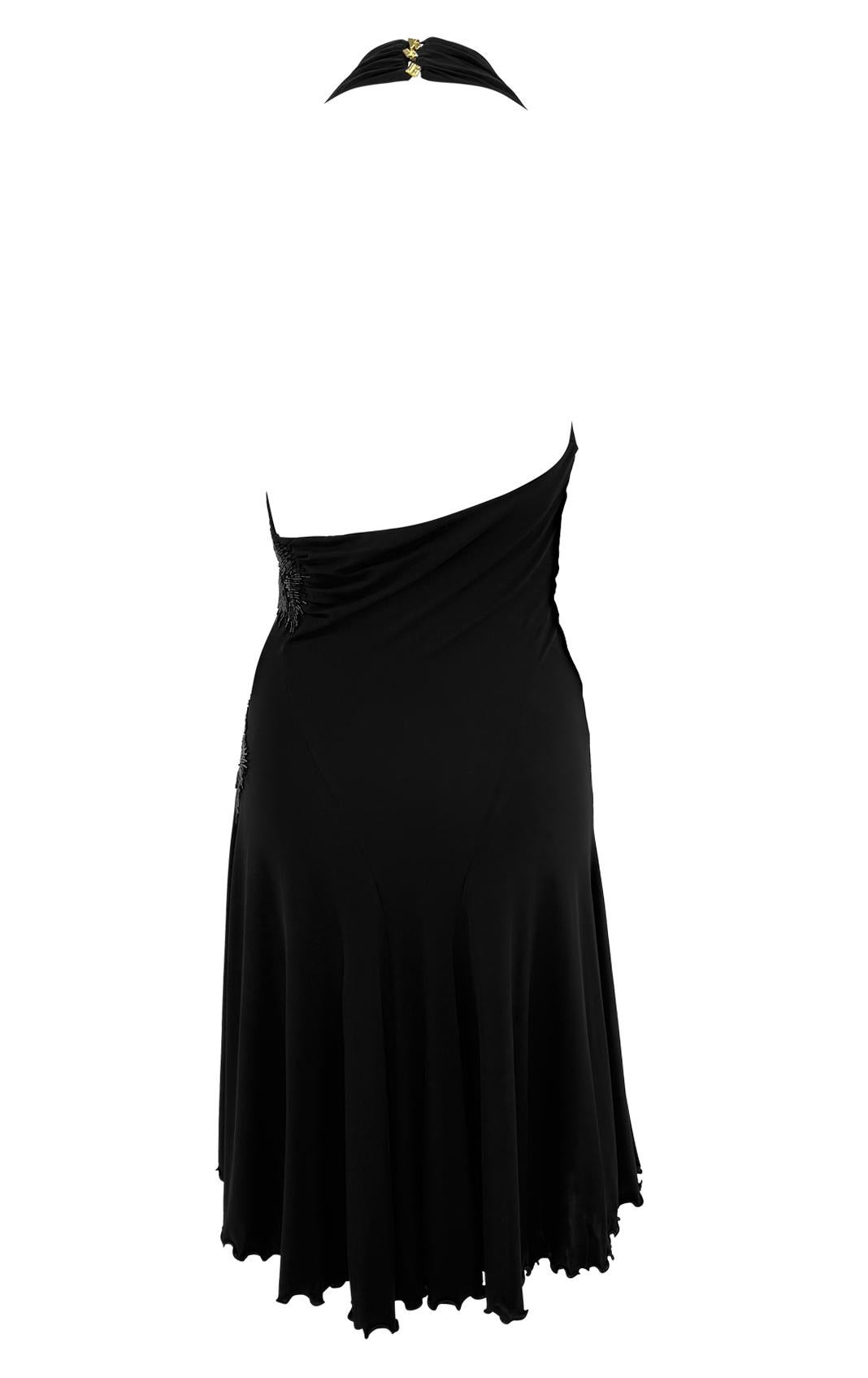 2006 Roberto Cavalli Semi Sheer Black Rhinestone Beaded Flare Halter Mini Dress