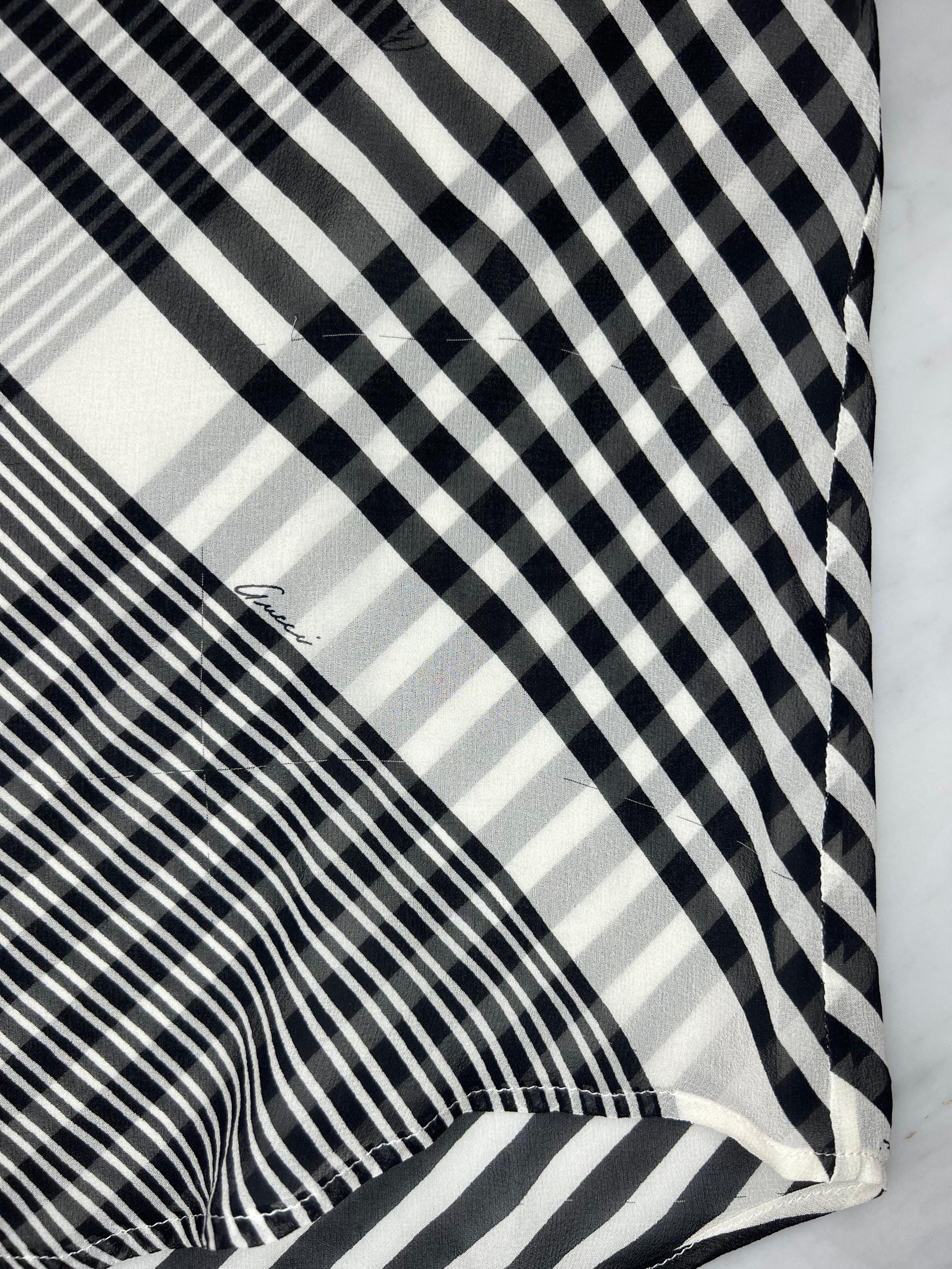 Cruise 2000 Gucci by Tom Ford Black White Stripe Sheer Button Up Top
