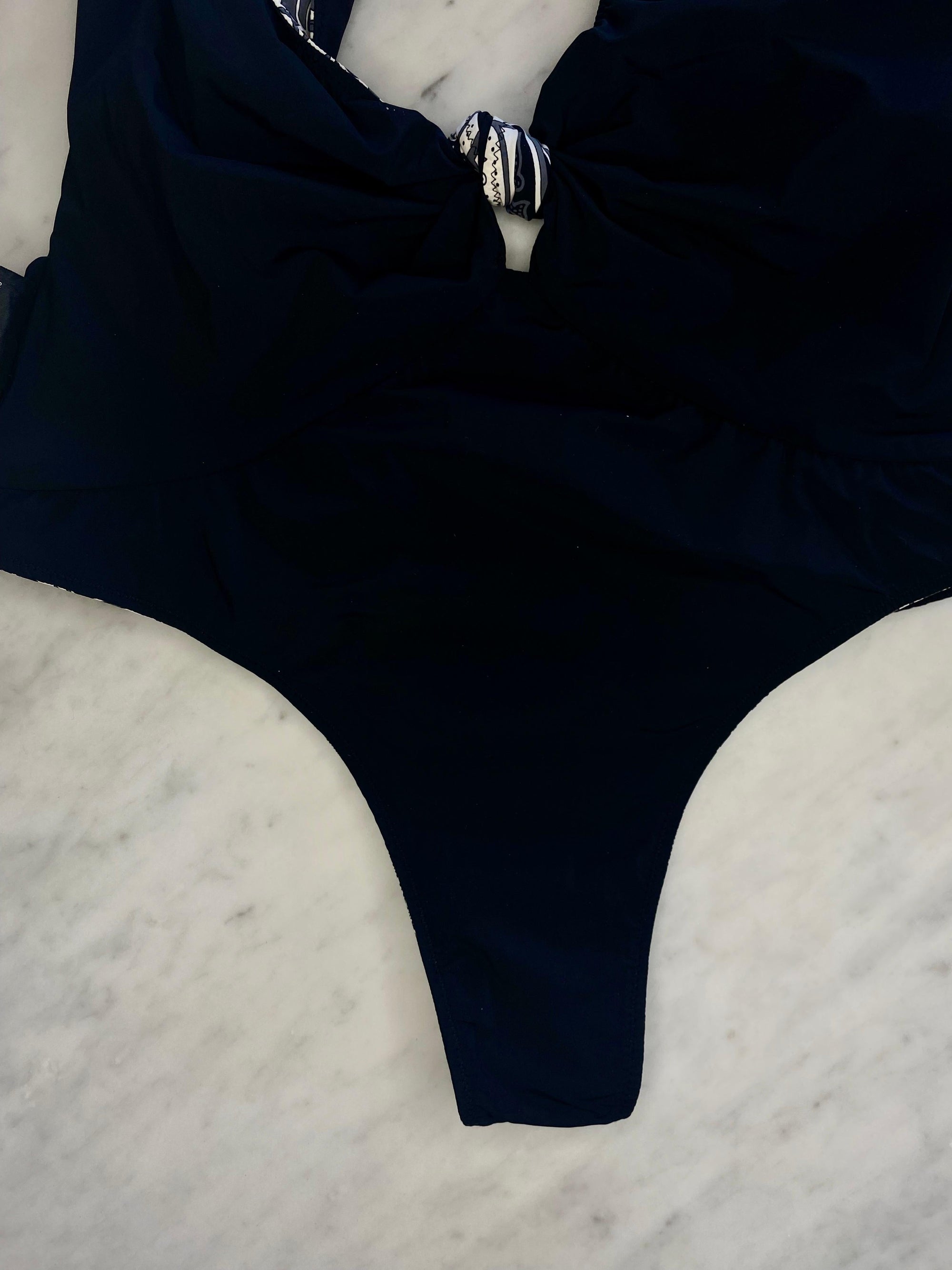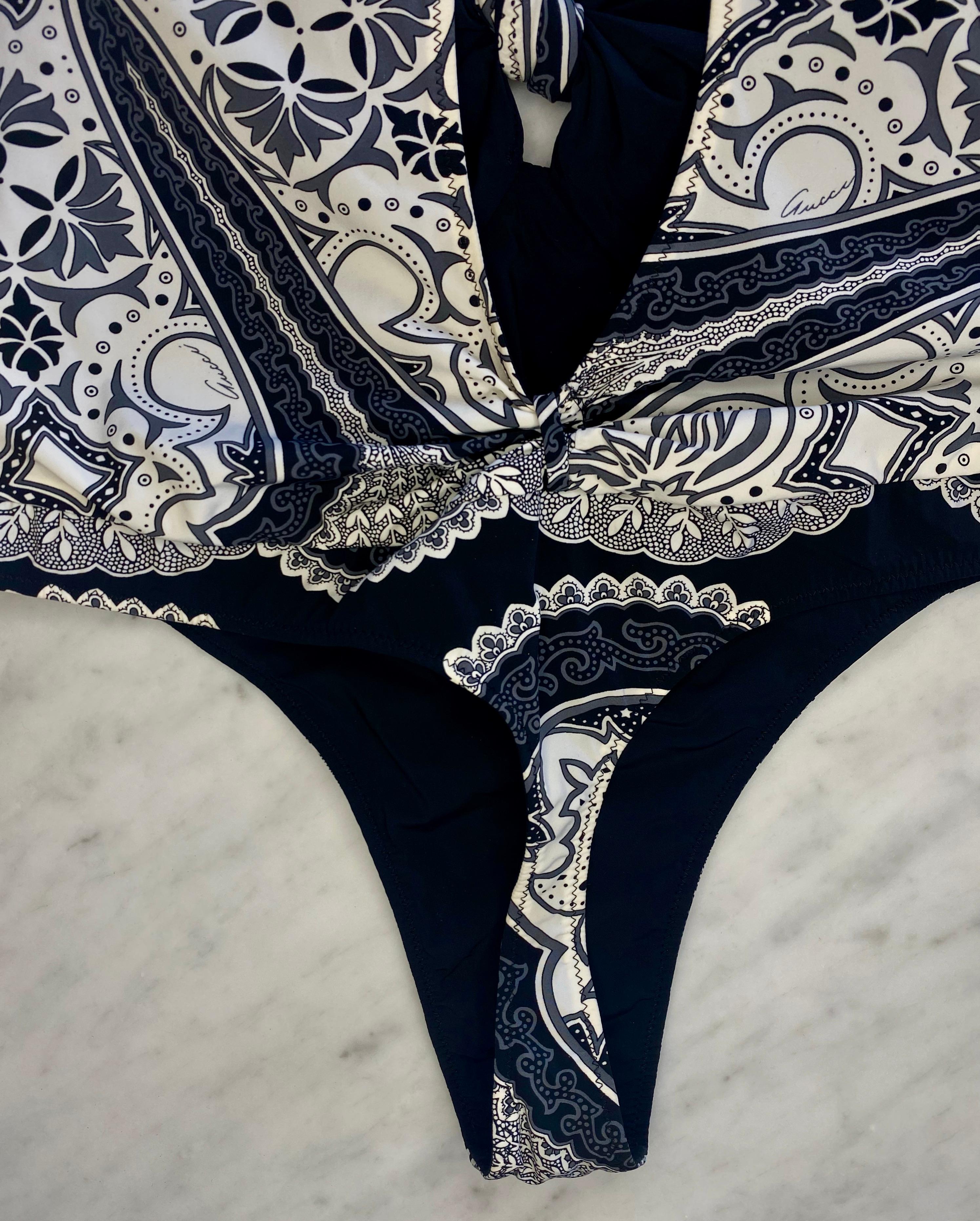 Cruise 2004 Gucci by Tom Ford Black Bandana Print One Piece Thong Swimsuit