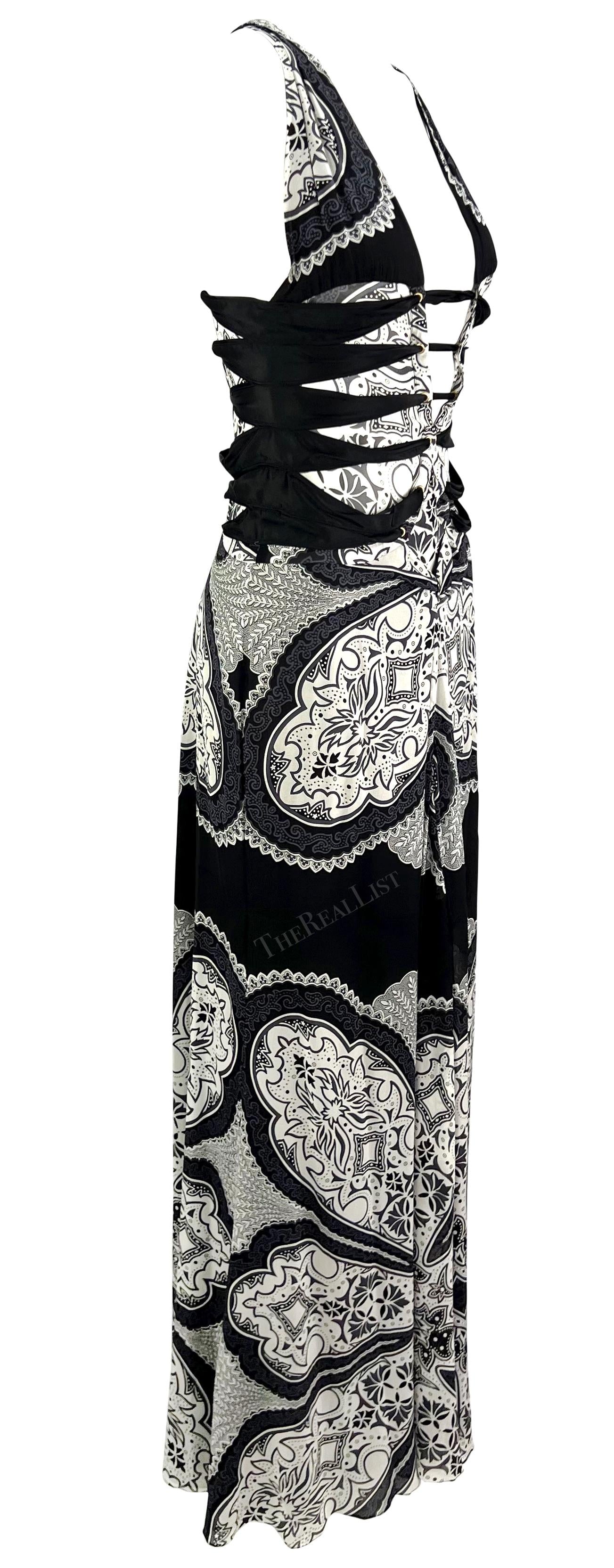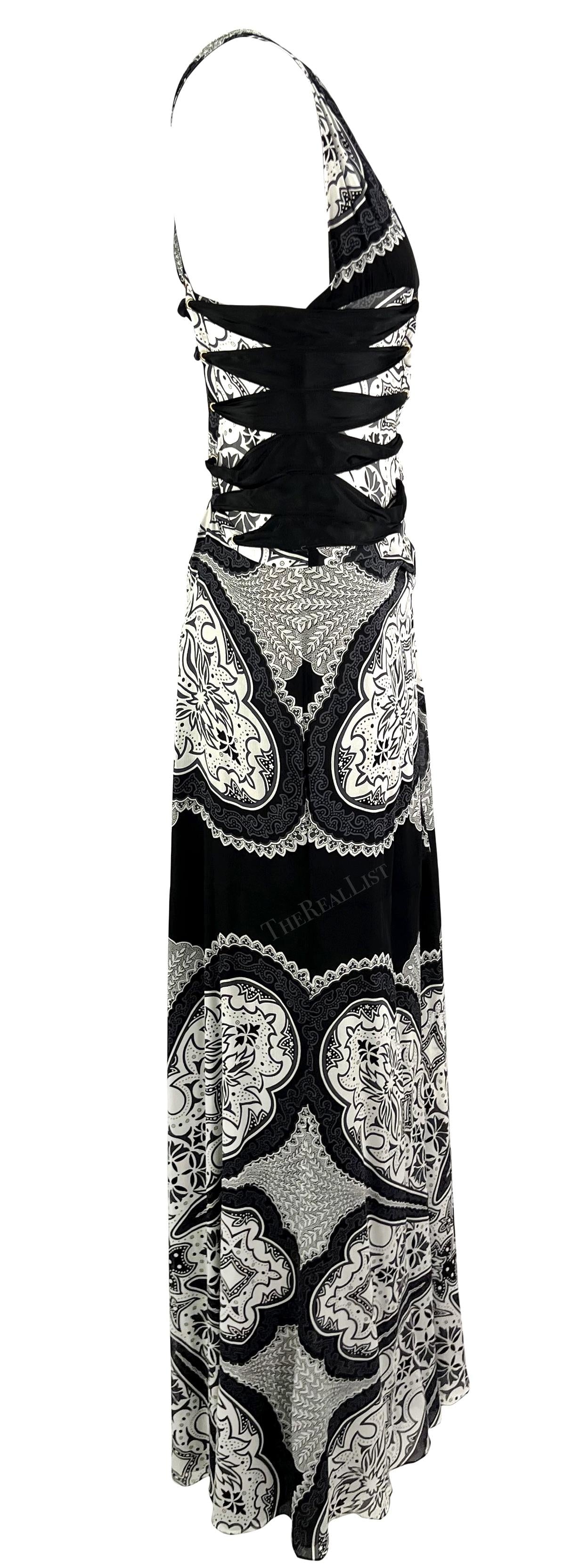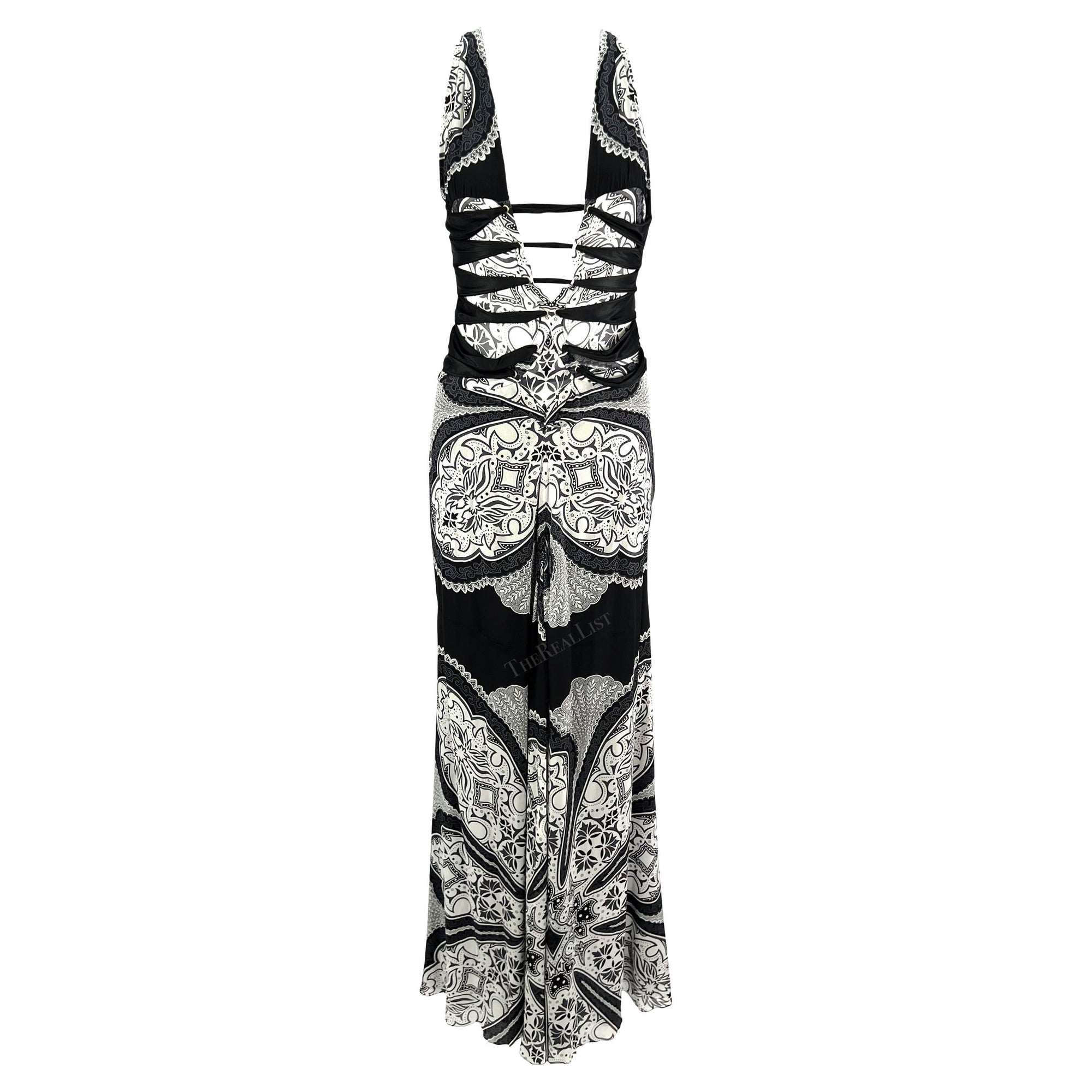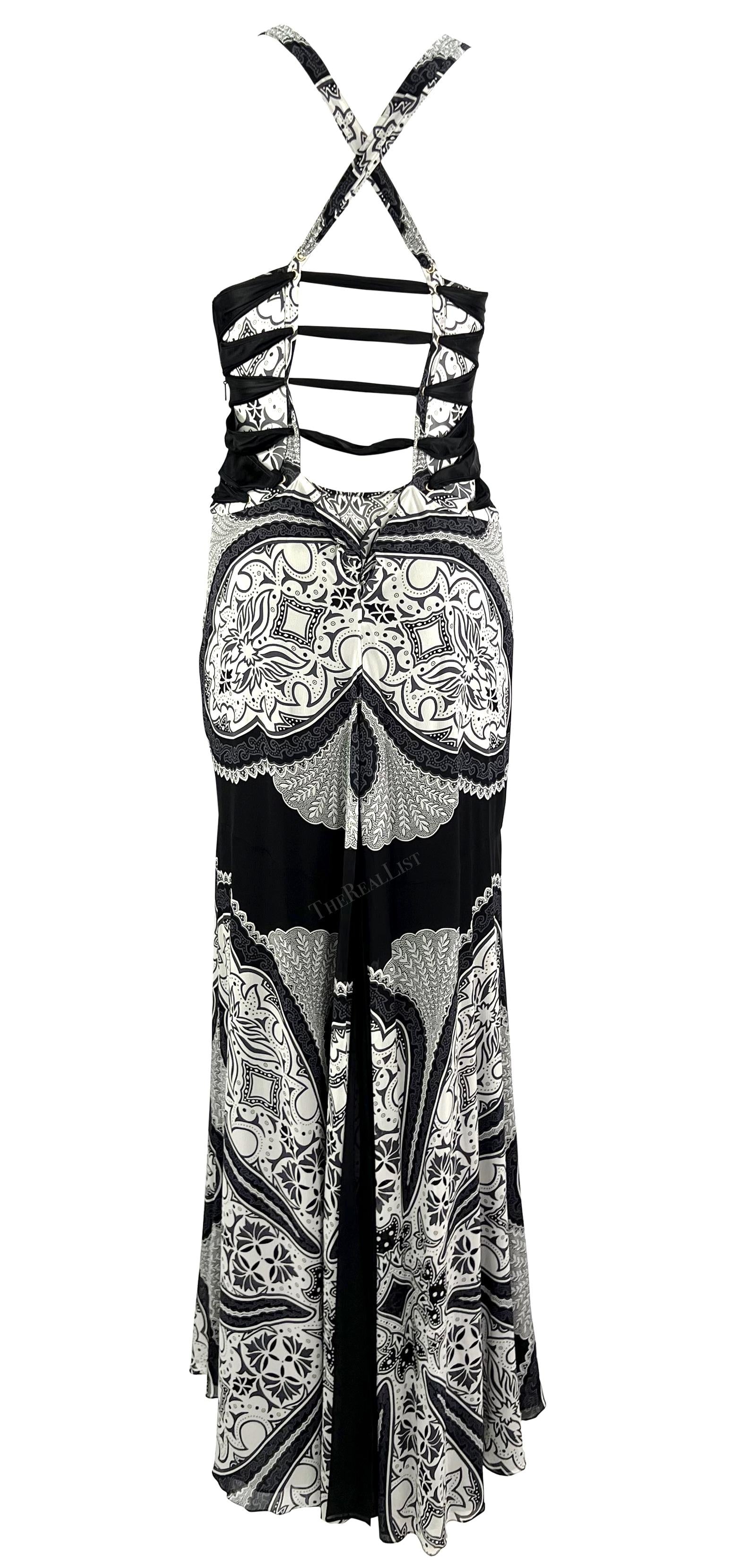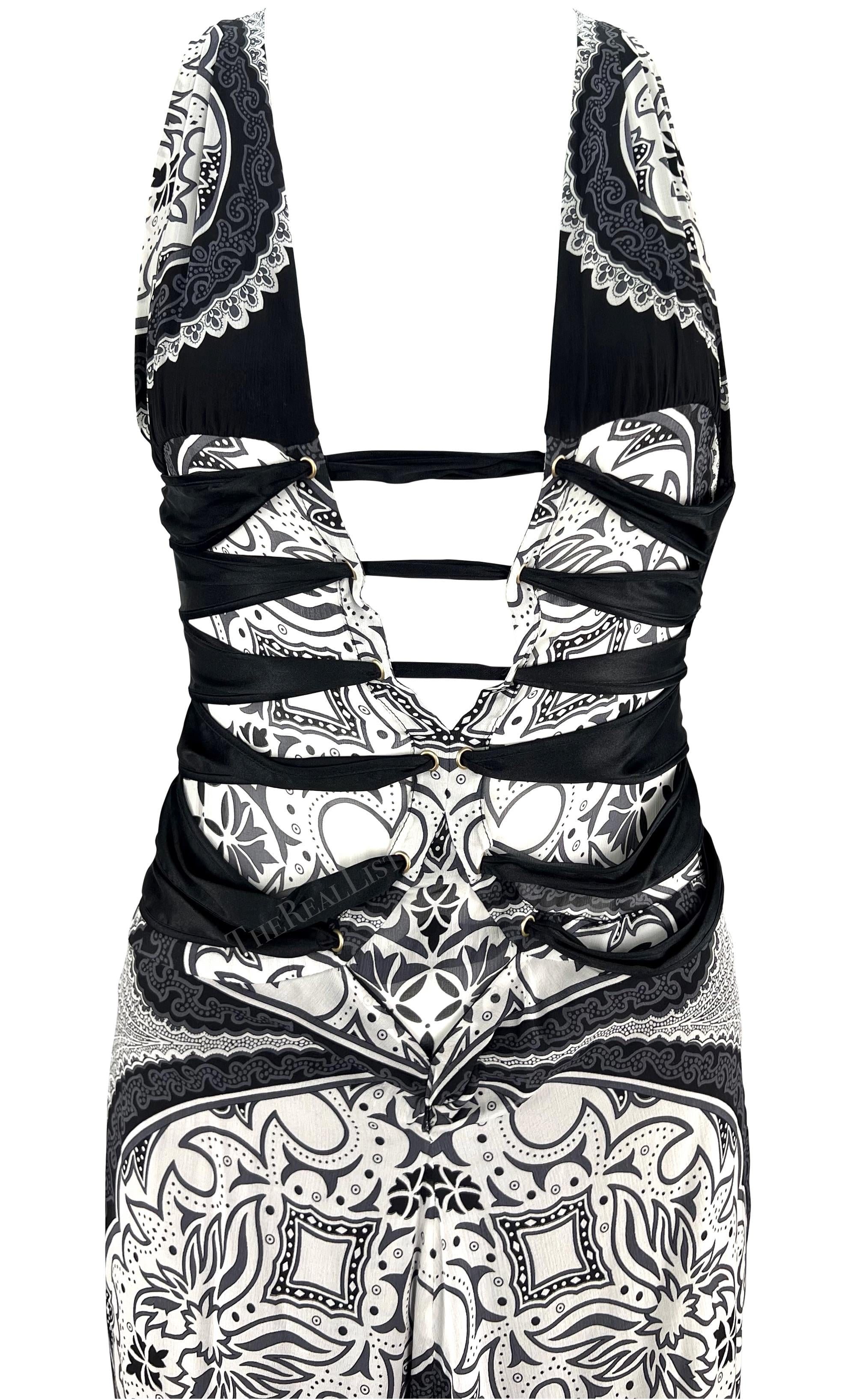 Cruise 2004 Gucci by Tom Ford Black White Paisley Silk Sheer Bandana Print Gown