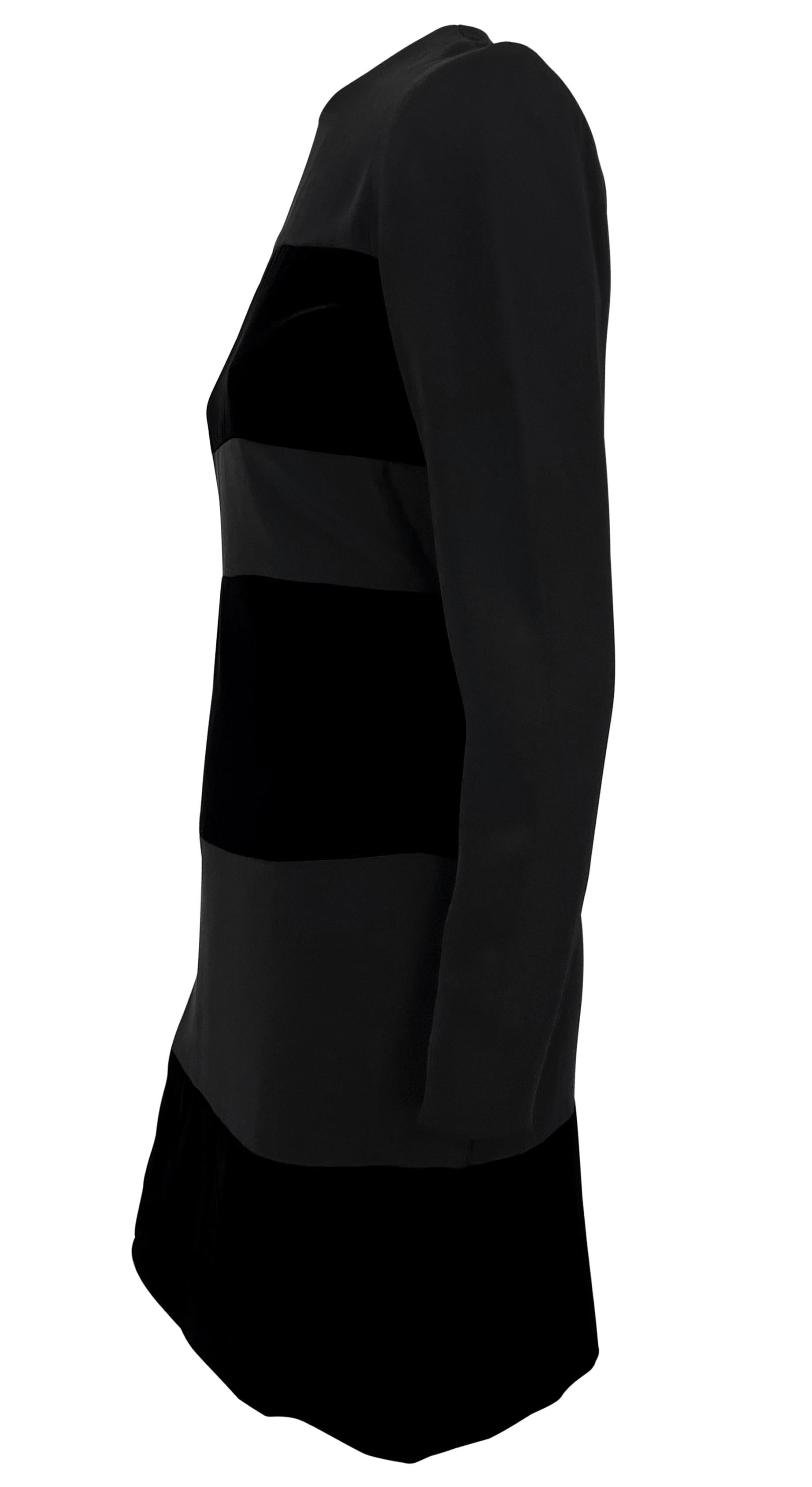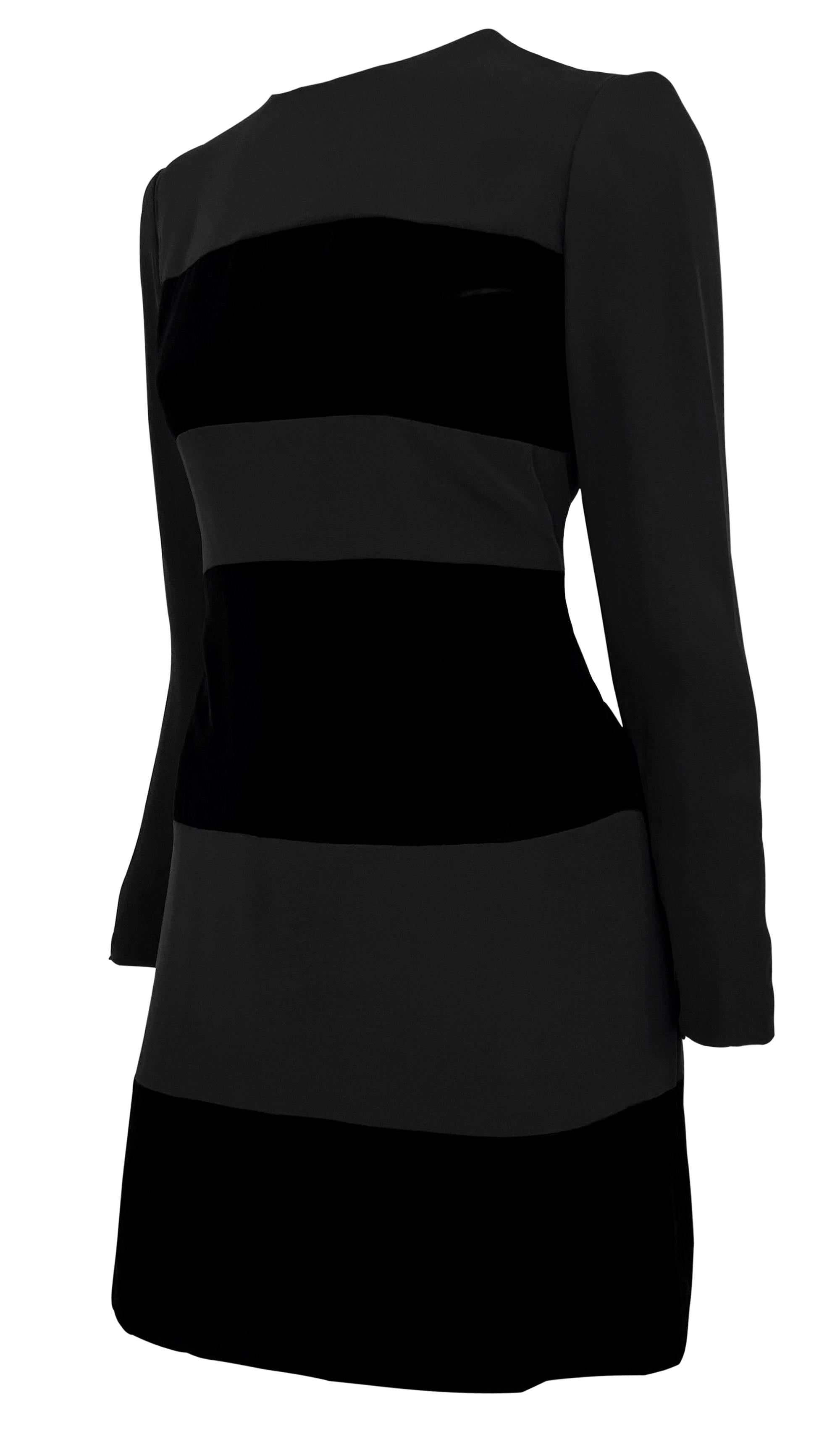 Early 1990s Oscar de La Renta Black Velvet Strip Long Sleeve Mini Dress