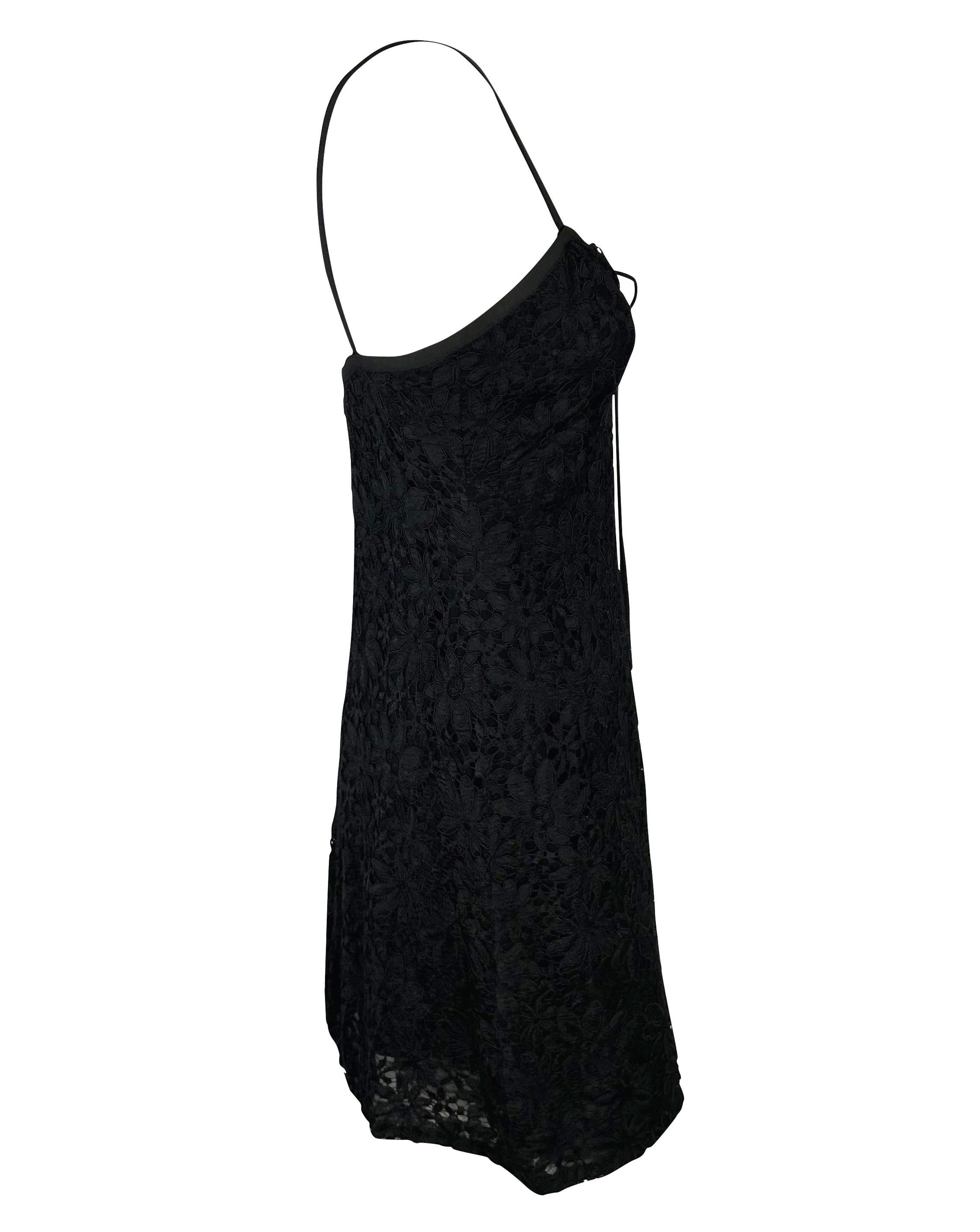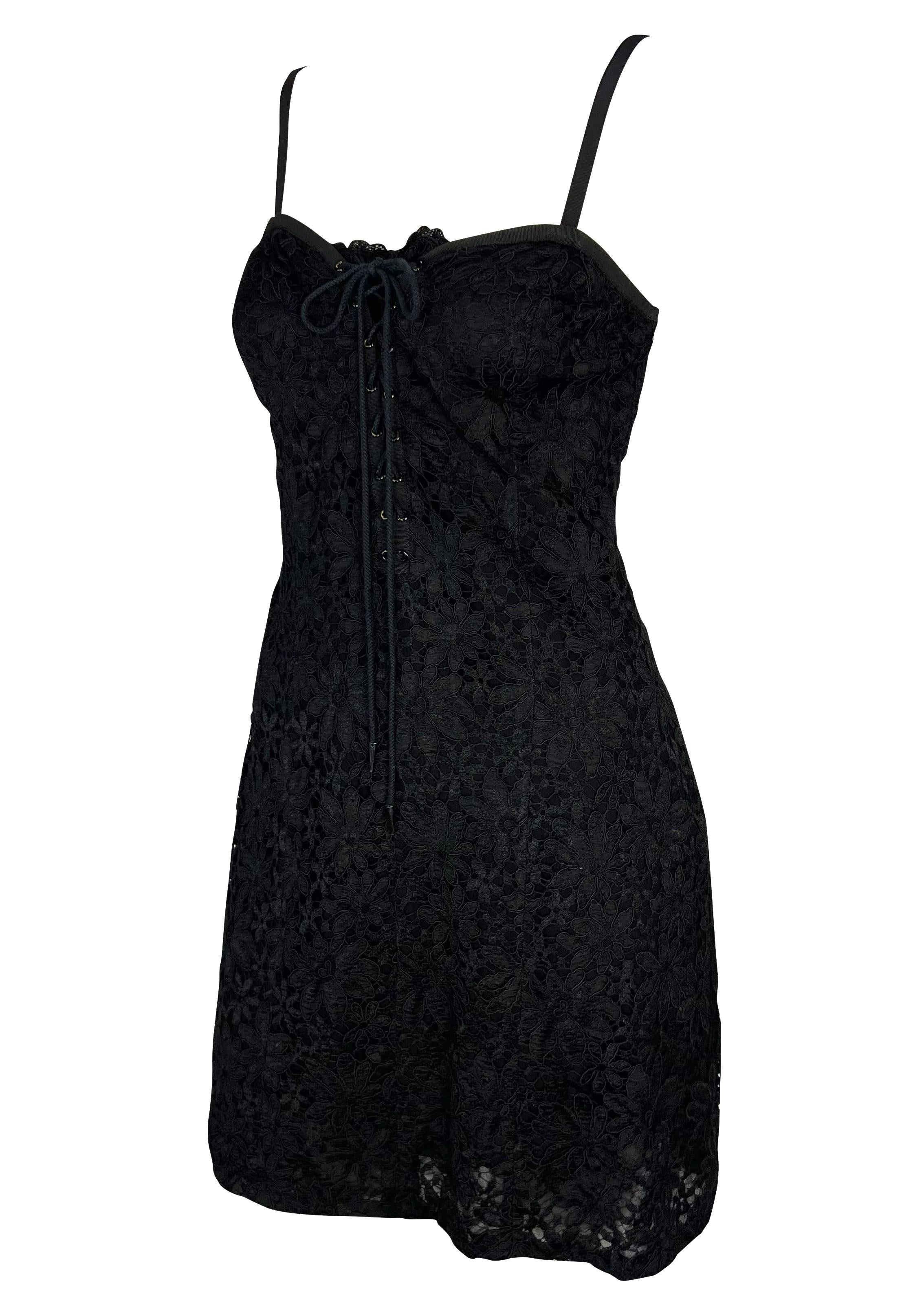Early 1990s Yves Saint Laurent Rive Gauche Lace-Up Black Sheer Lace Mini Dress