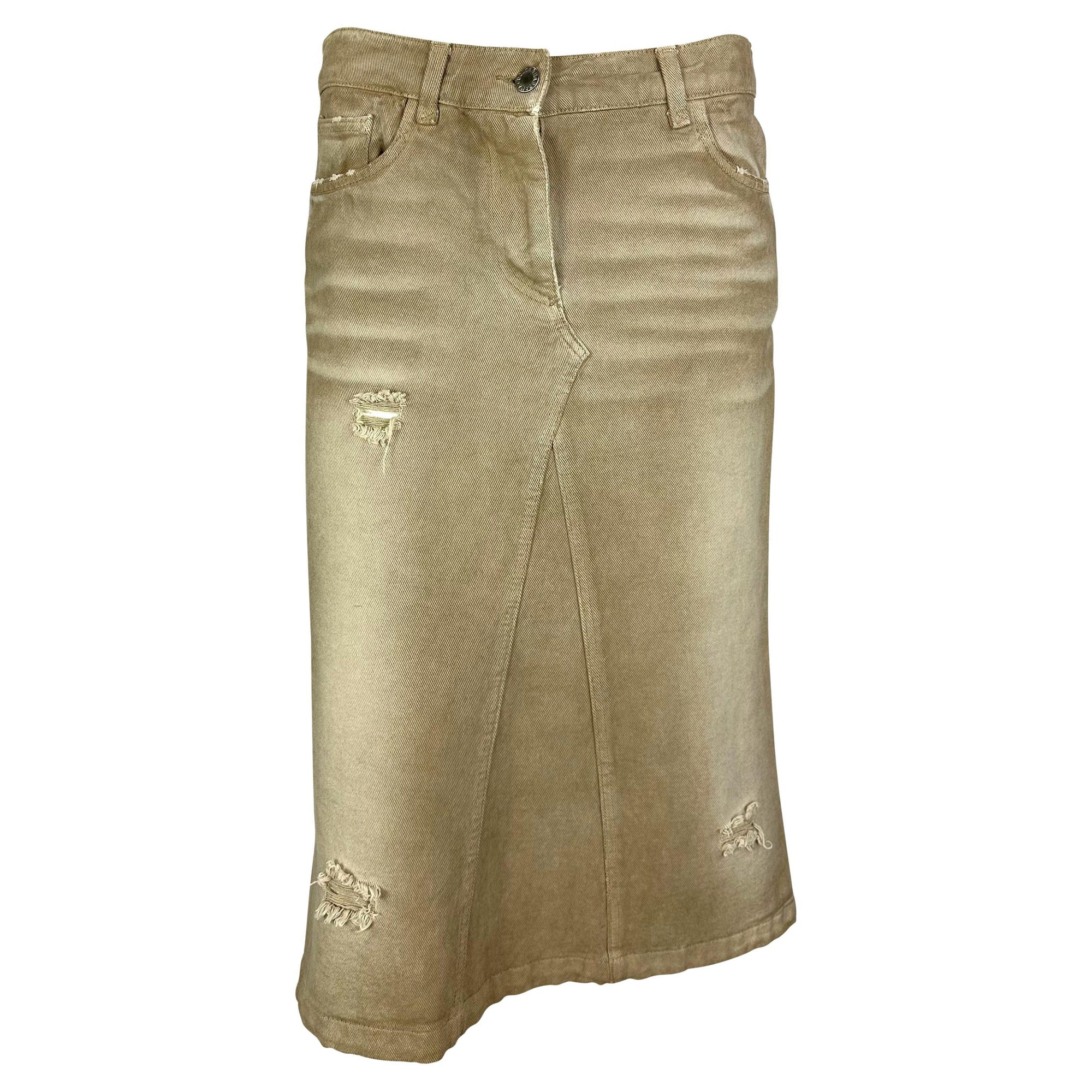 Early 2000s Dolce & Gabbana Beige Distressed Denim Mid-Length Skirt
