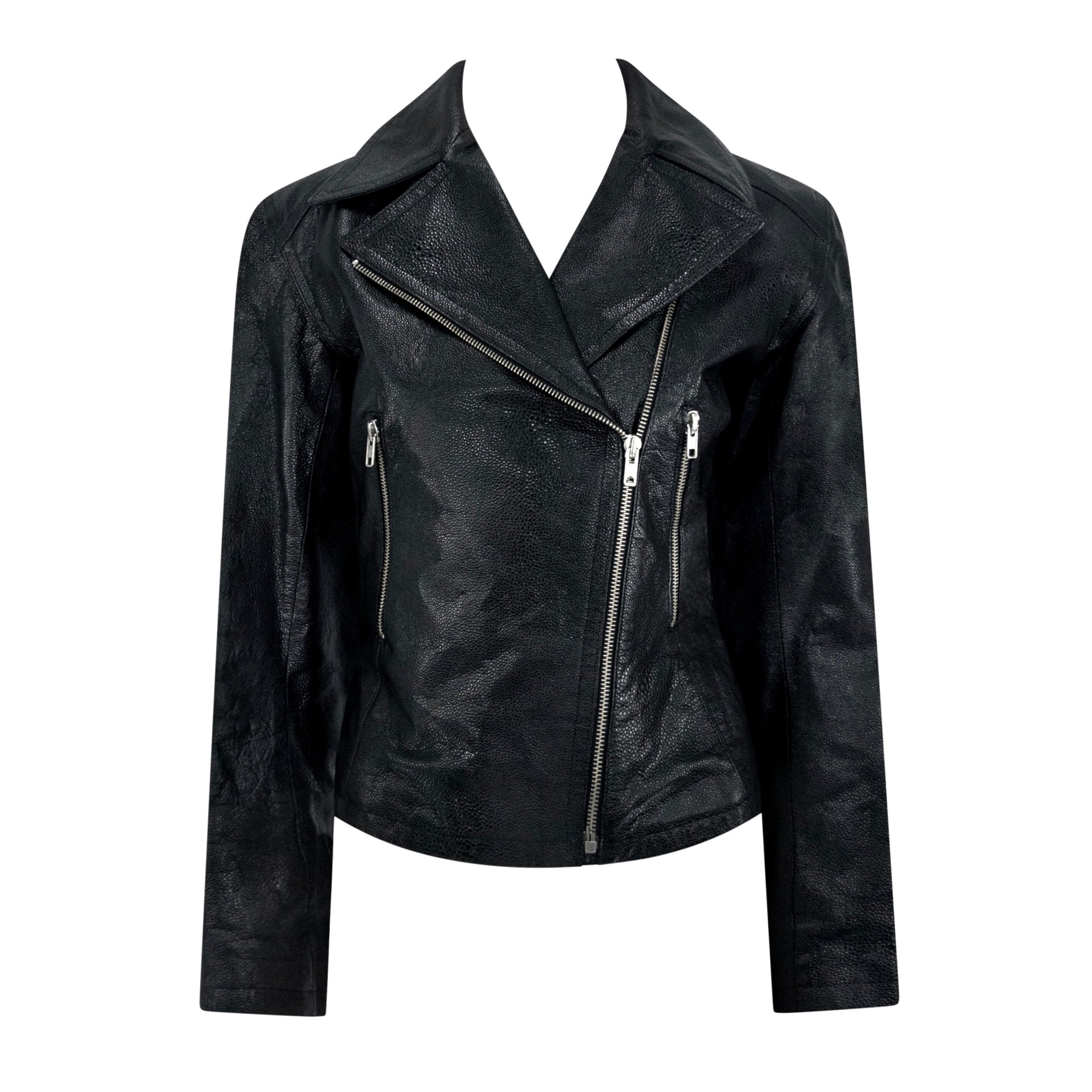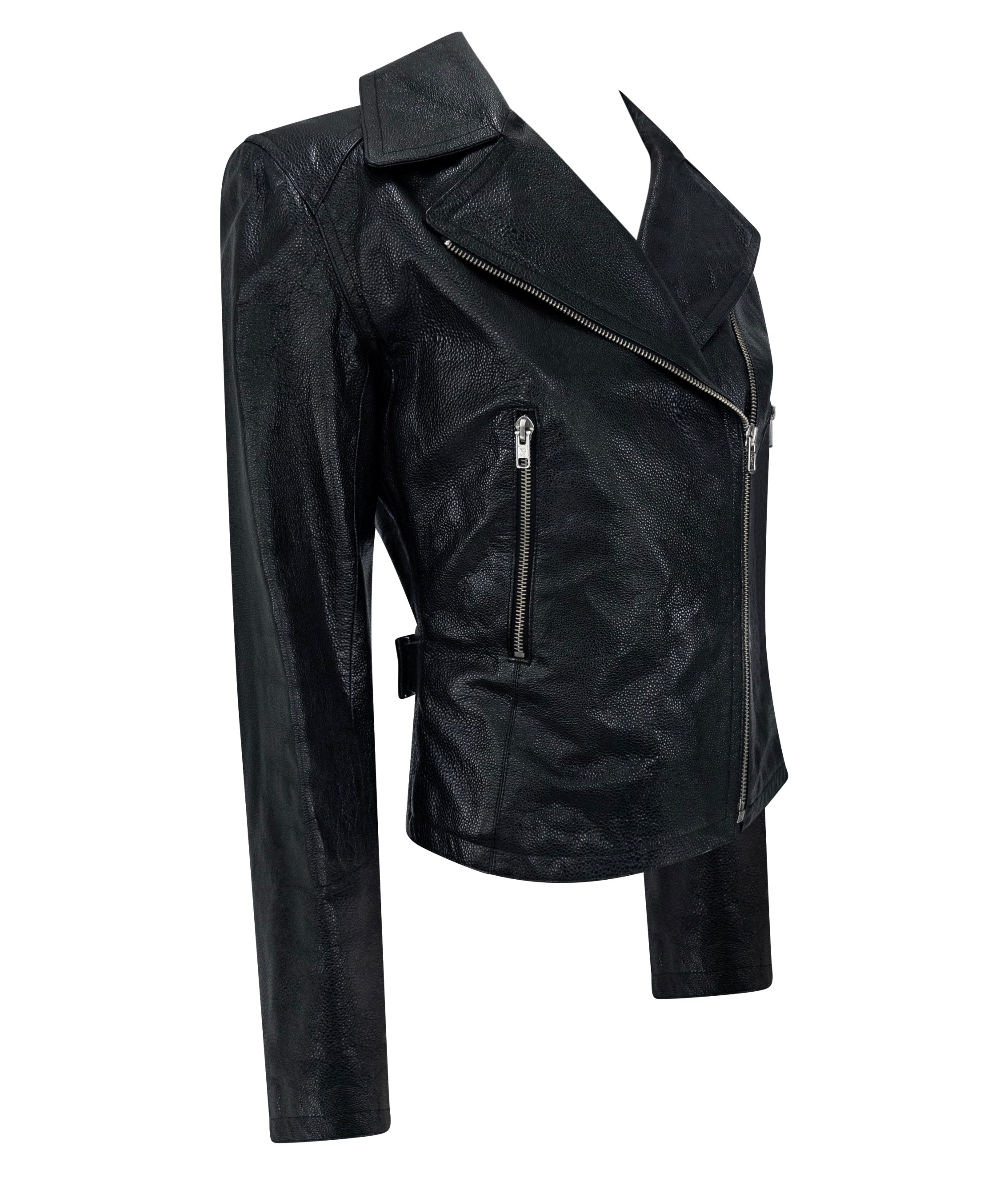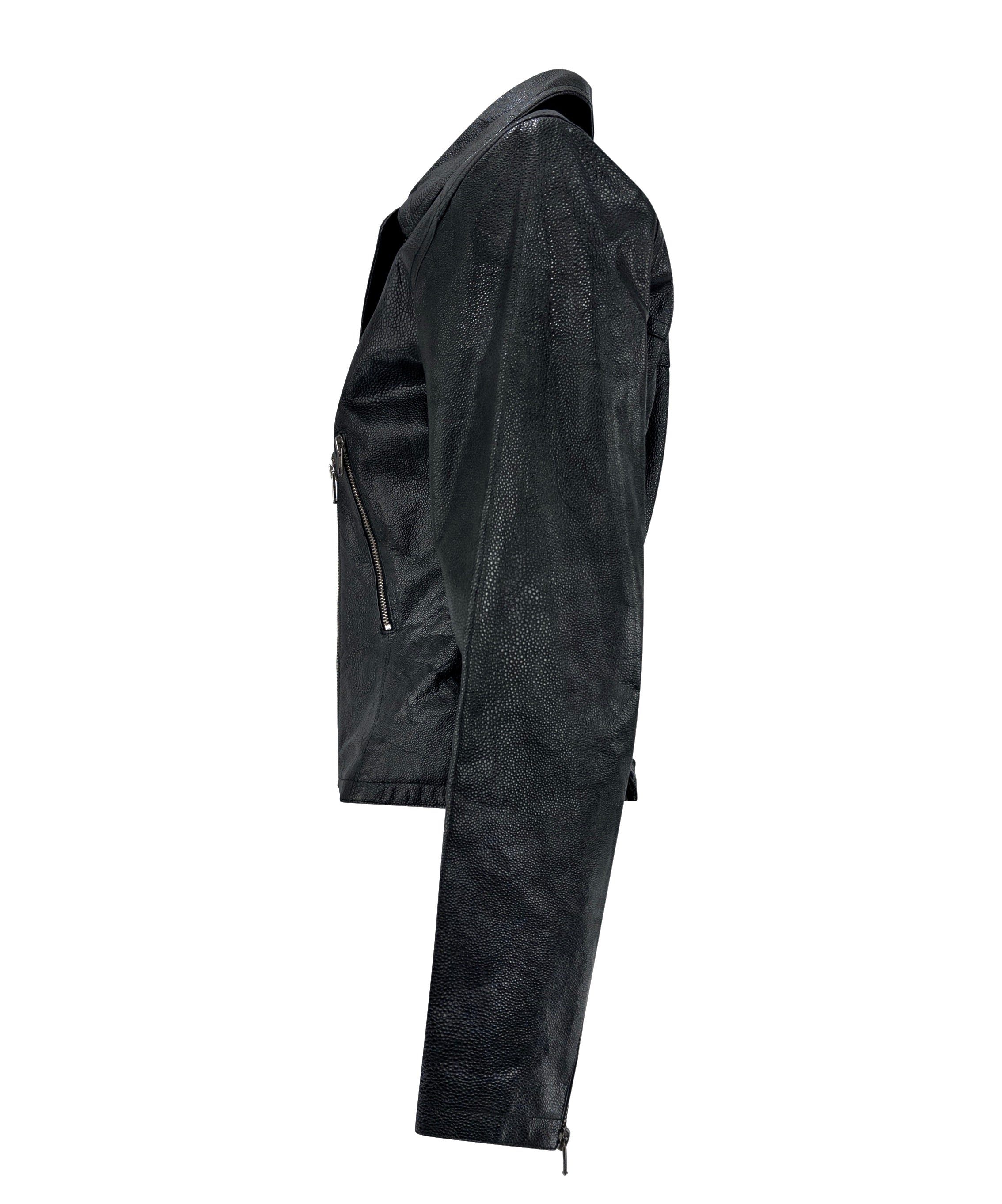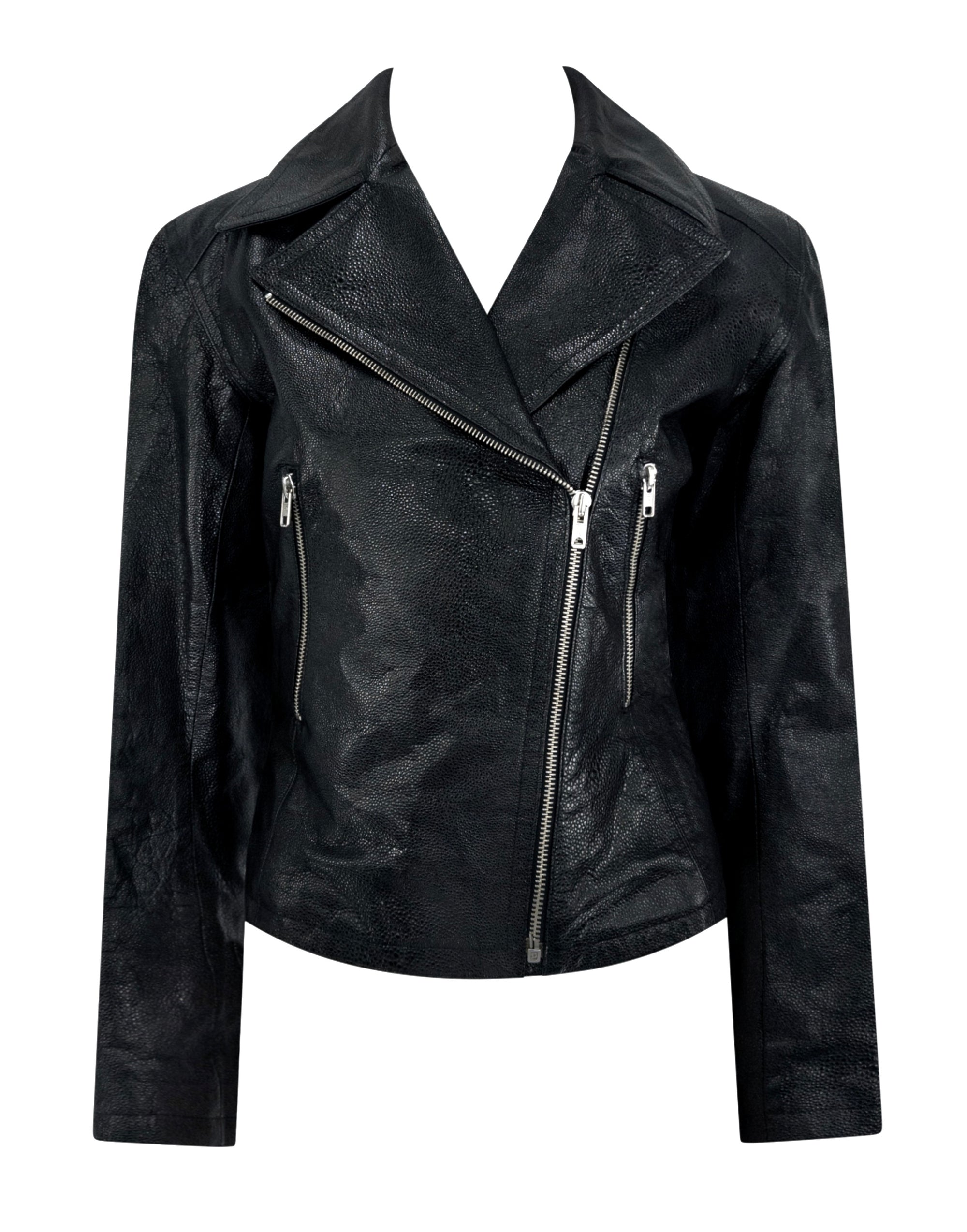 F/W 1990 Azzedine Alaïa Black Shagreen Embossed Leather Moto Jacket