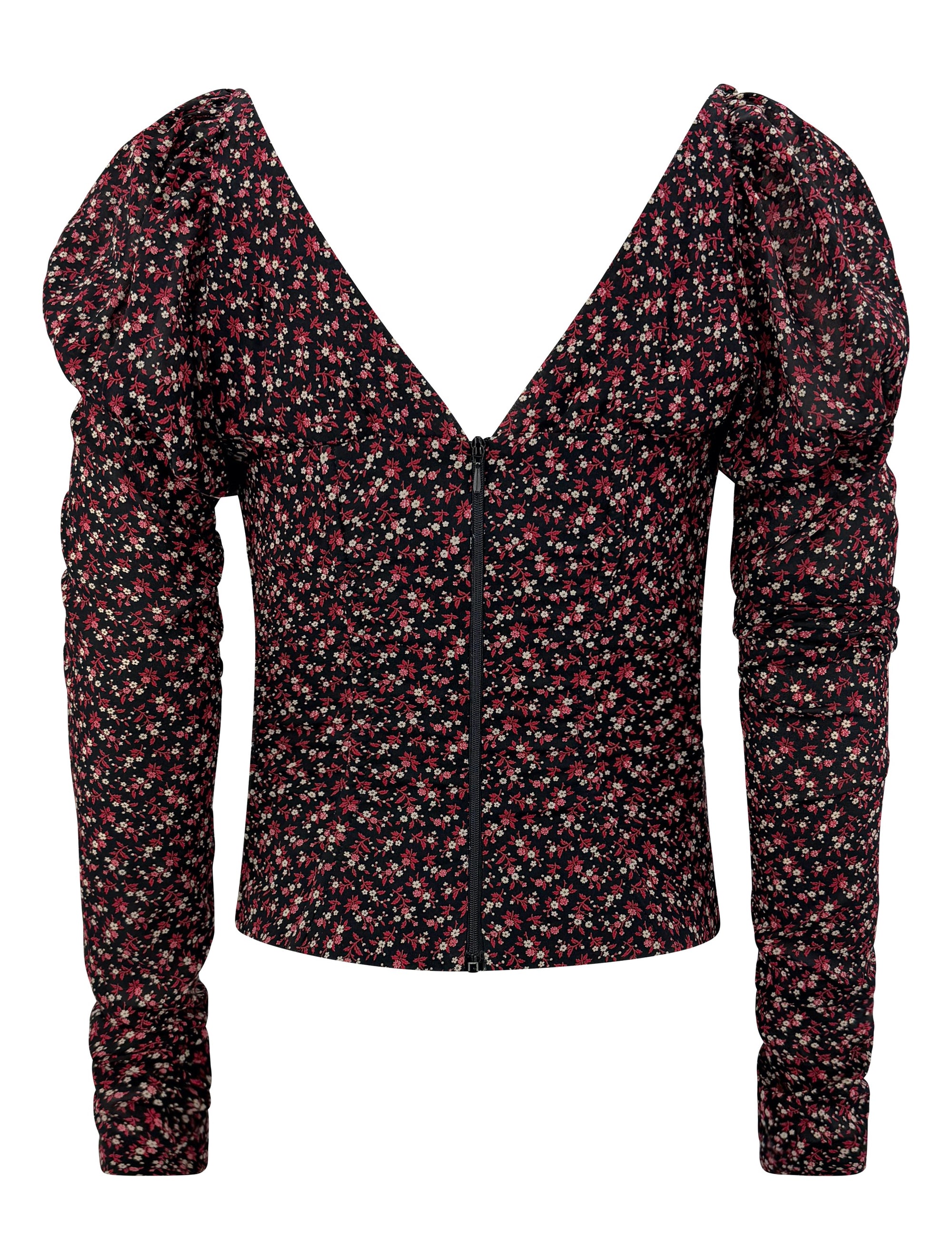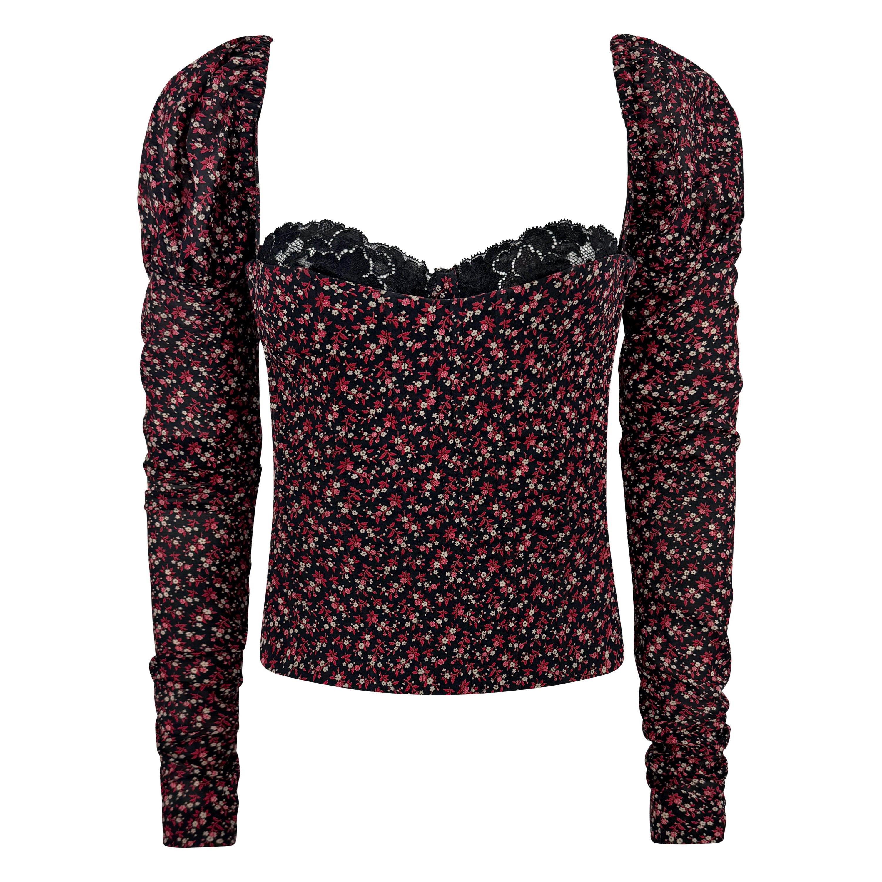 F/W 2001 Dolce & Gabbana Runway Black Red Floral Corset Boned Bustier Long Sleeve Top