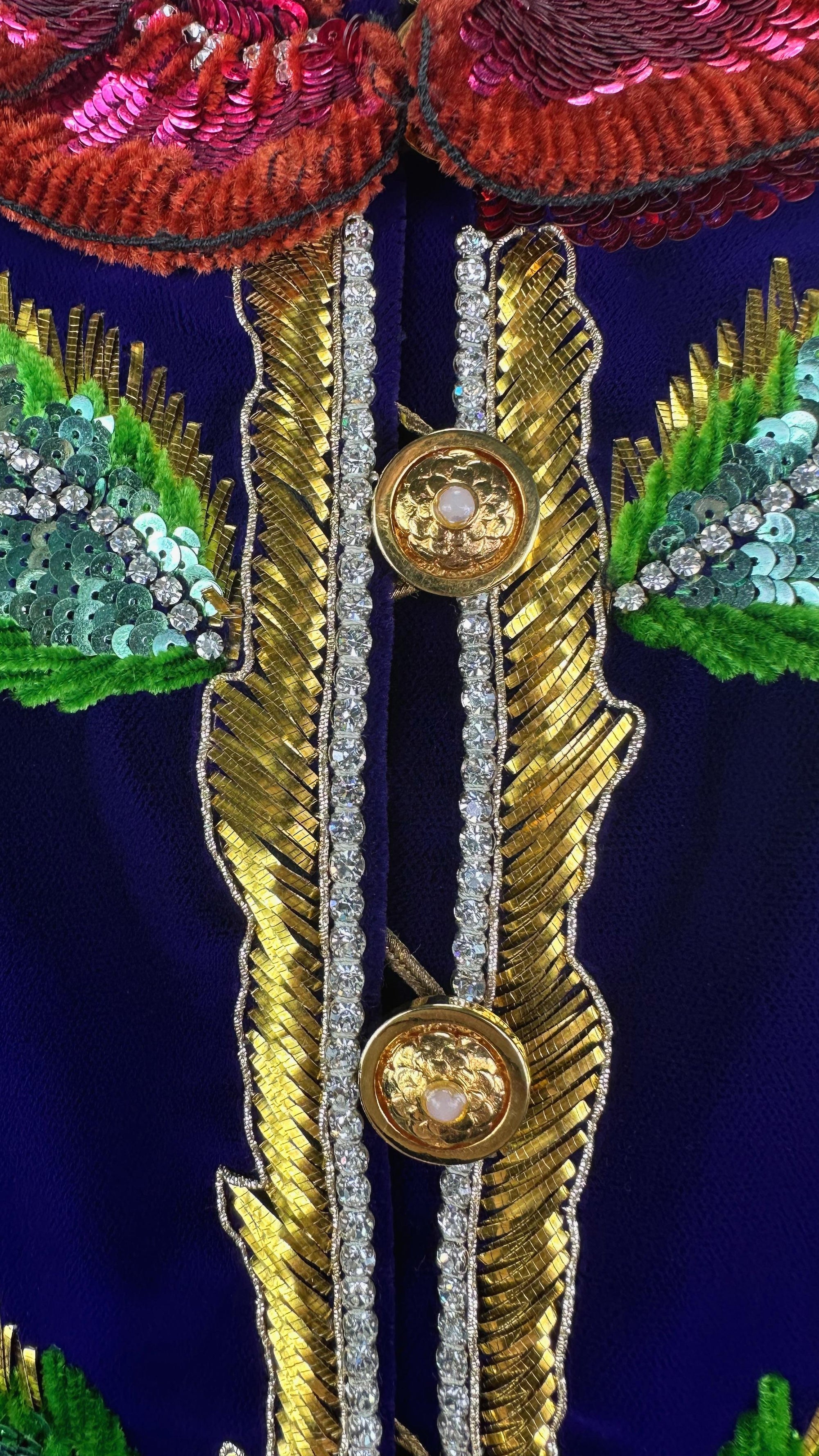 Radiant under light, the sculptural floral motif appears to bloom from the surface of the velvet, showcasing couture craftsmanship at its finest. A museum-worthy creation, an identical jacket is held in the collection of The Metropolitan Museum of Art, affirming its status as one of Saint Laurent’s most significant works.