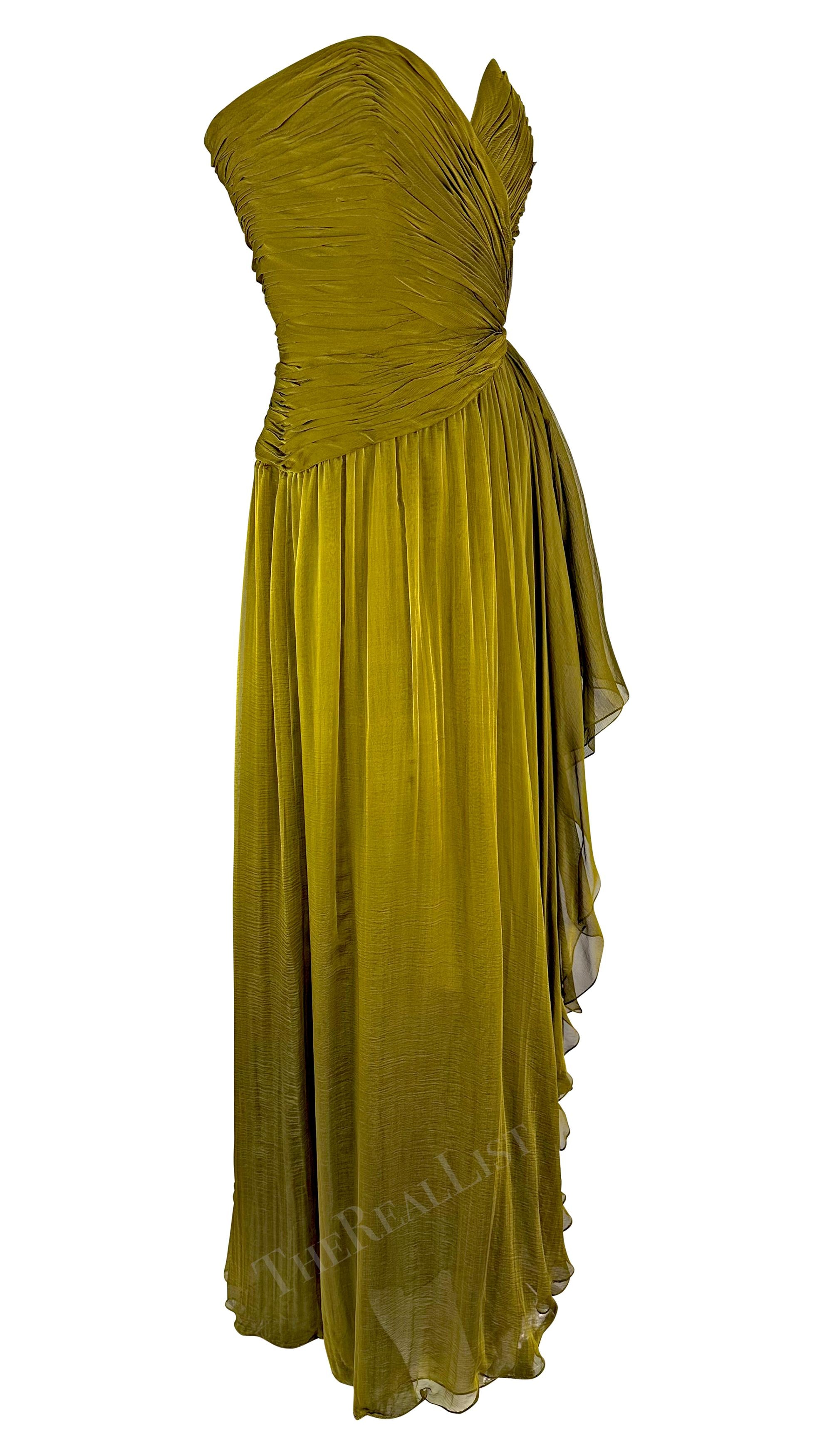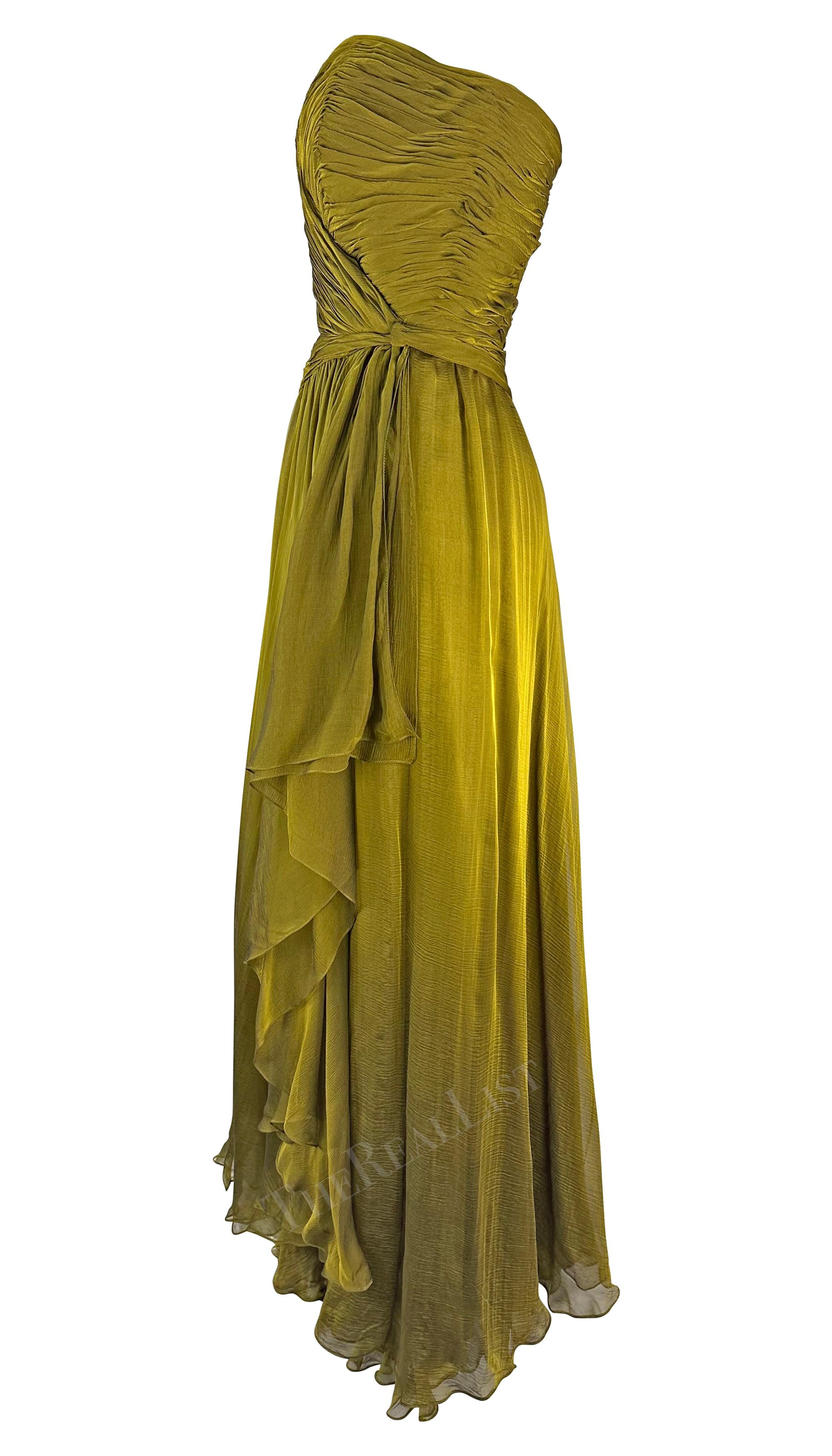 F/W 1989 Oscar de la Renta Runway Chartreuse Chiffon Strapless Gown