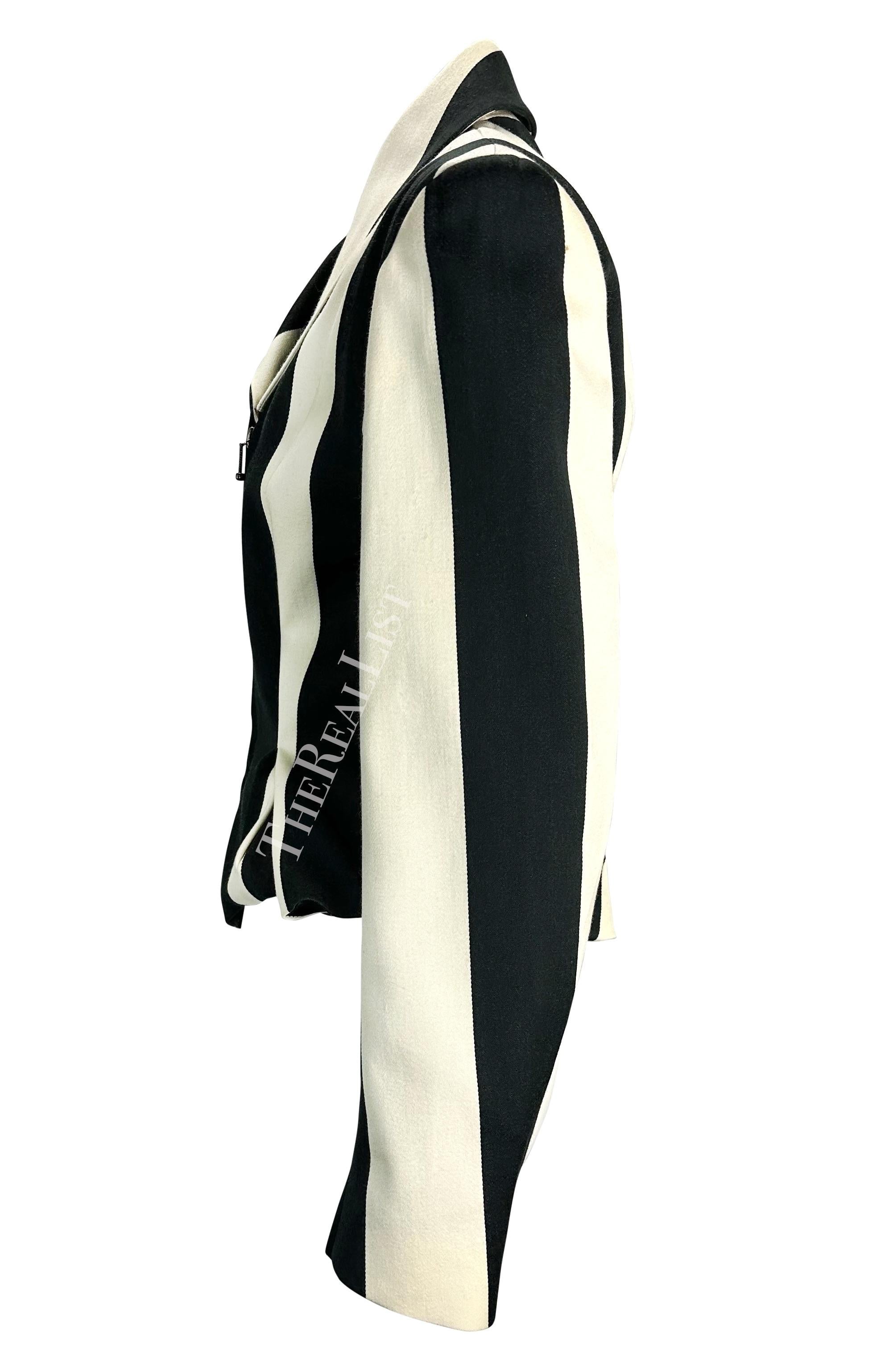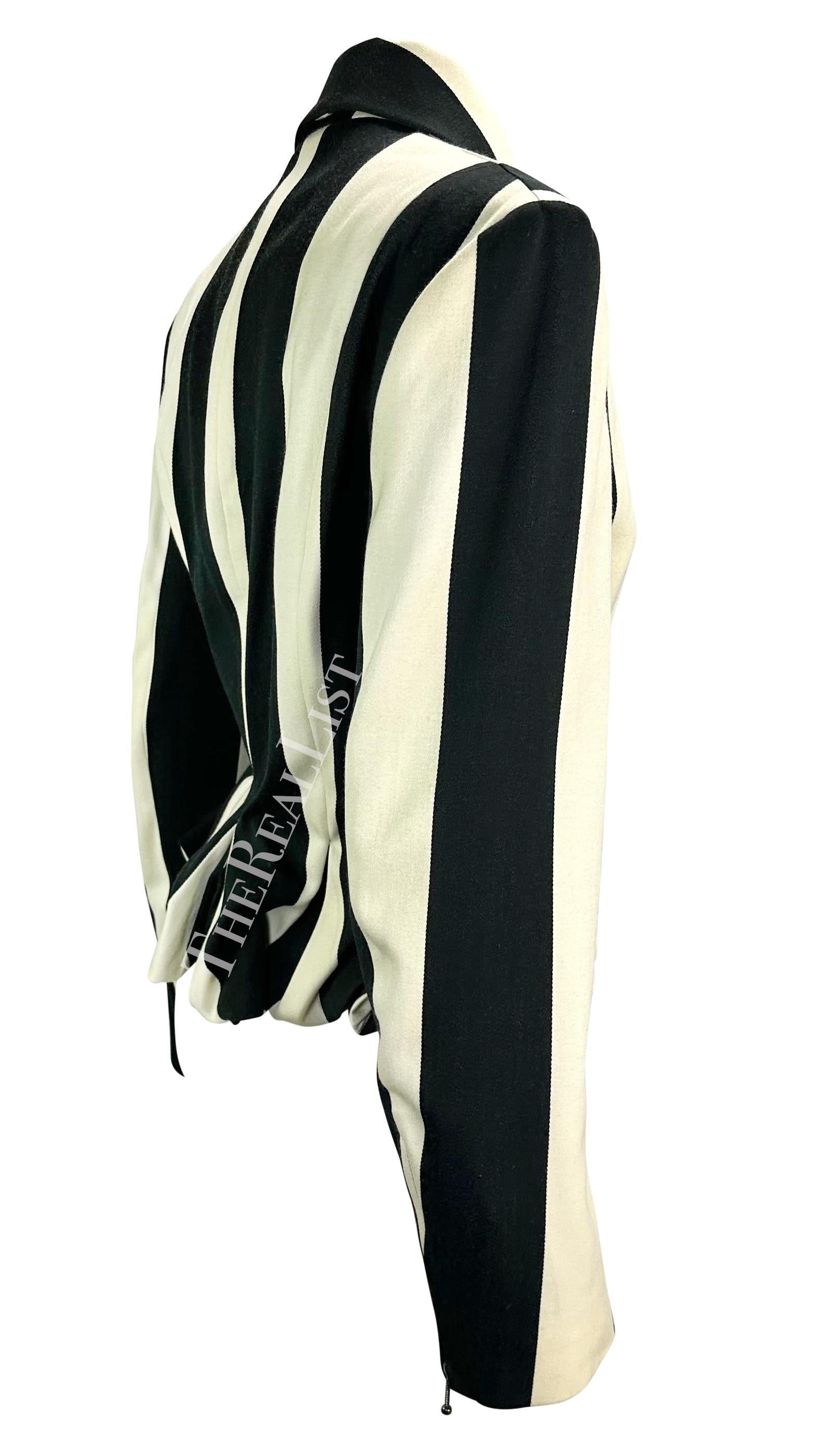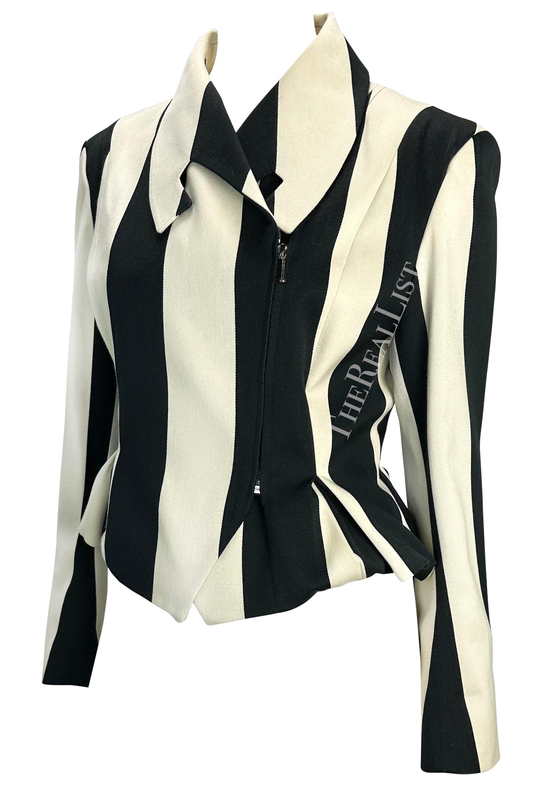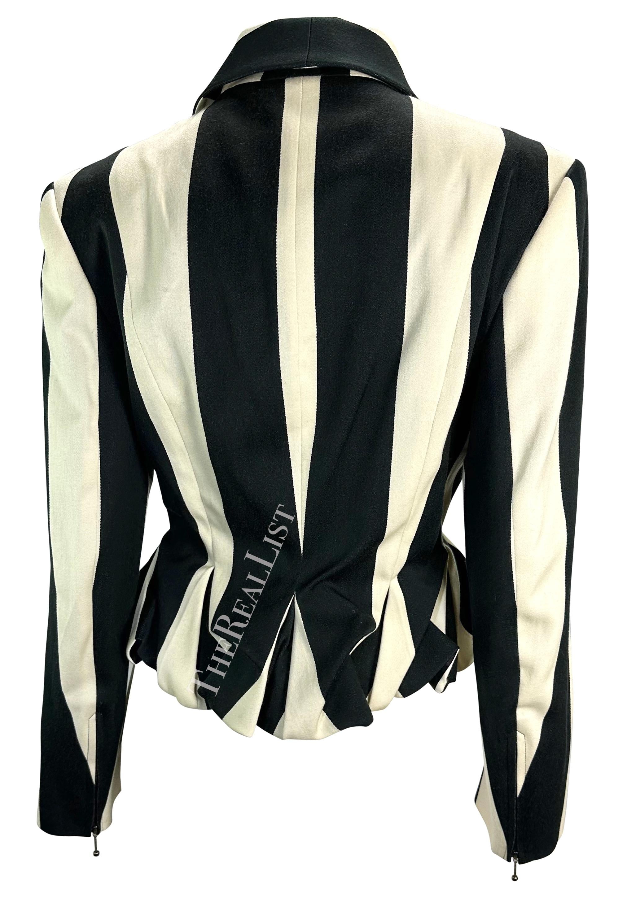 F/W 1990 John Galliano Runway Black White Striped Zip Bustle Jacket