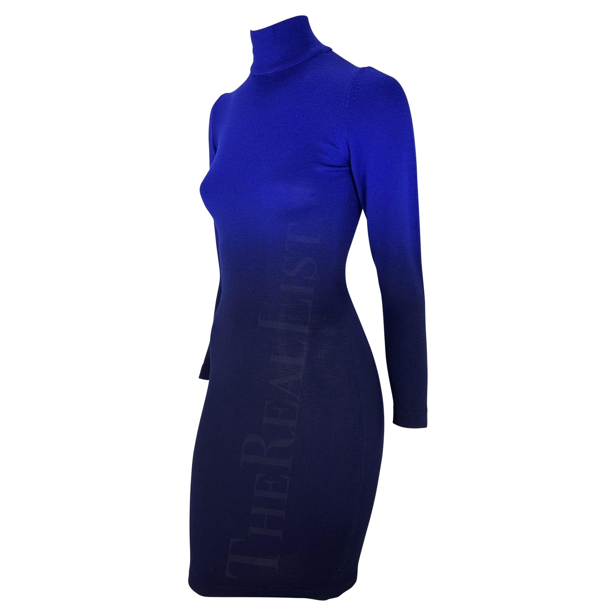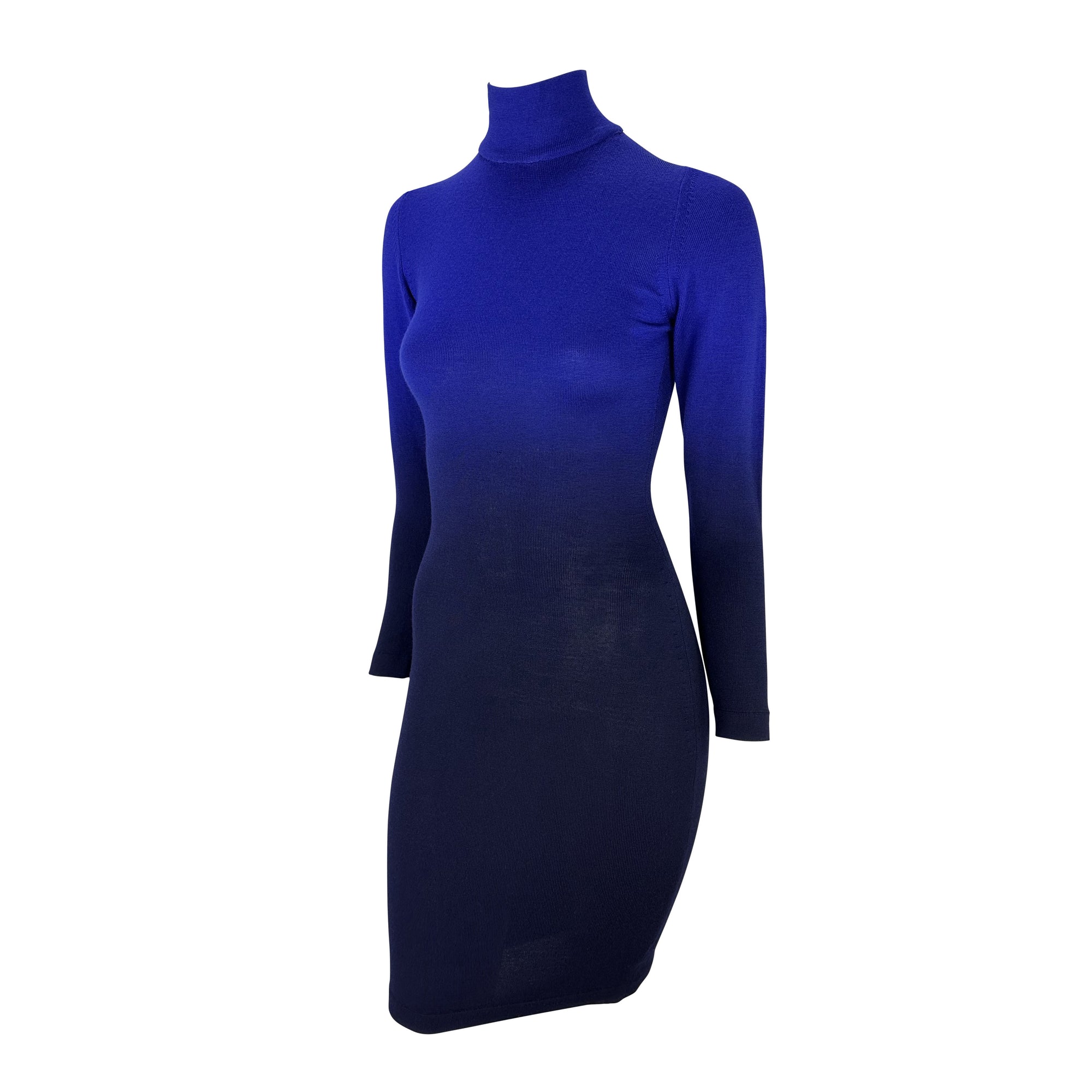 F/W 1992 Claude Montana Runway Blue Ombré Knit Dress