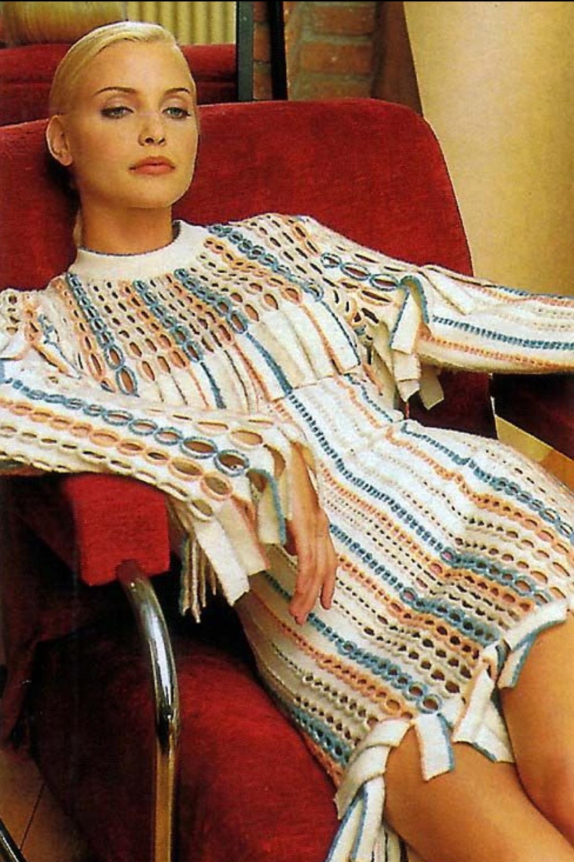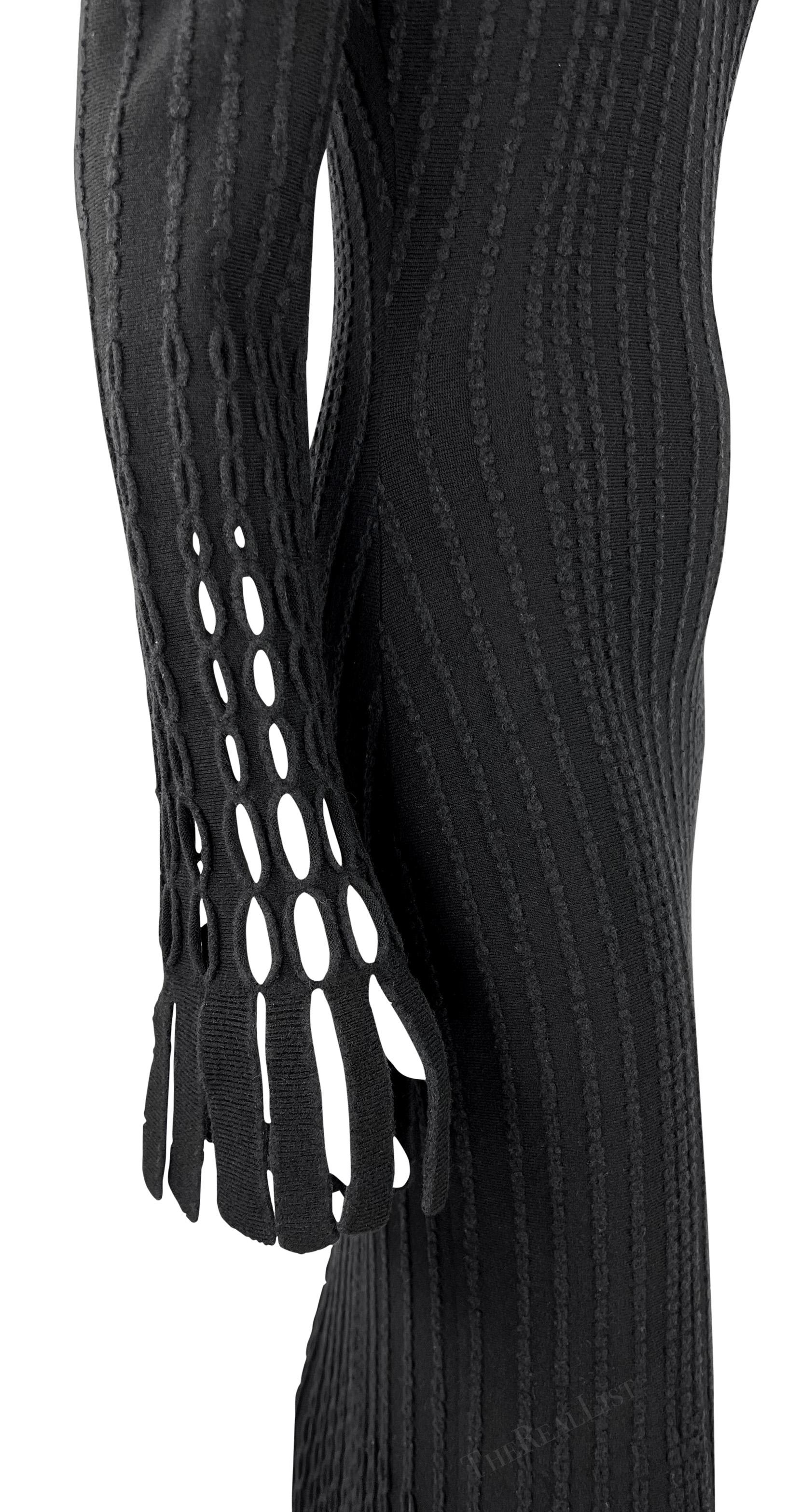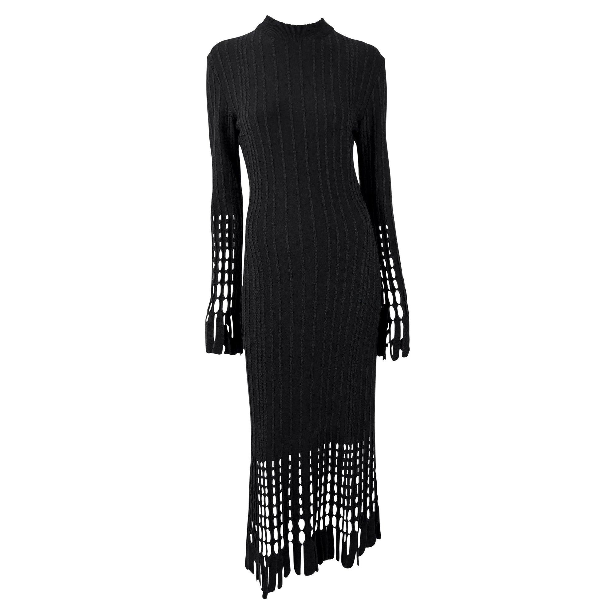 F/W 1993 Azzedine Alaïa Black Eyelet Fringe Knit Bodycon Full-Length Dress