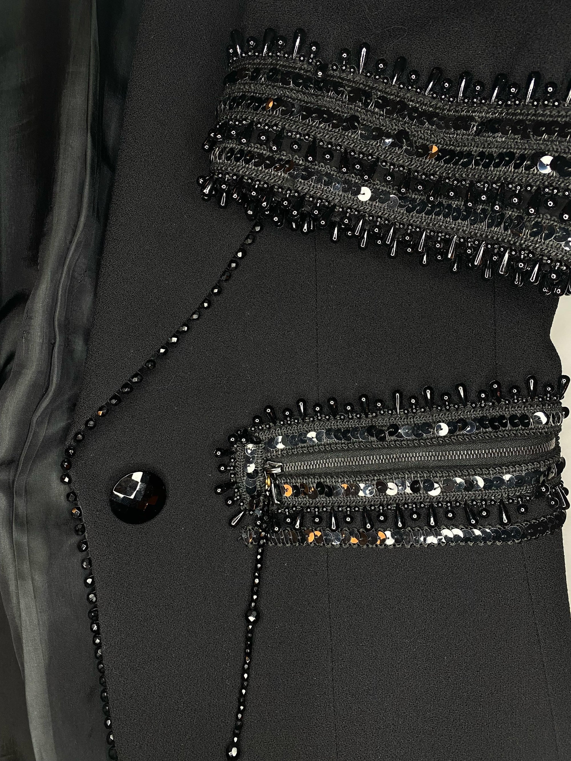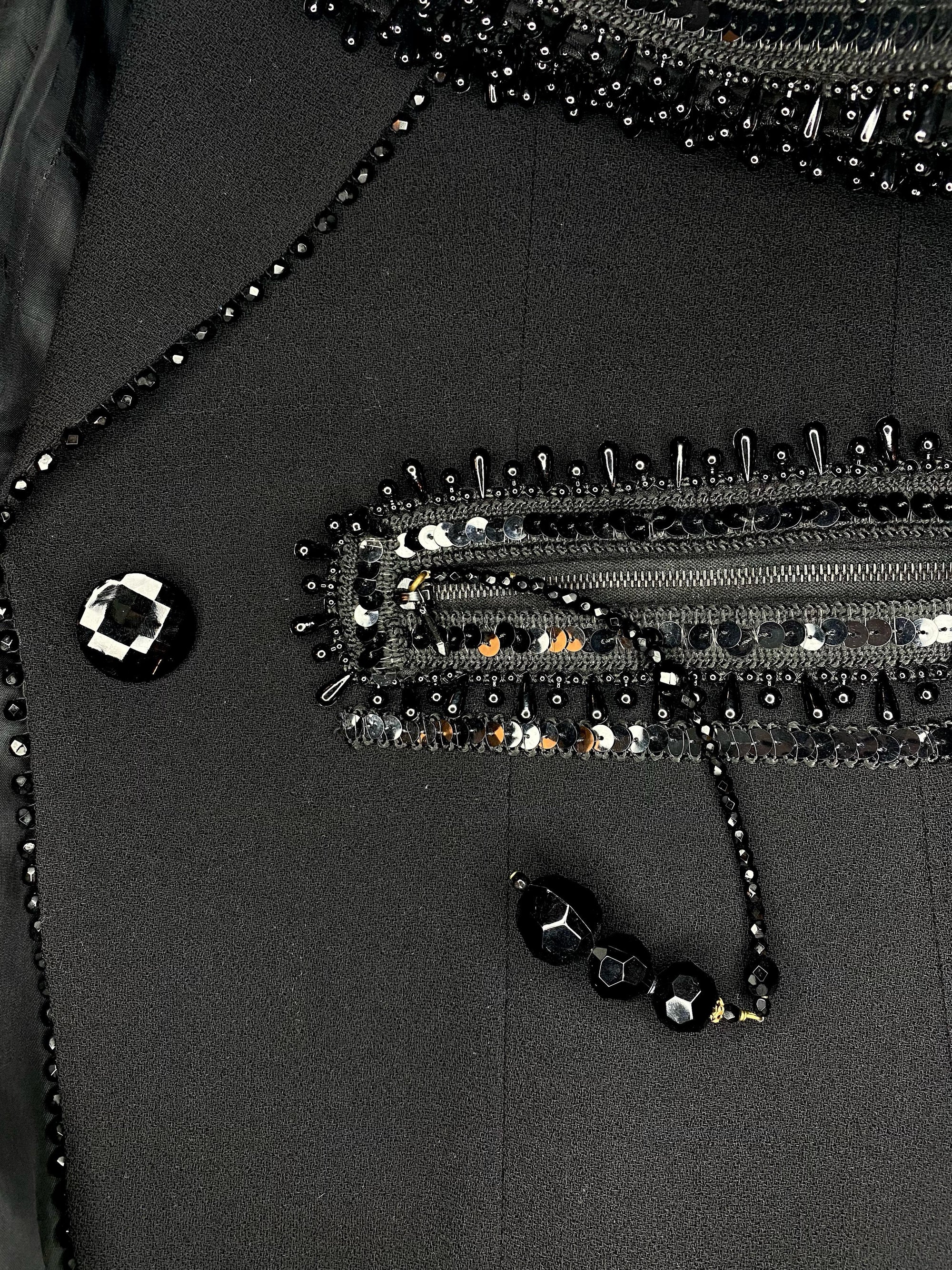 F/W 1993 Christian Dior by Gianfranco Ferré Runway Black Bead Sequin Skirt Suit