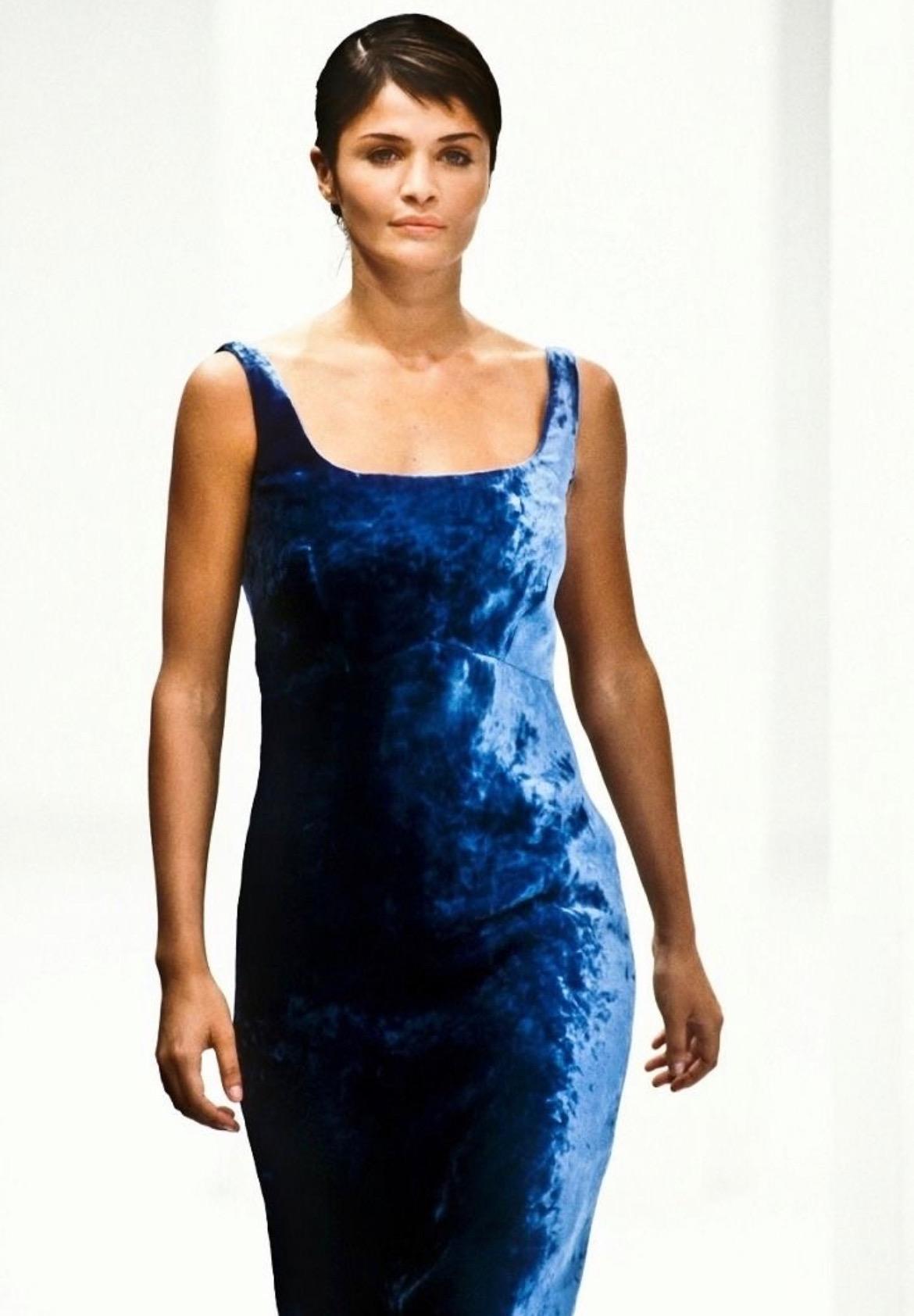 Presenting a gorgeous brown velvet Dolce and Gabbana gown. From the Fall/Winter 1994 collection, the blue version of this fabulous gown debuted on the season's runway, modeled by Helena Christensen. This effortlessly chic dress features a wide scoop neckline and flared cut and is constructed entirely of luxurious and soft brown velvet. Check out our storefront for other vintage Dolce and Gabbana gems!