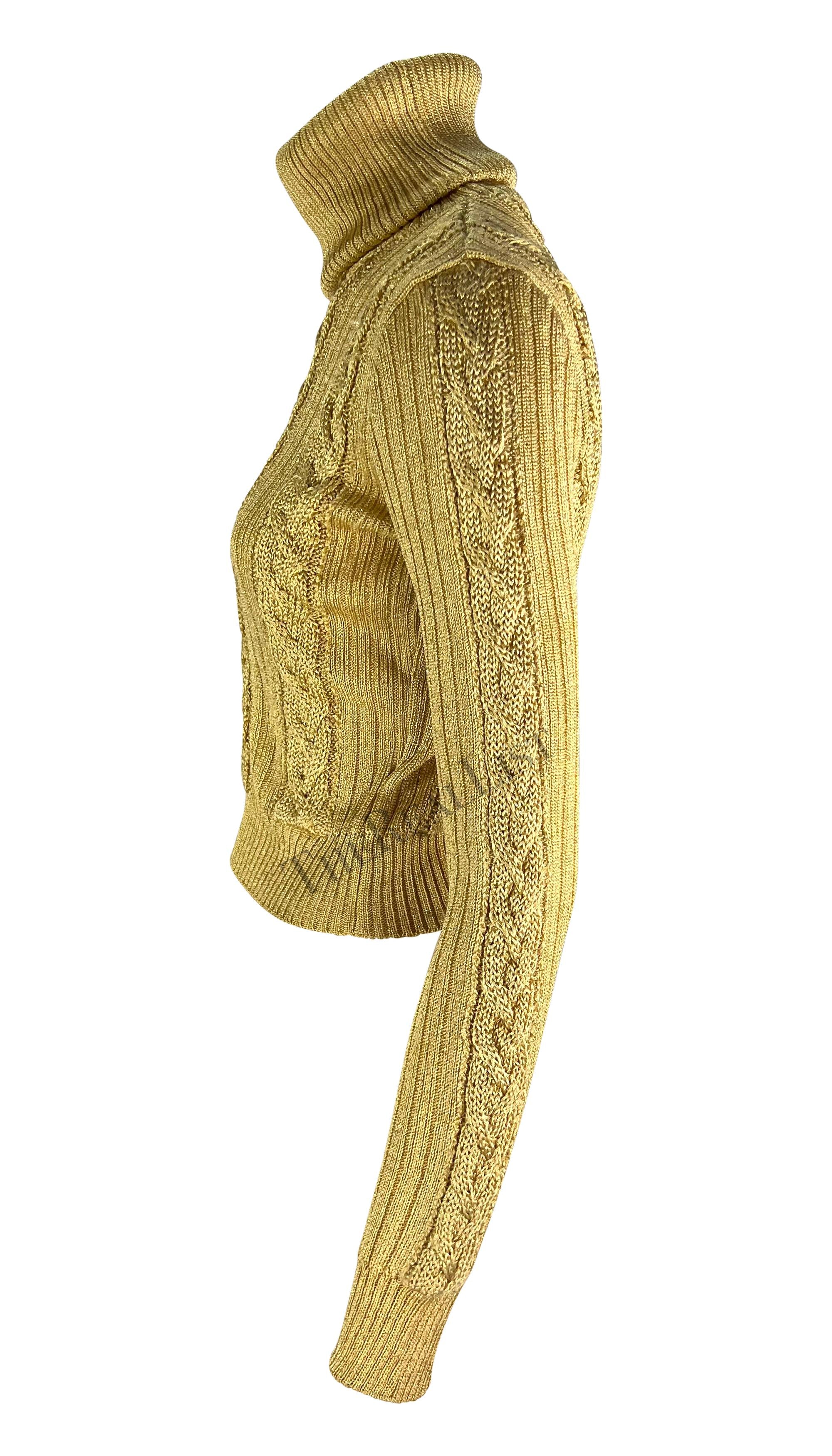 F/W 1994 Gianni Versace Ad Runway Gold Metallic Cable Knit Turtleneck Sweater