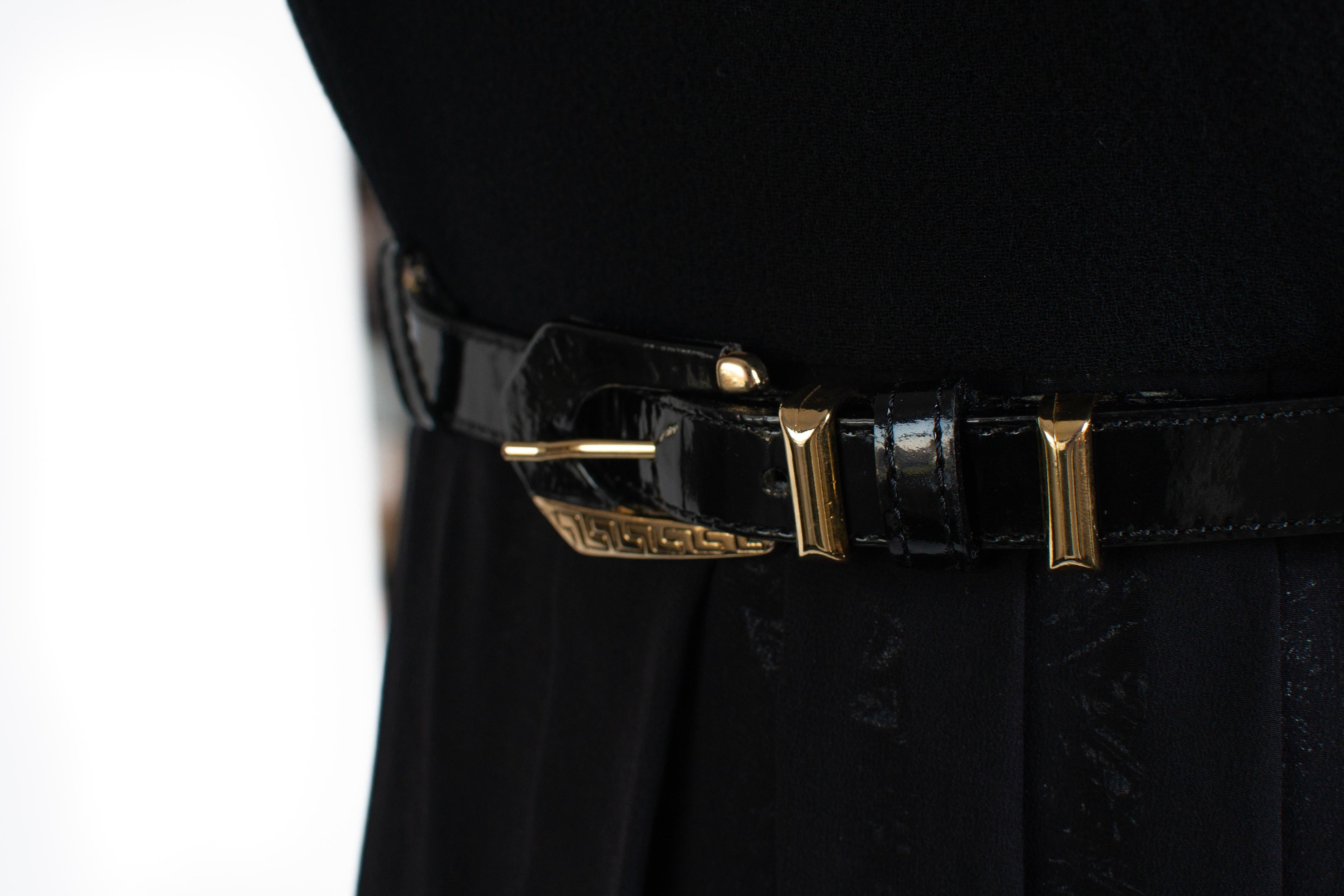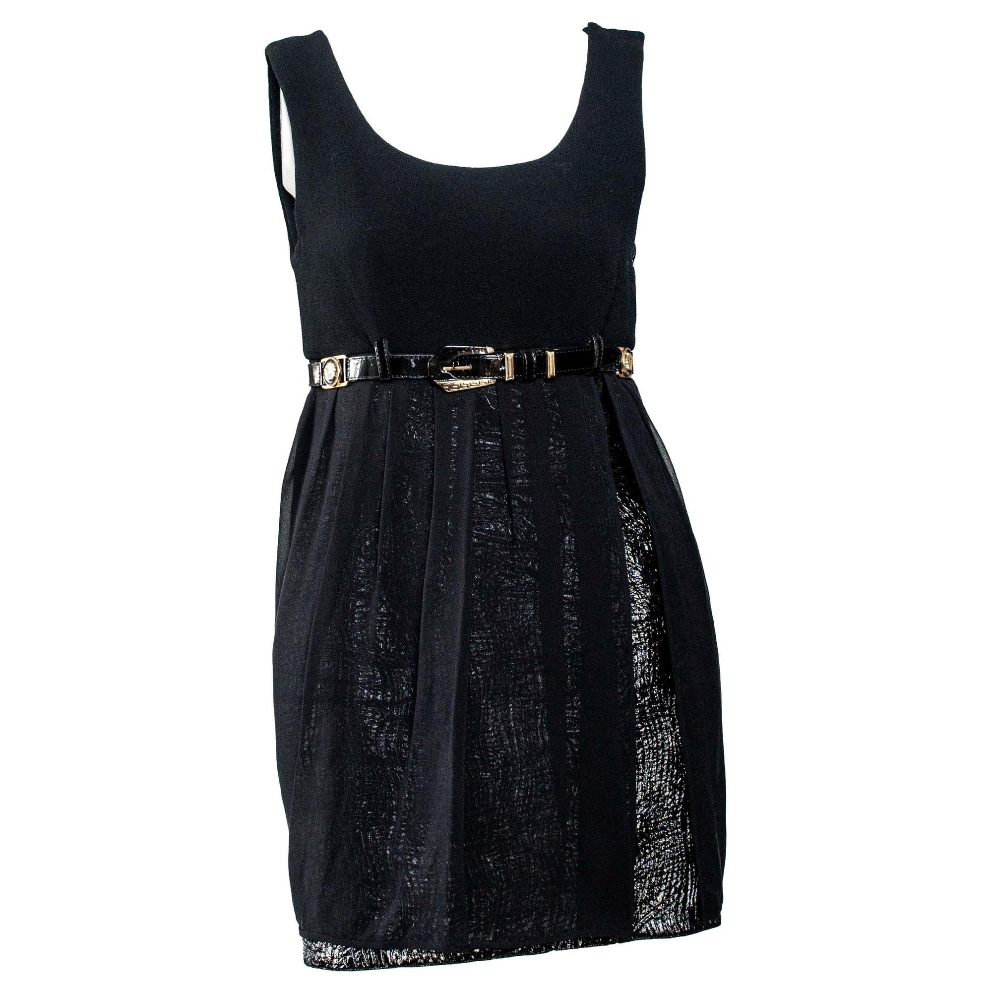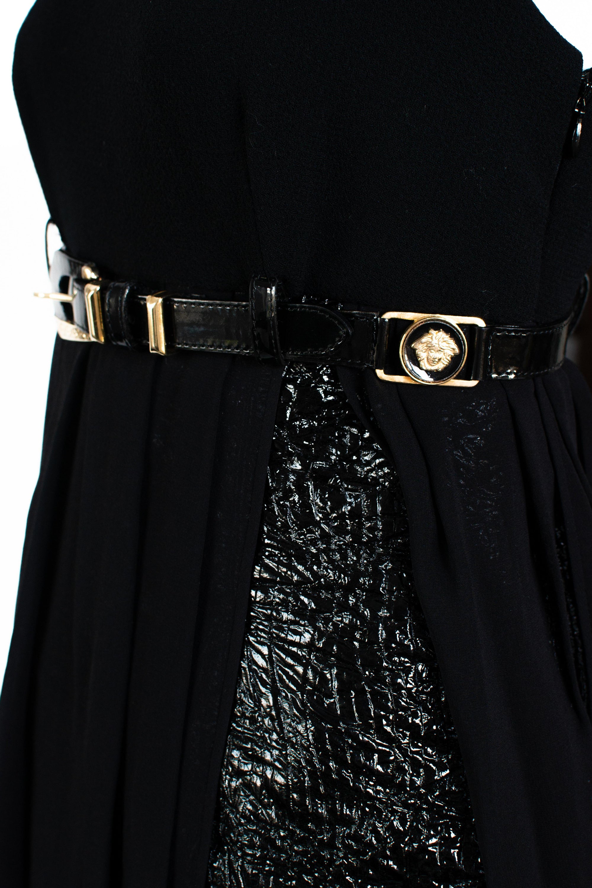 F/W 1994 Gianni Versace Patent Leather and Chiffon Mini Dress with Medusa Belt