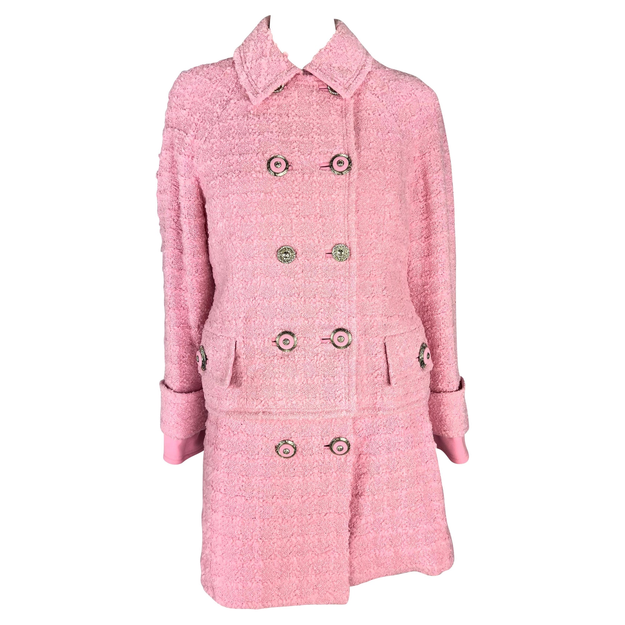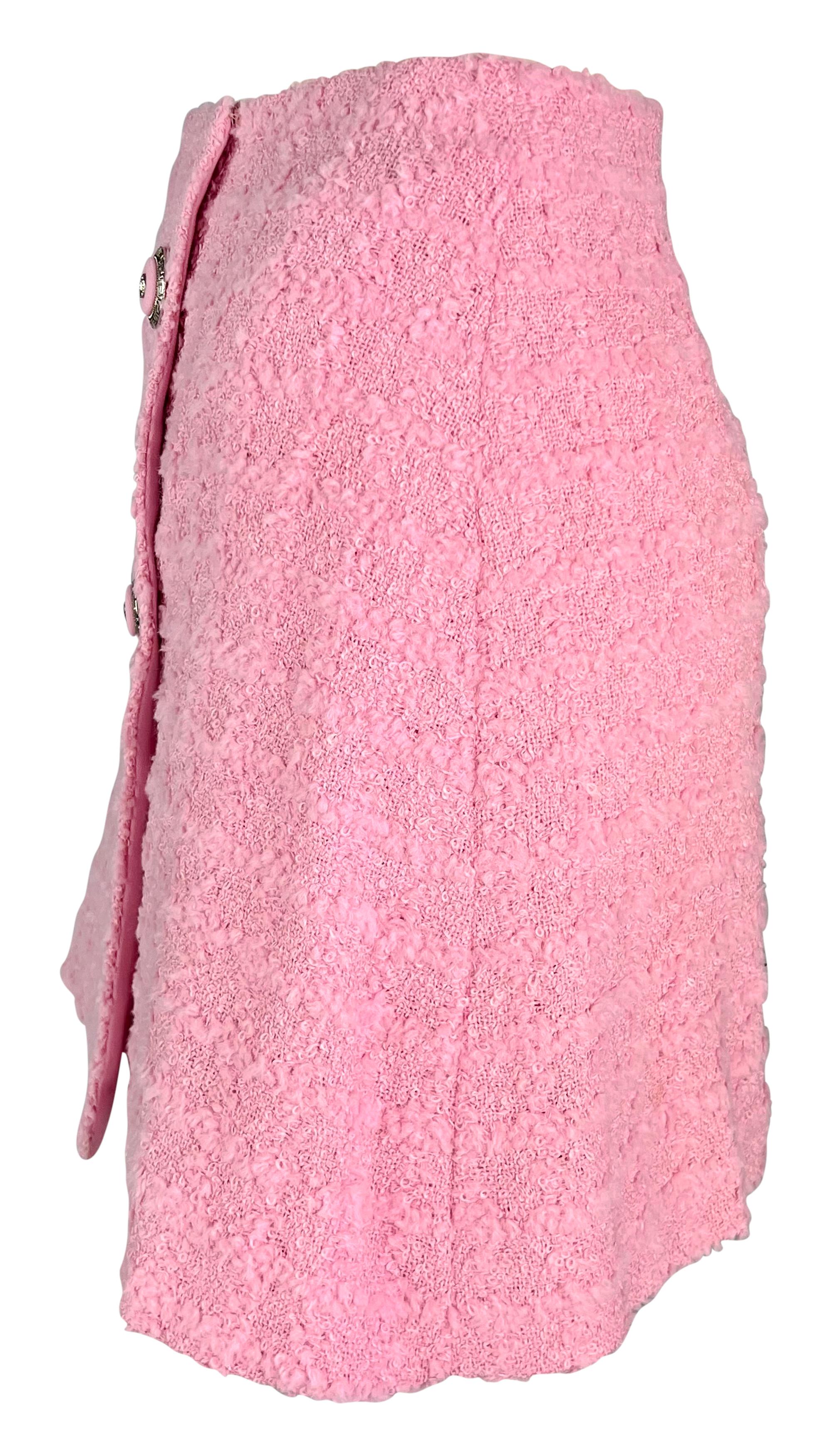 F/W 1994 Gianni Versace Runway Ad Pink Tweed Rhinestone Medusa Skirt Suit