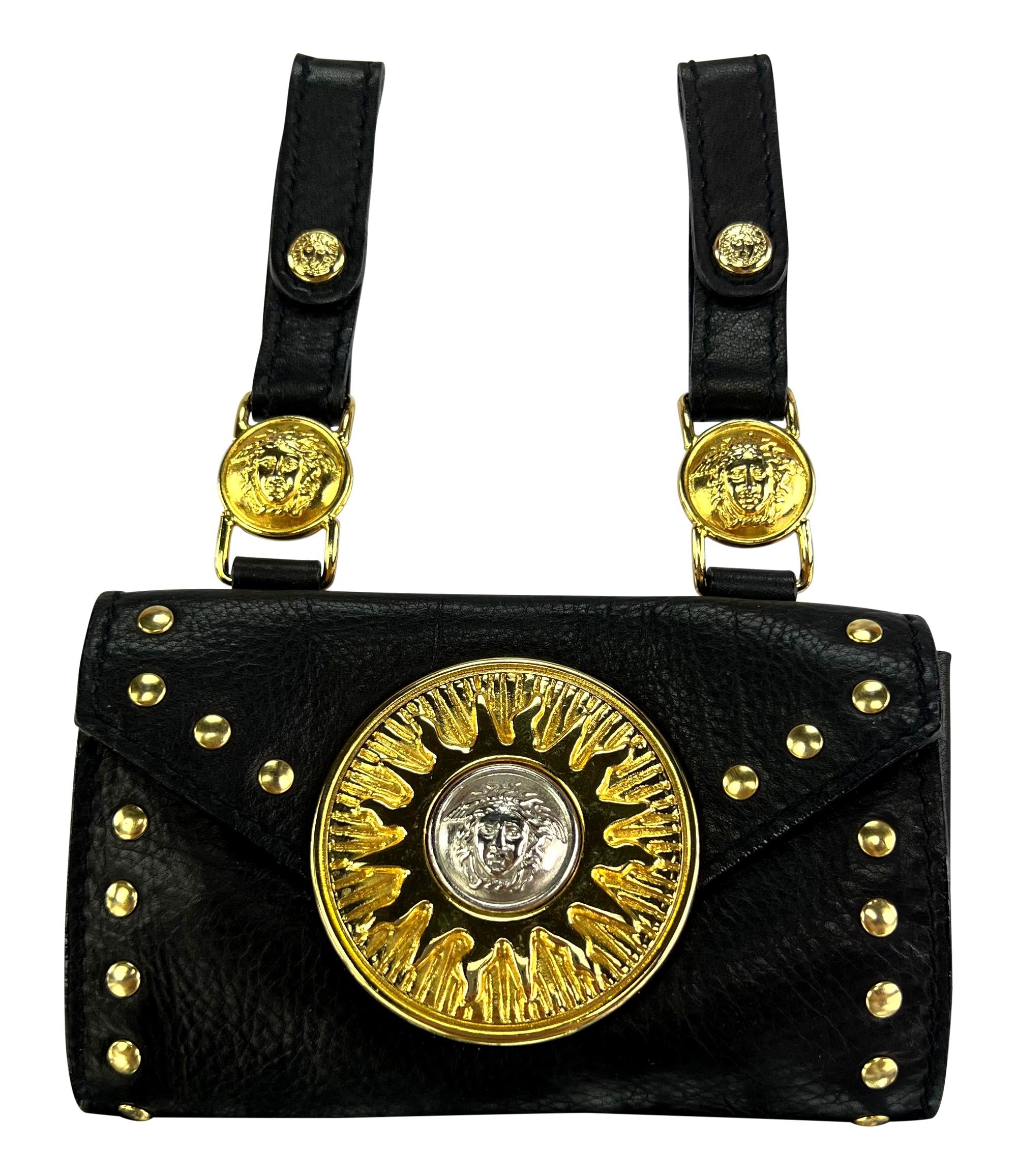 F/W 1994 Gianni Versace Studded Leather Silver Medusa Medallion Mini Belt Bag