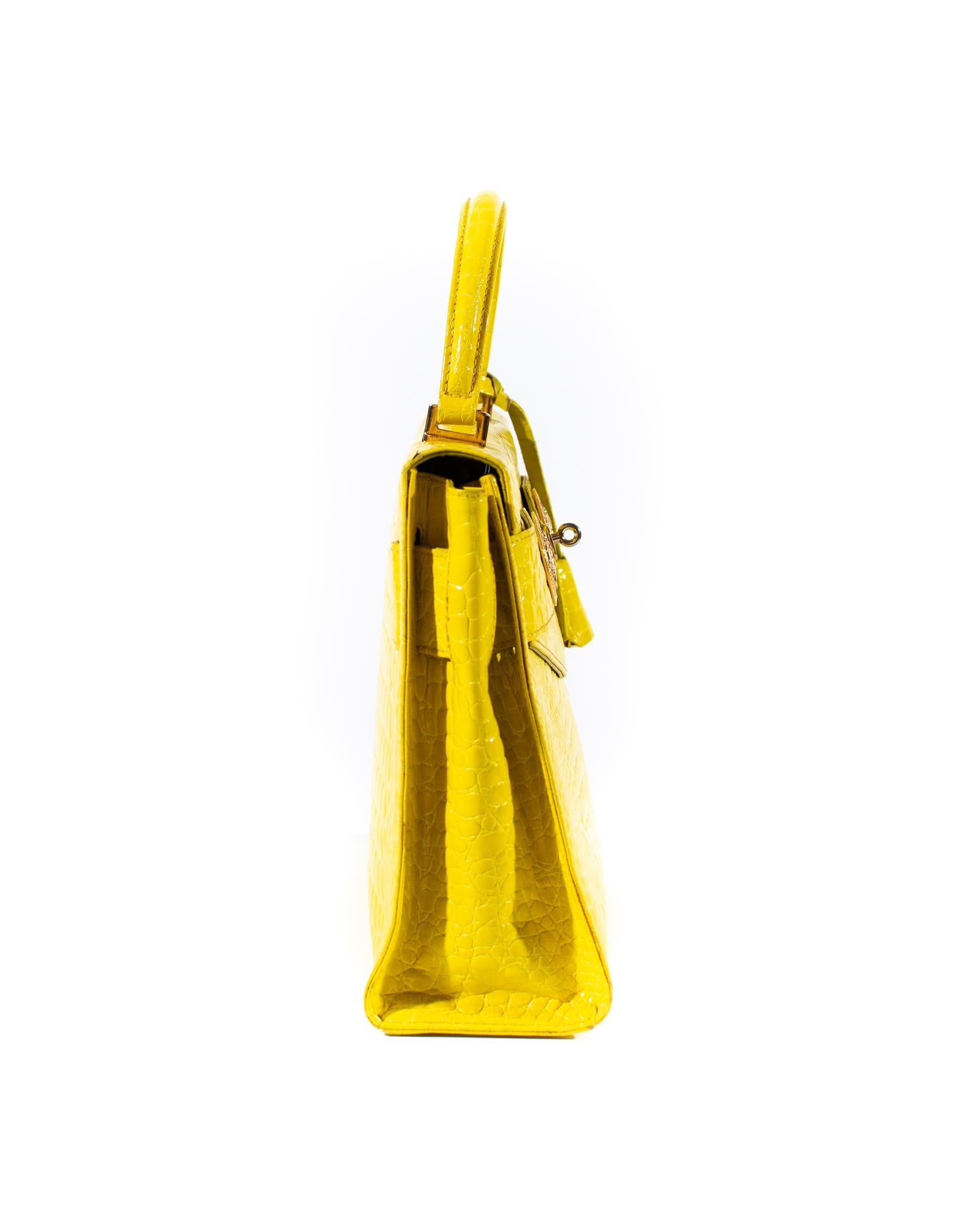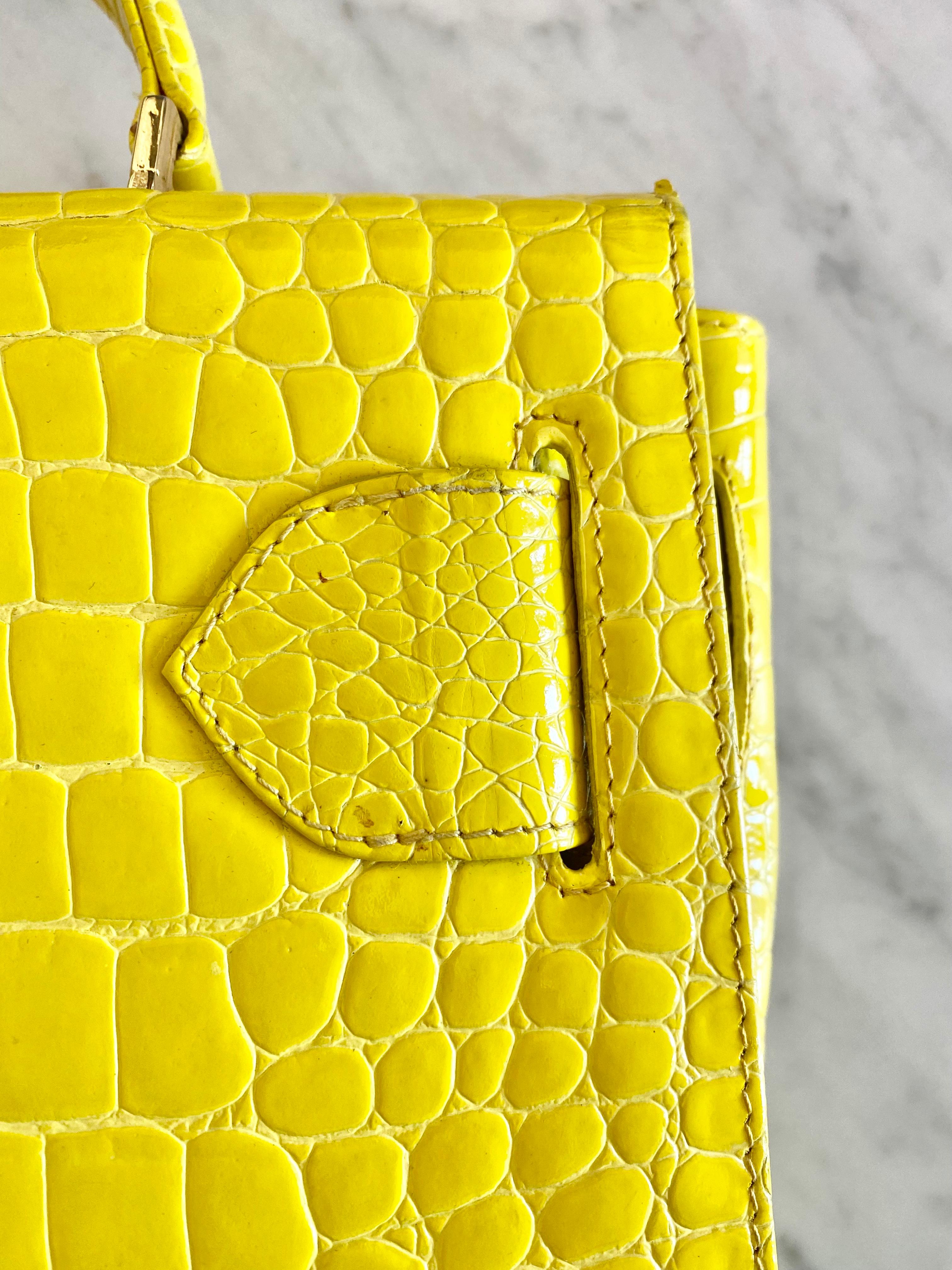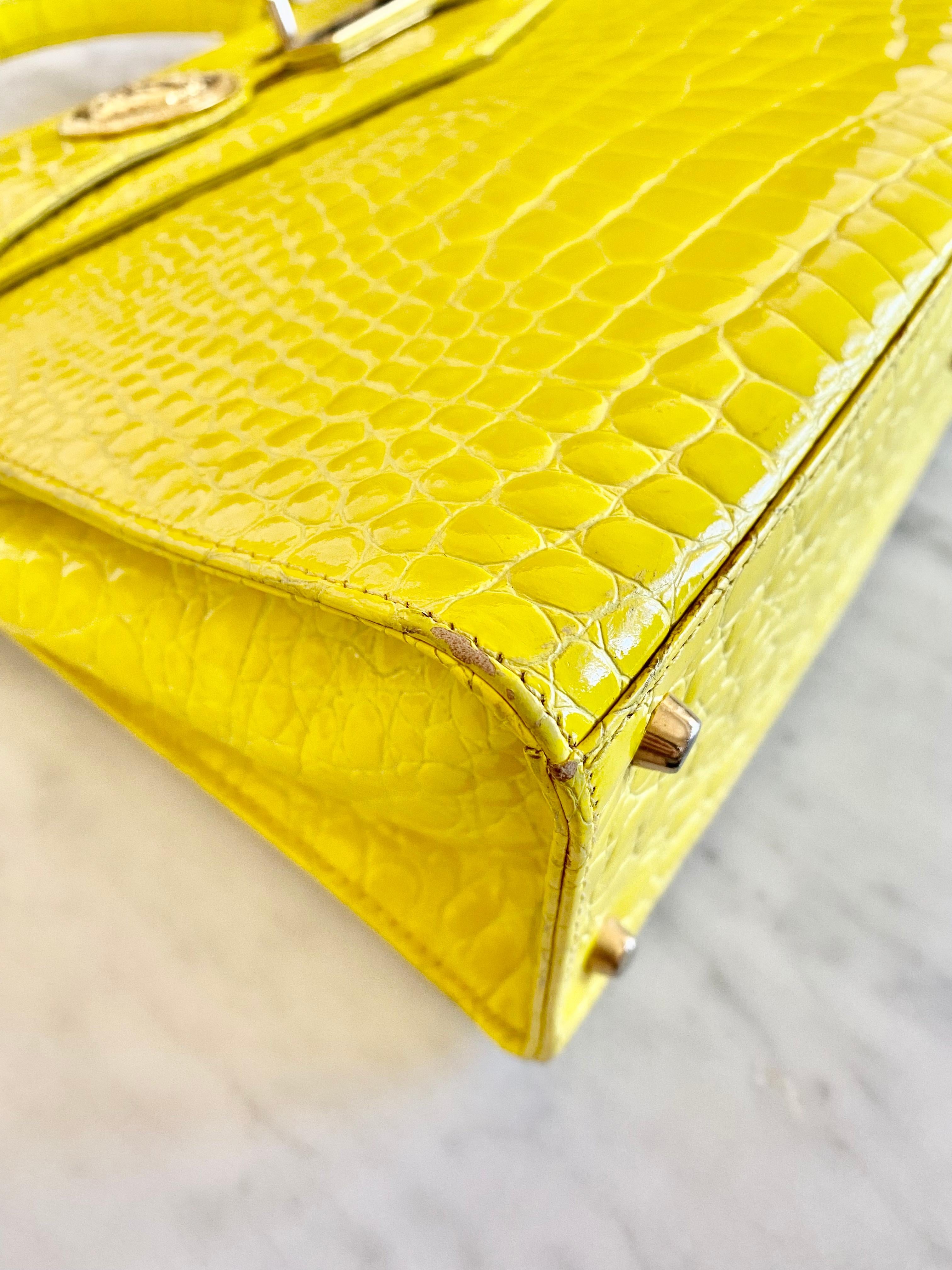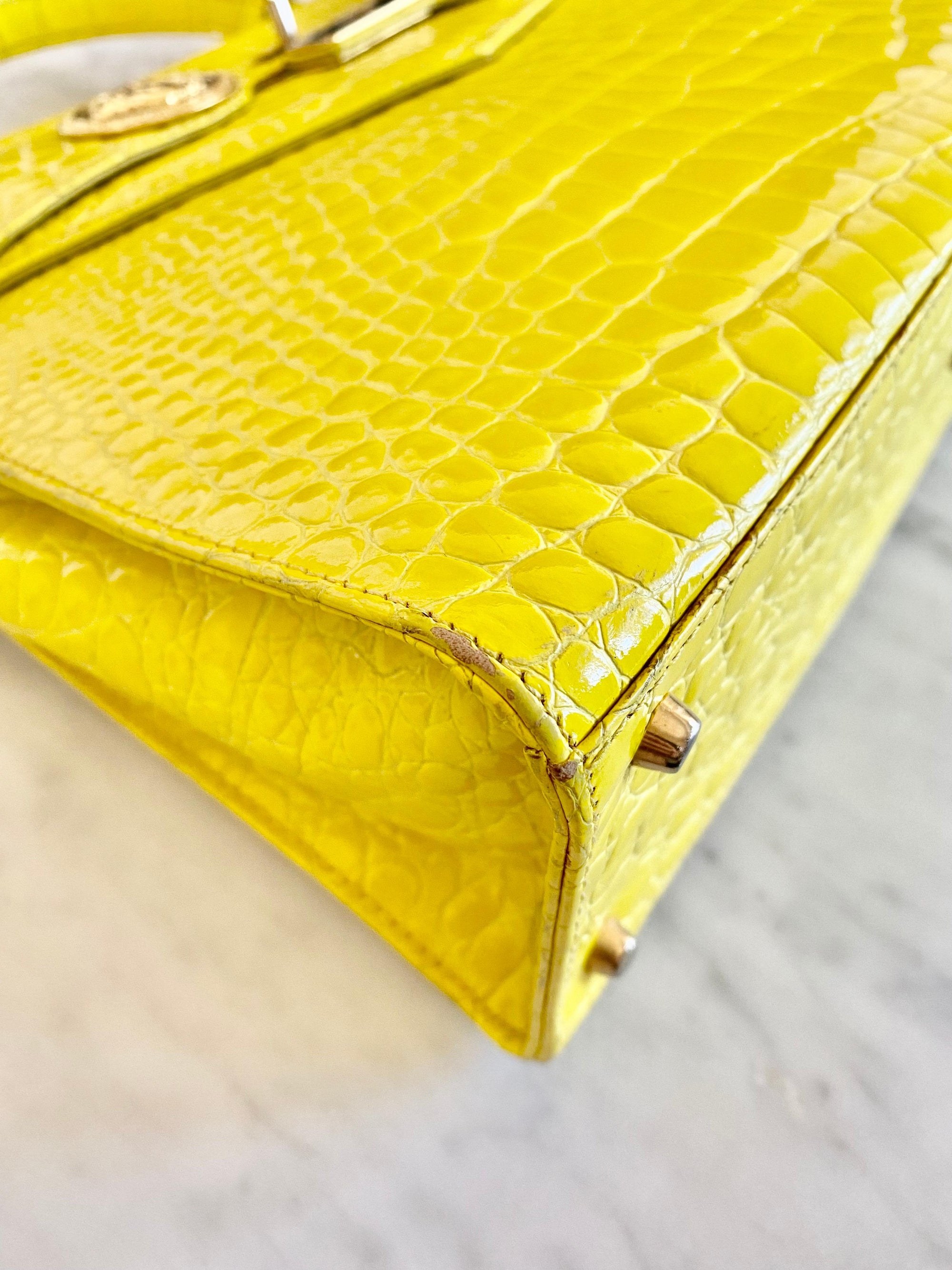 F/W 1994 Gianni Versace Yellow Crocodile Embossed Patent Kelly Style 'Diana' Bag