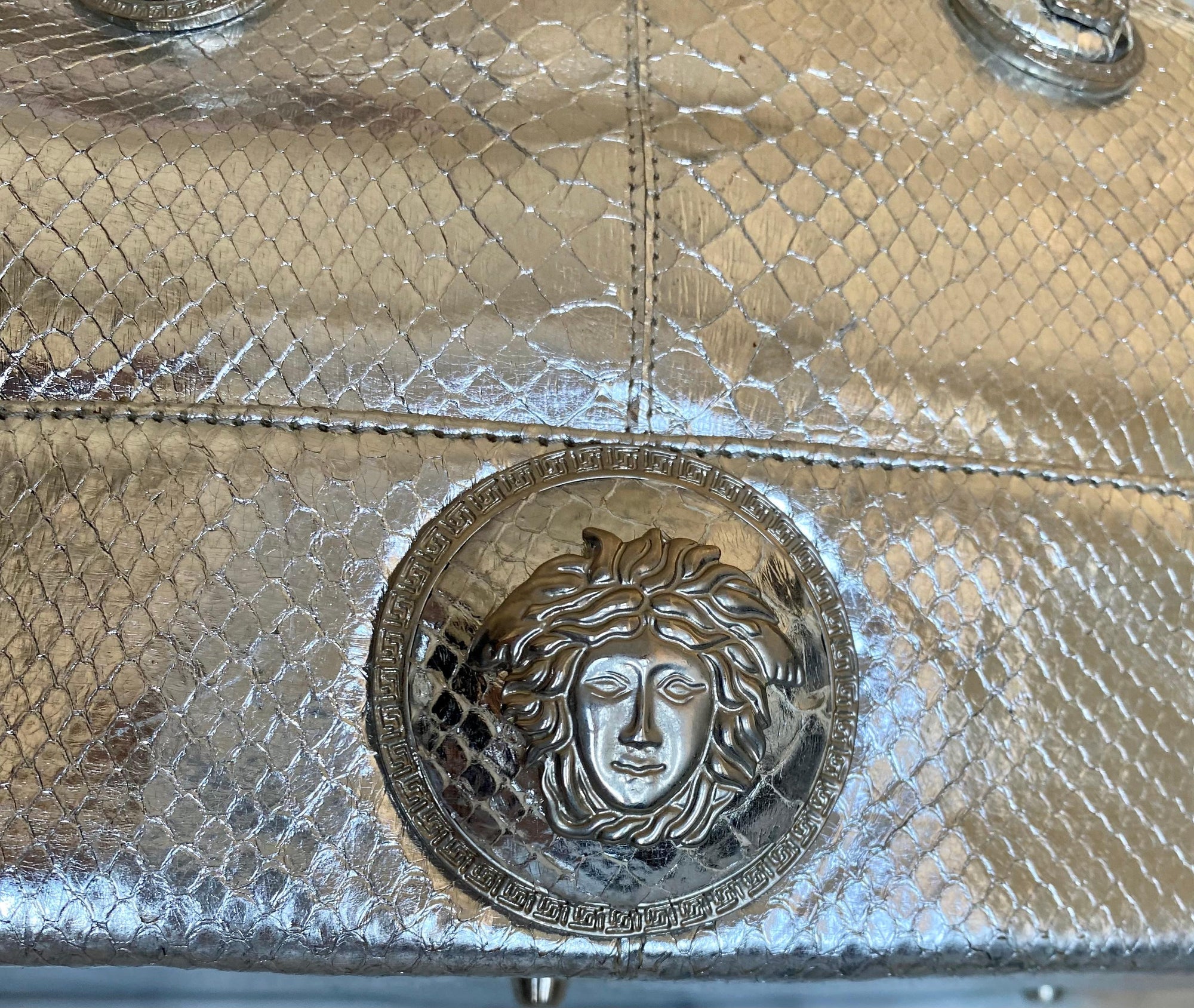 F/W 1994 Vintage Gianni Versace Silver Metallic Python Medusa Shoulder Bag