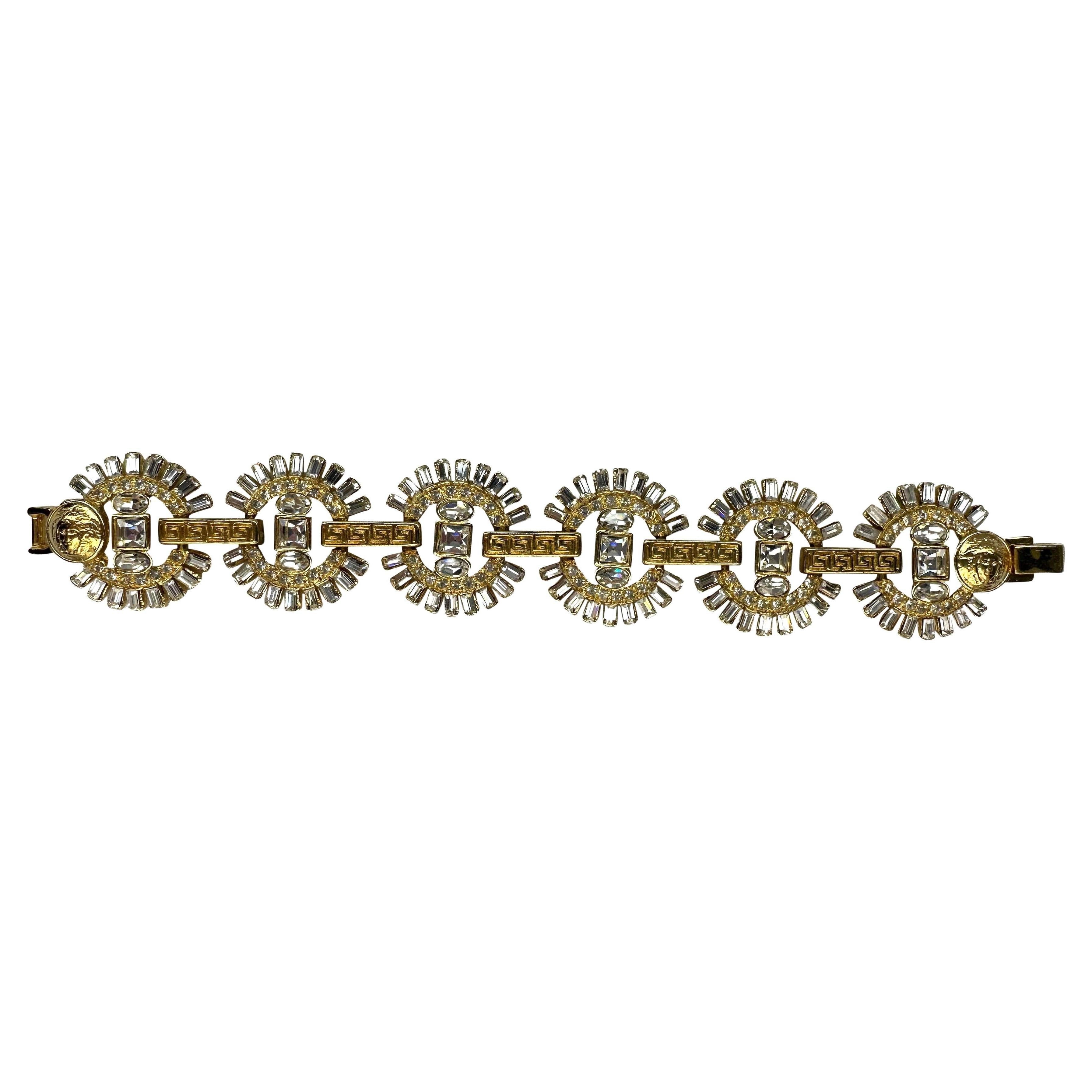 F/W 1995 Gianni Versace Ad Gold Tone Greek Key Link Rhinestone Bracelet