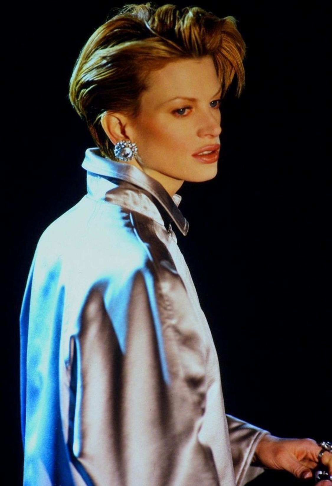 F/W 1995 Gianni Versace Couture Runway Silver Blush Satin Button Coat