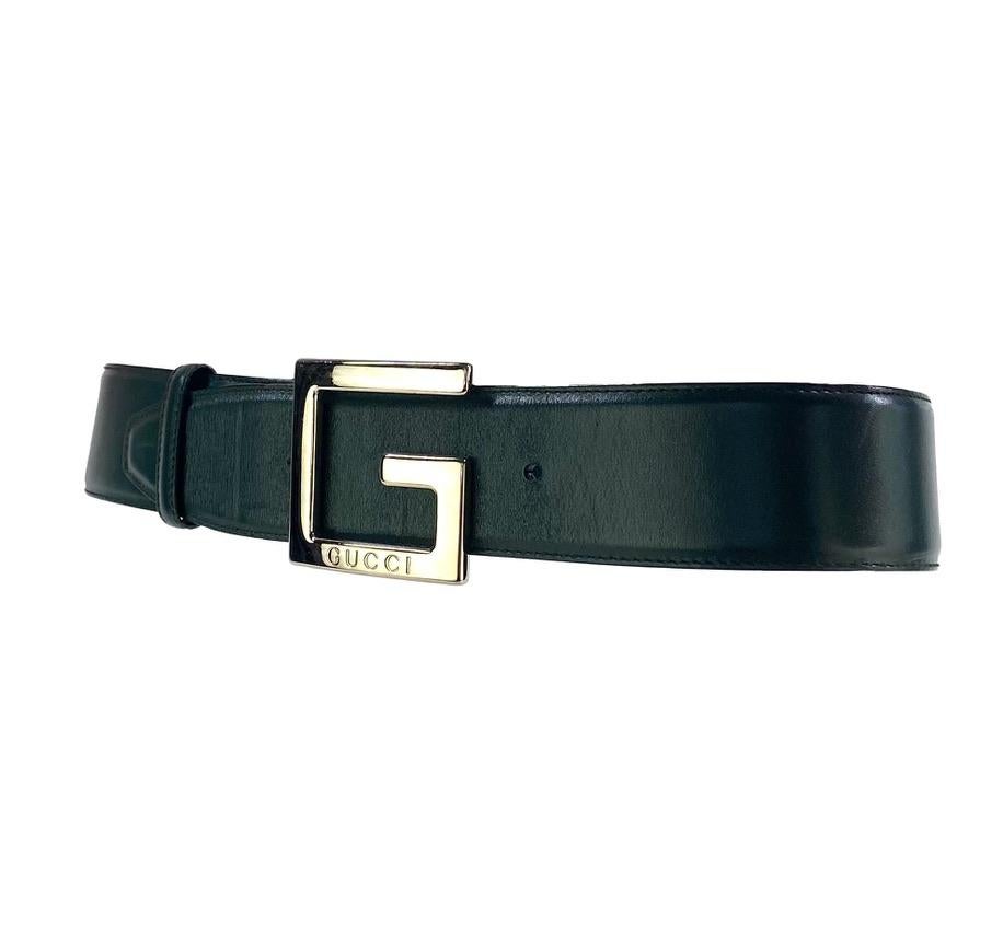F/W 1995 Gucci by Tom Ford Oversized G Logo Buckle Dark Green Leather Belt
