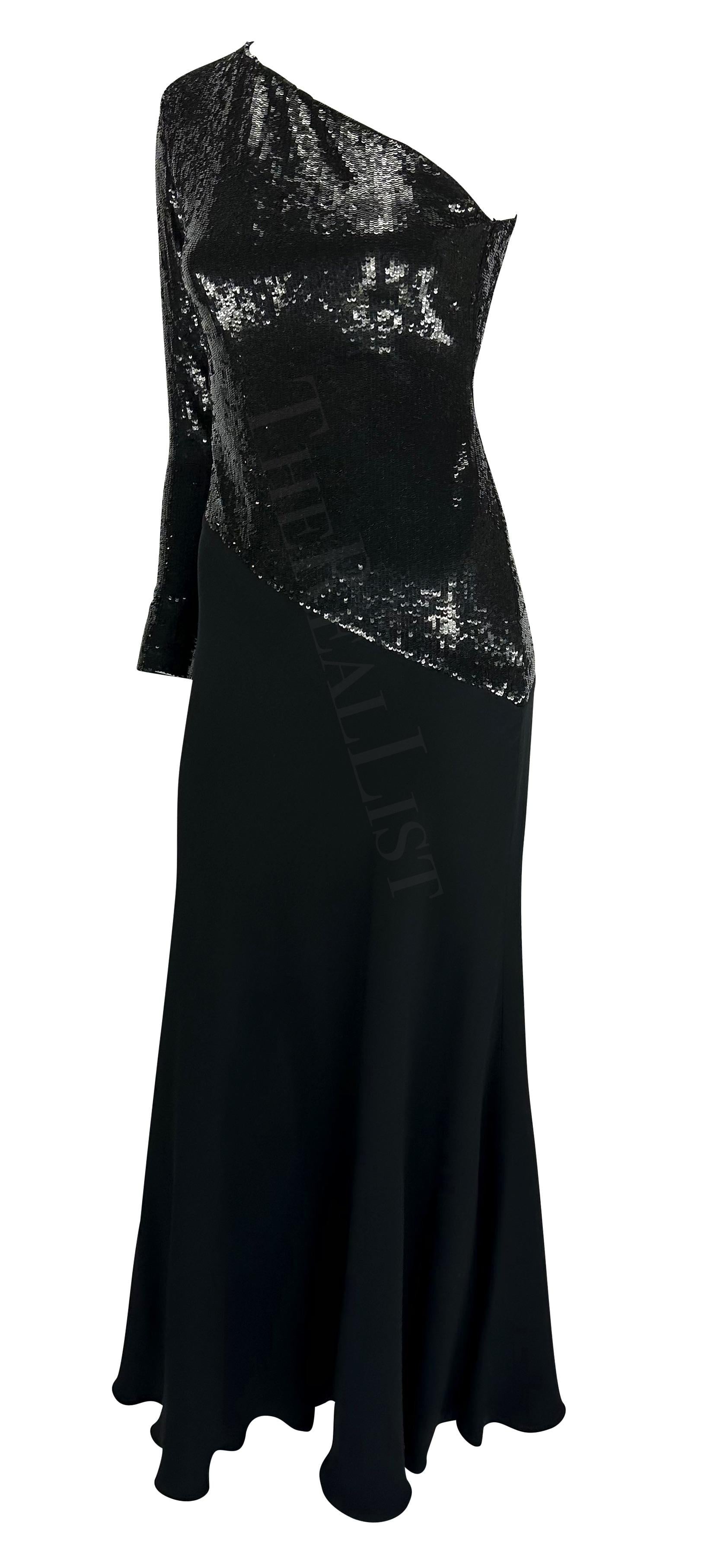 F/W 1995 Ralph Lauren Runway Stretch Sequin Asymmetric Black Flare Evening Gown