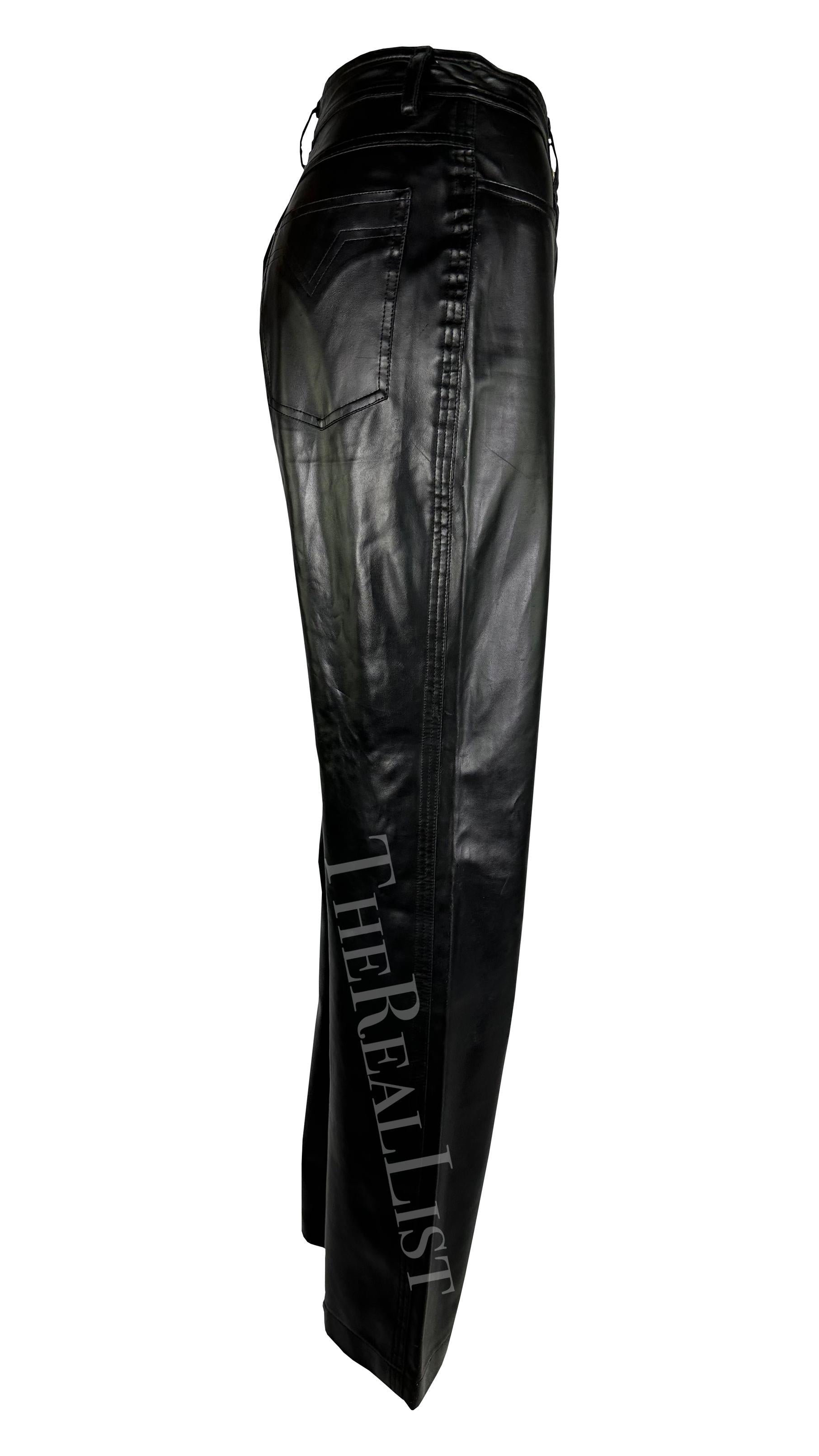 F/W 1996 Gianni Versace Black Faux Leather Wide Leg Pants