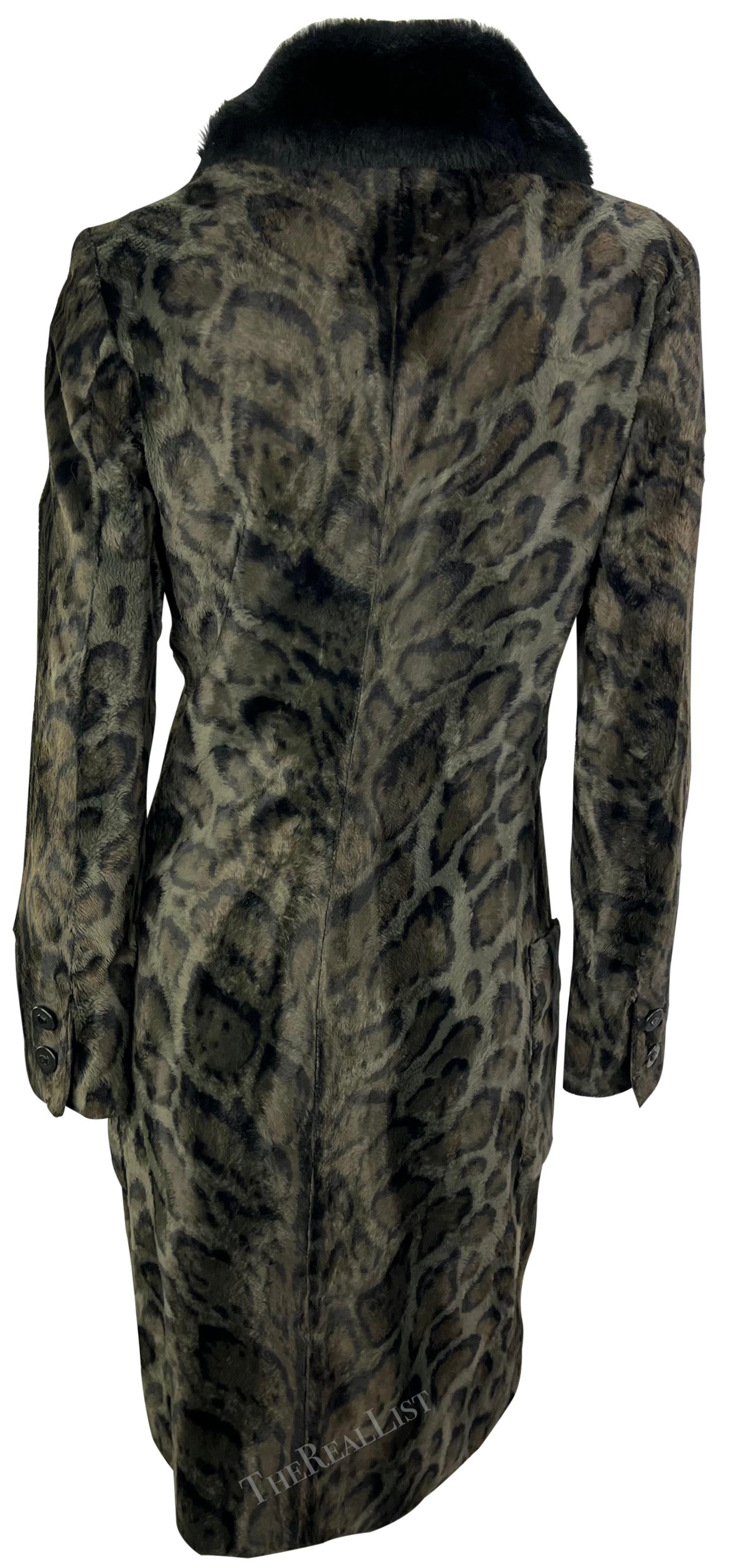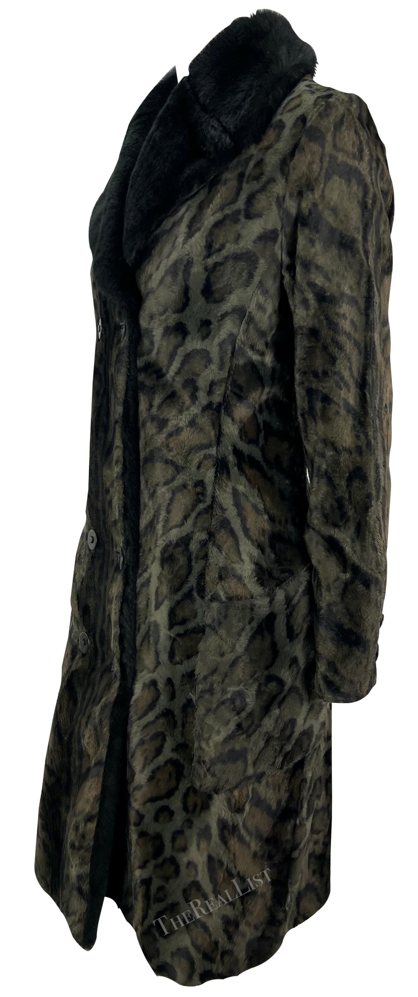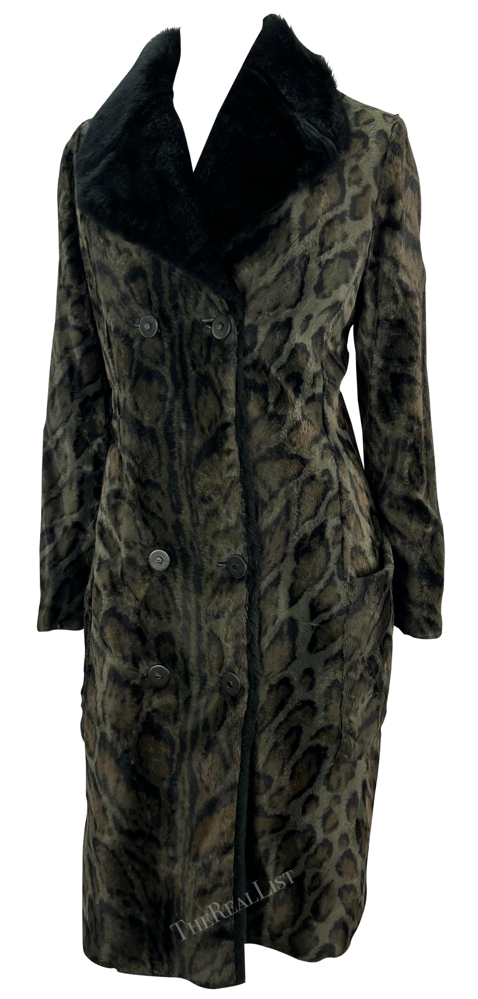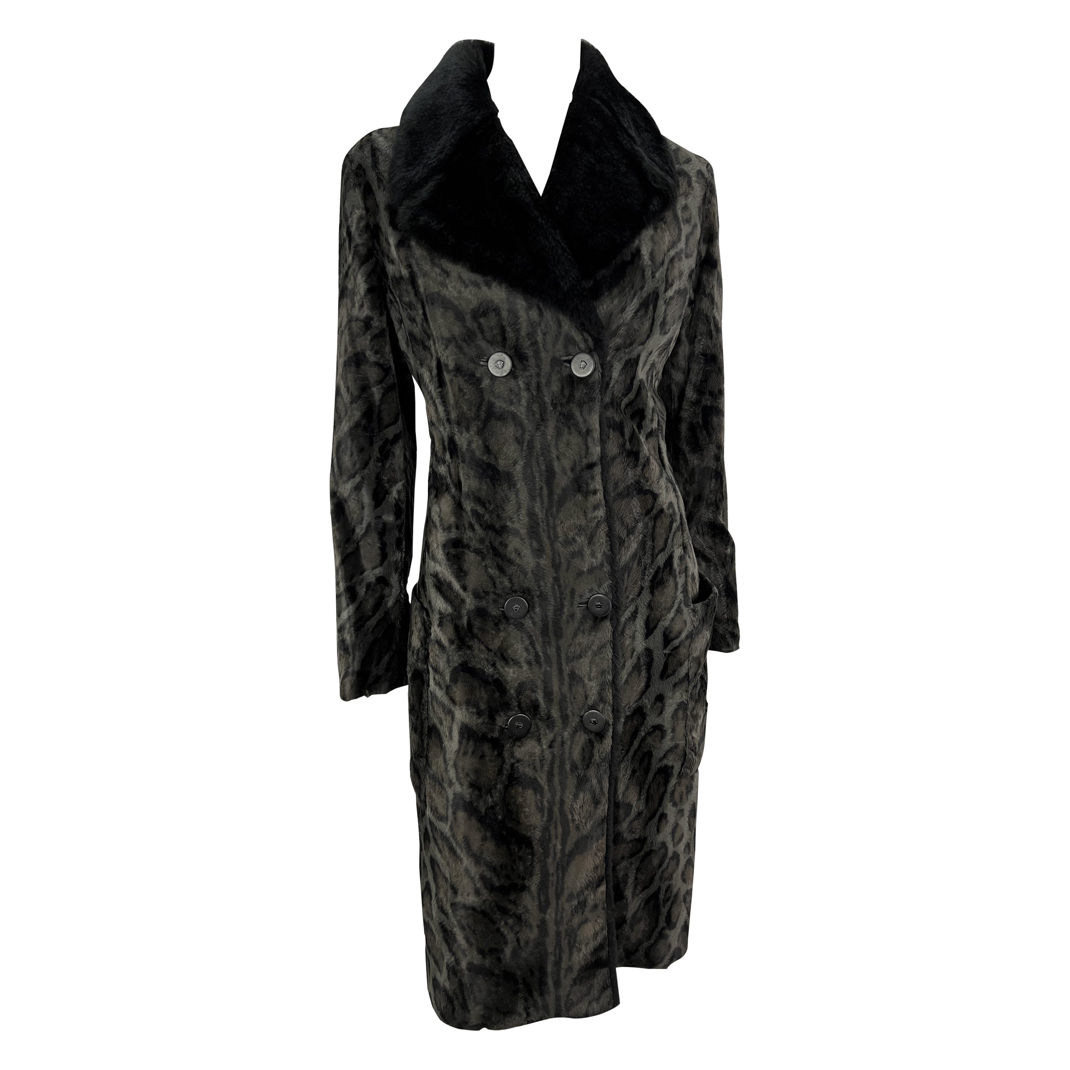 F/W 1996 Gianni Versace Black Leopard Faux Fur Sample Double Breasted Coat