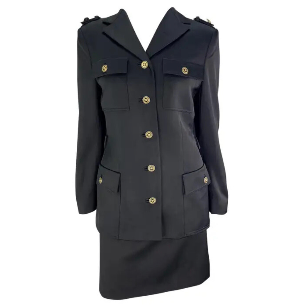 F/W 1996 Gianni Versace Black Military-Style Skirt Suit Set