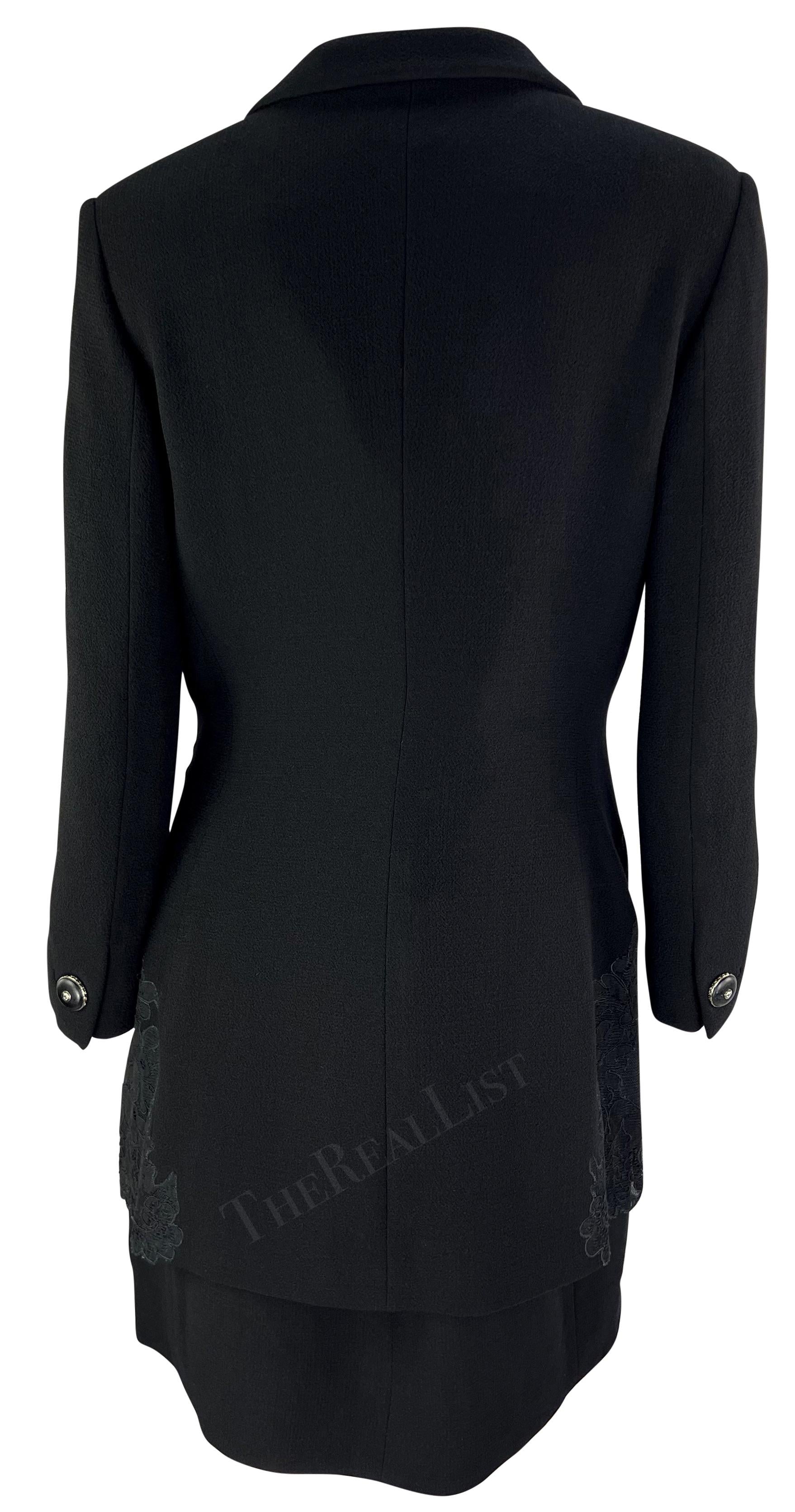 F/W 1996 Gianni Versace Black Sheer Lace Trim Medusa Dress Jacket Set