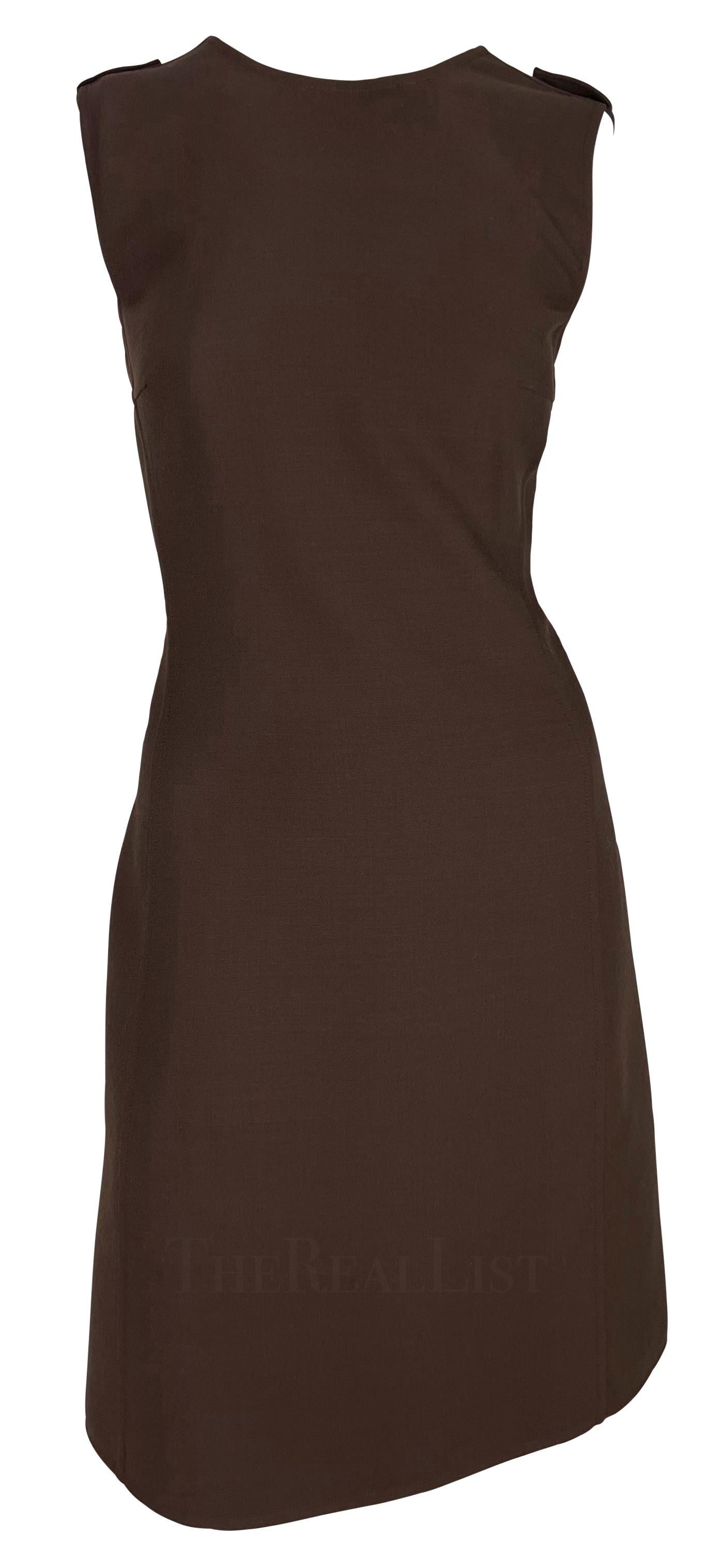 F/W 1996 Gianni Versace Couture Brown Medusa Epaulette Sleeveless Dress