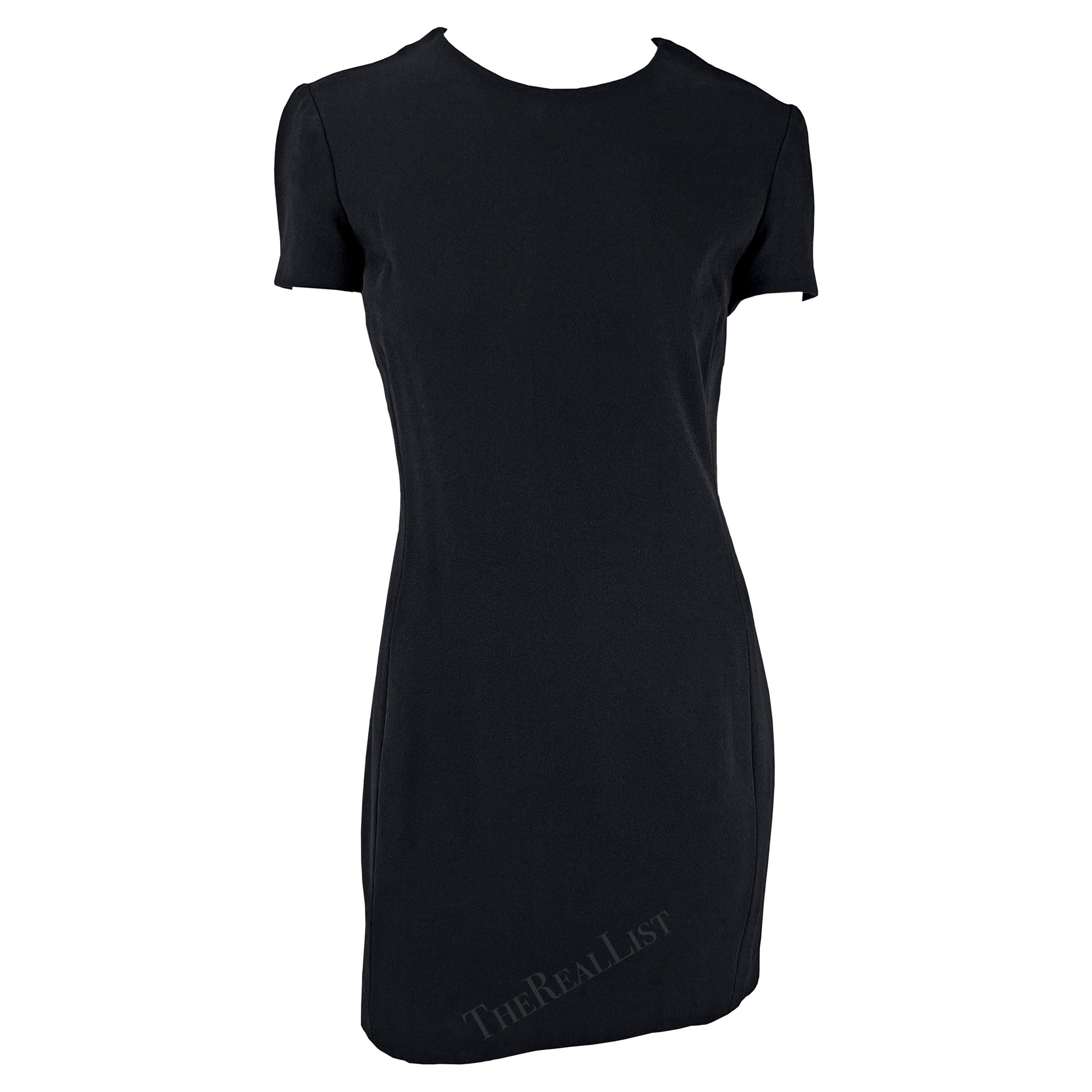 Presenting the perfect Gianni Versace little black dress, designed by Gianni Versace. From the Fall/Winter 1996 collection, this perfectly fitted mini dress features a tapered cut, short sleeves, and a crew neckline. Effortlessly chic and timeless, this dress is the perfect elevated essential to add to any wardrobe!