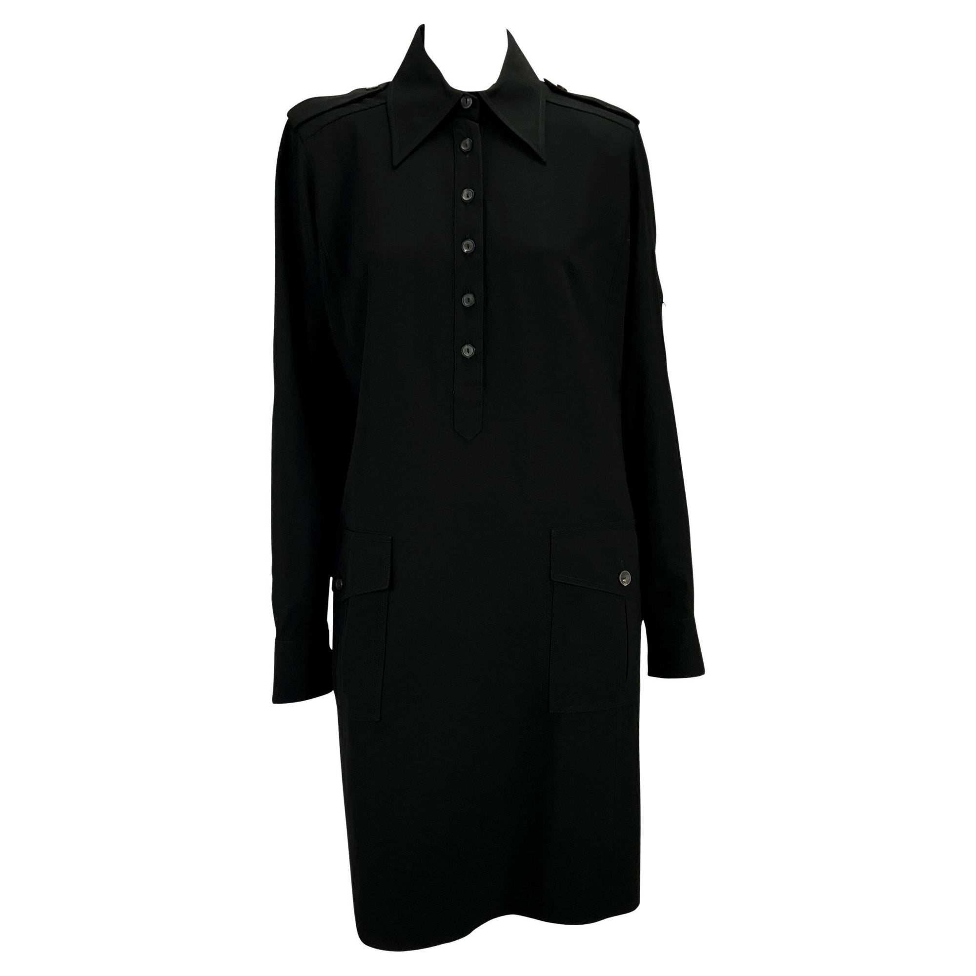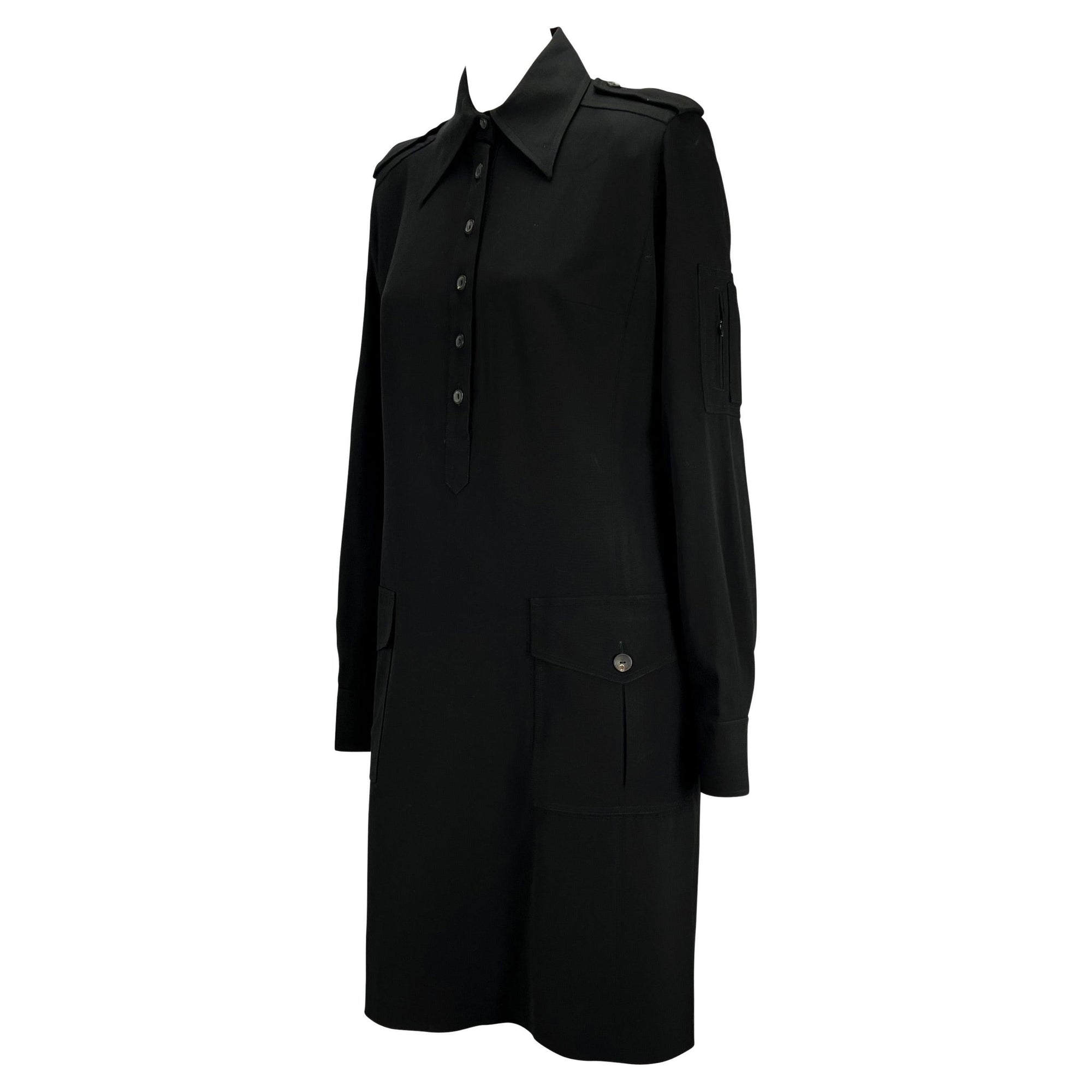 F/W 1996 Gucci by Tom Ford Black Epaulet Military Pocket Dress